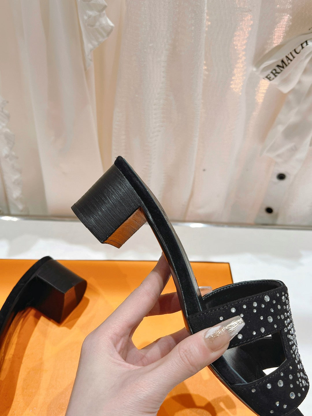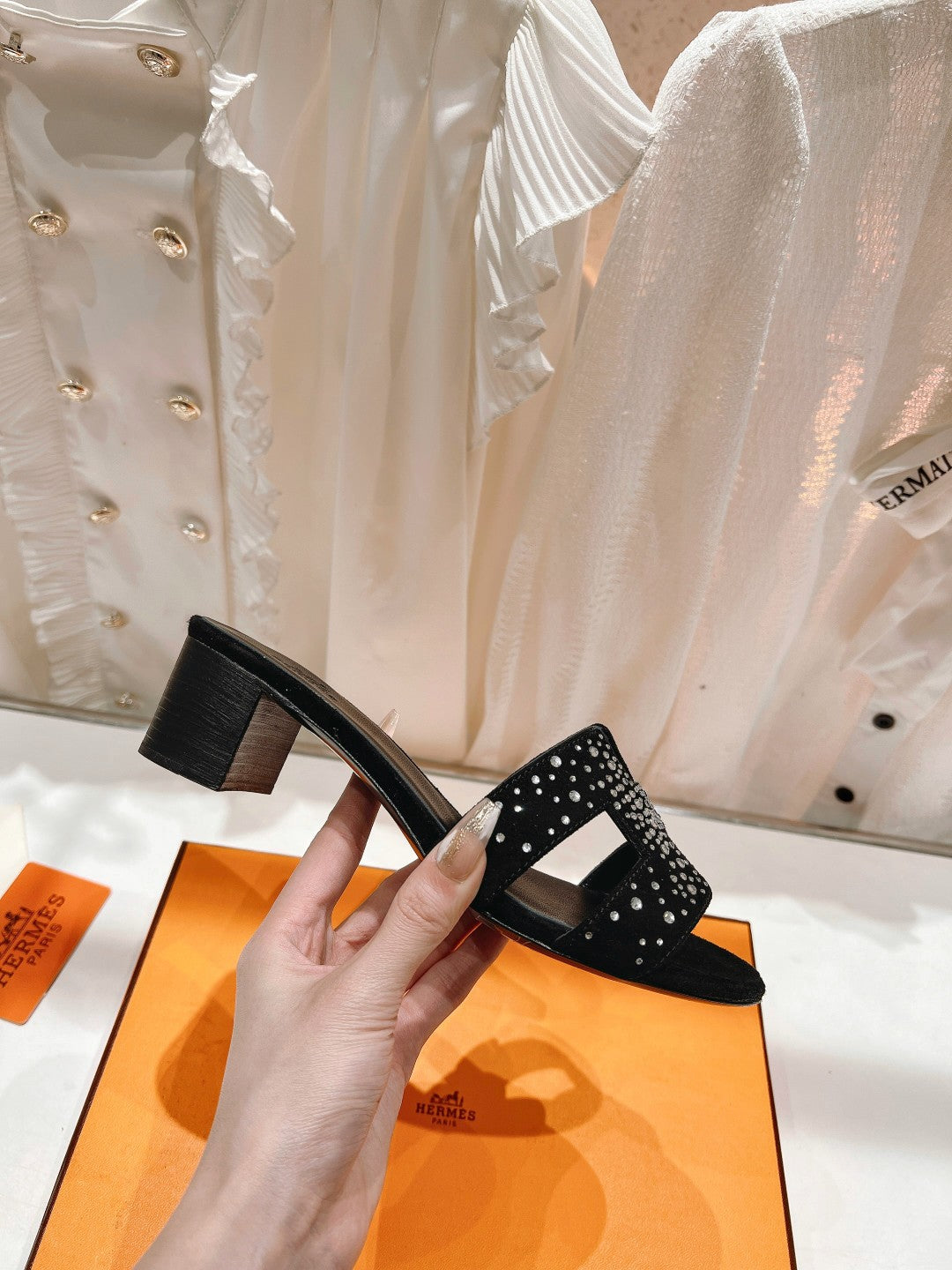 0ASIS SANDALS BLACK LAMBSKIN ATTACH CRYSTAL