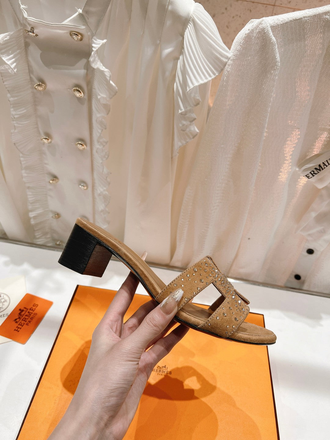0ASIS SANDALS BRIGHT ORANGE LAMBSKIN ATTACH CRYSTAL
