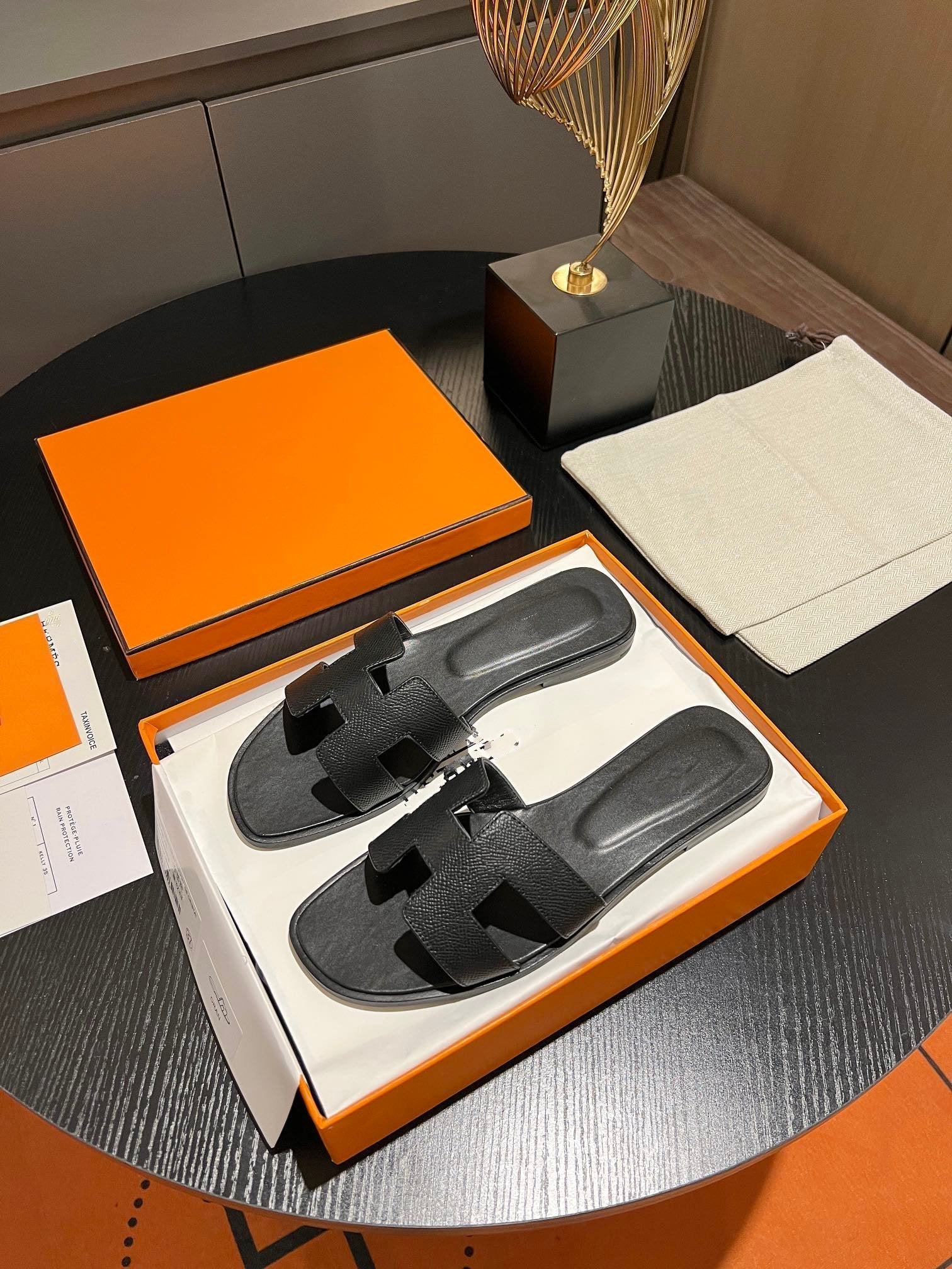 0RAN SANDAL Leather Black