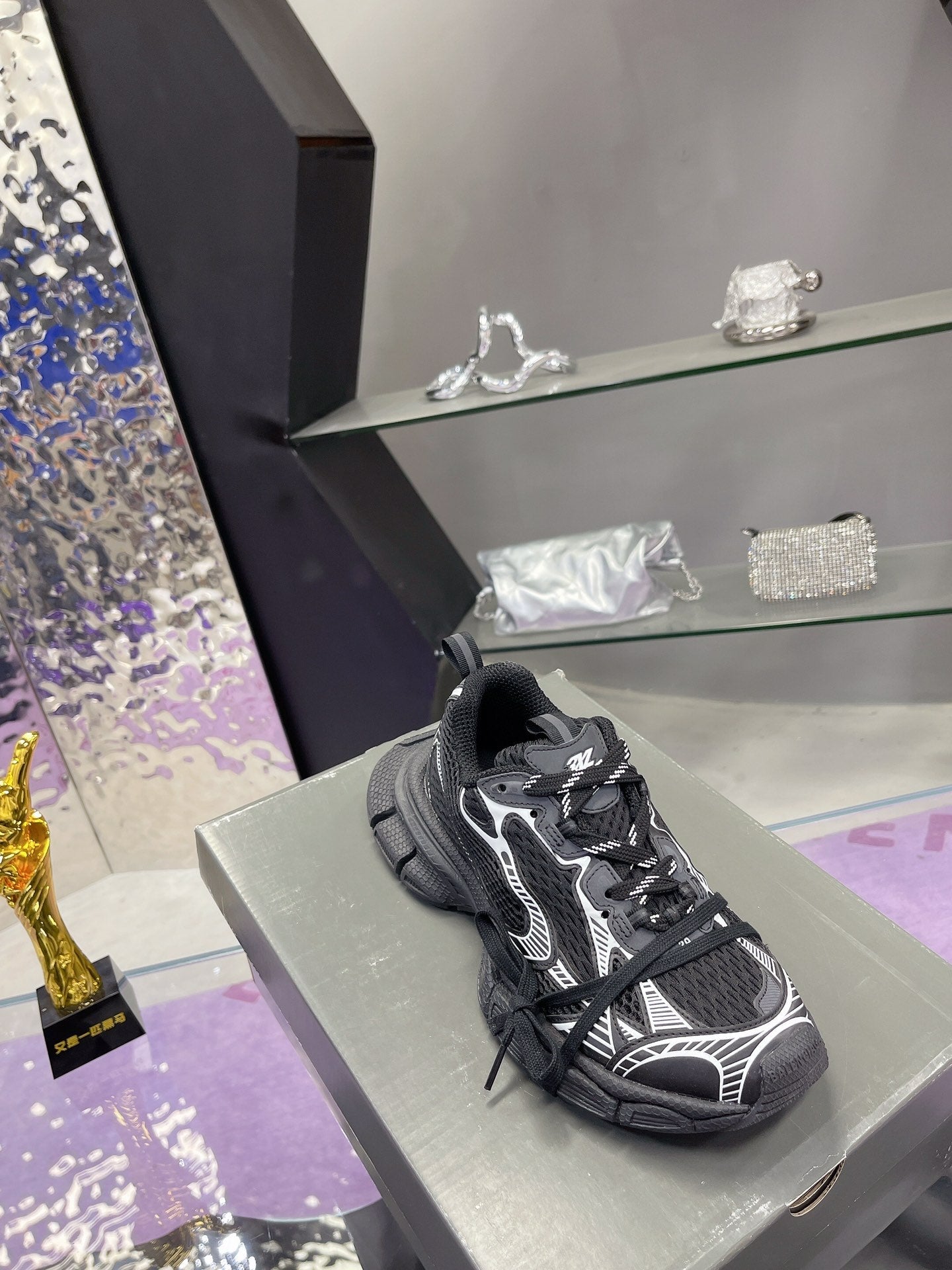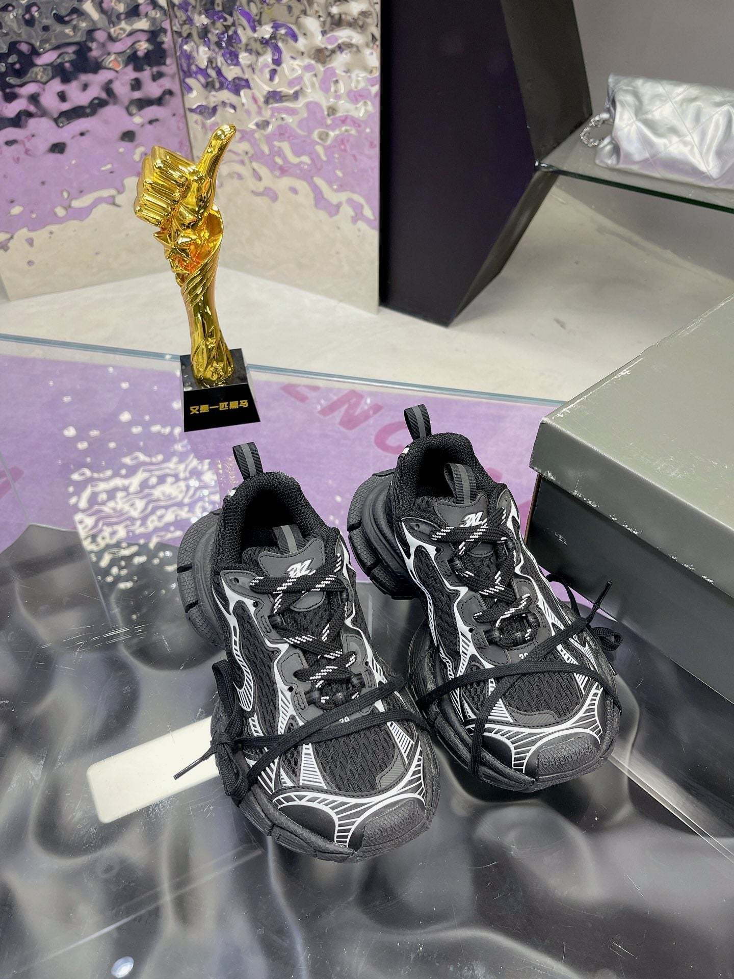 3XL SNEAKER IN BLACK MIX WHITE MESH AND POLYURETHANE