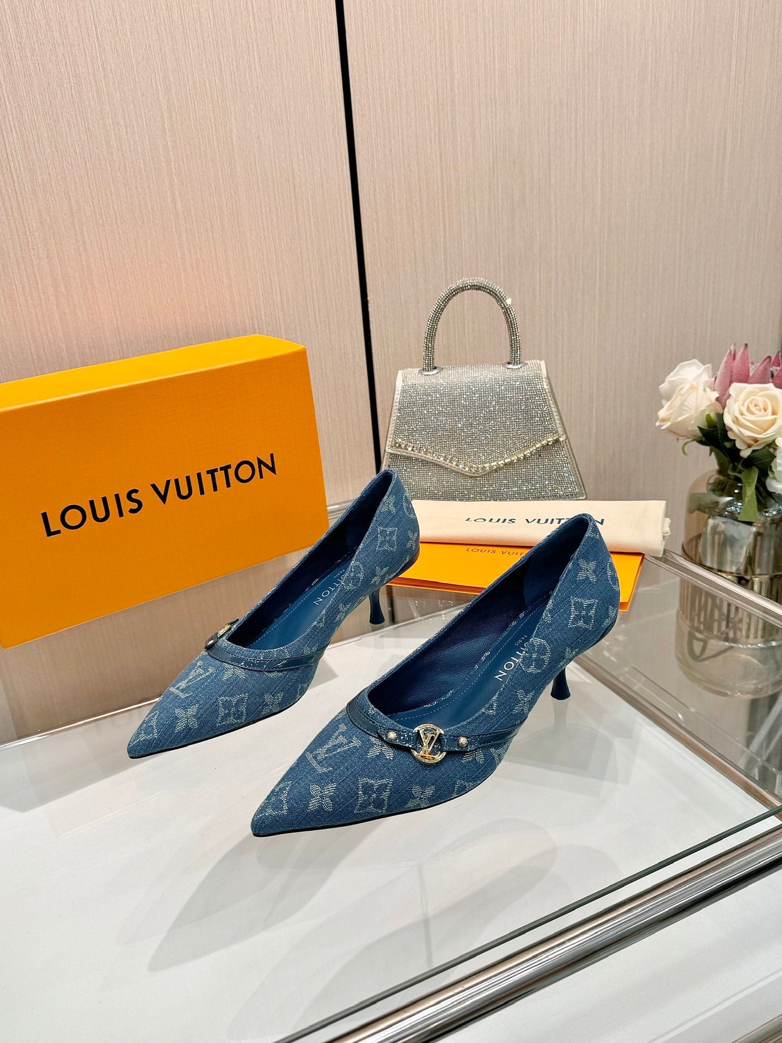 6AM HIGH HEELS 55 MM IN CLASSIC BLUE MONOGRAM DENIM