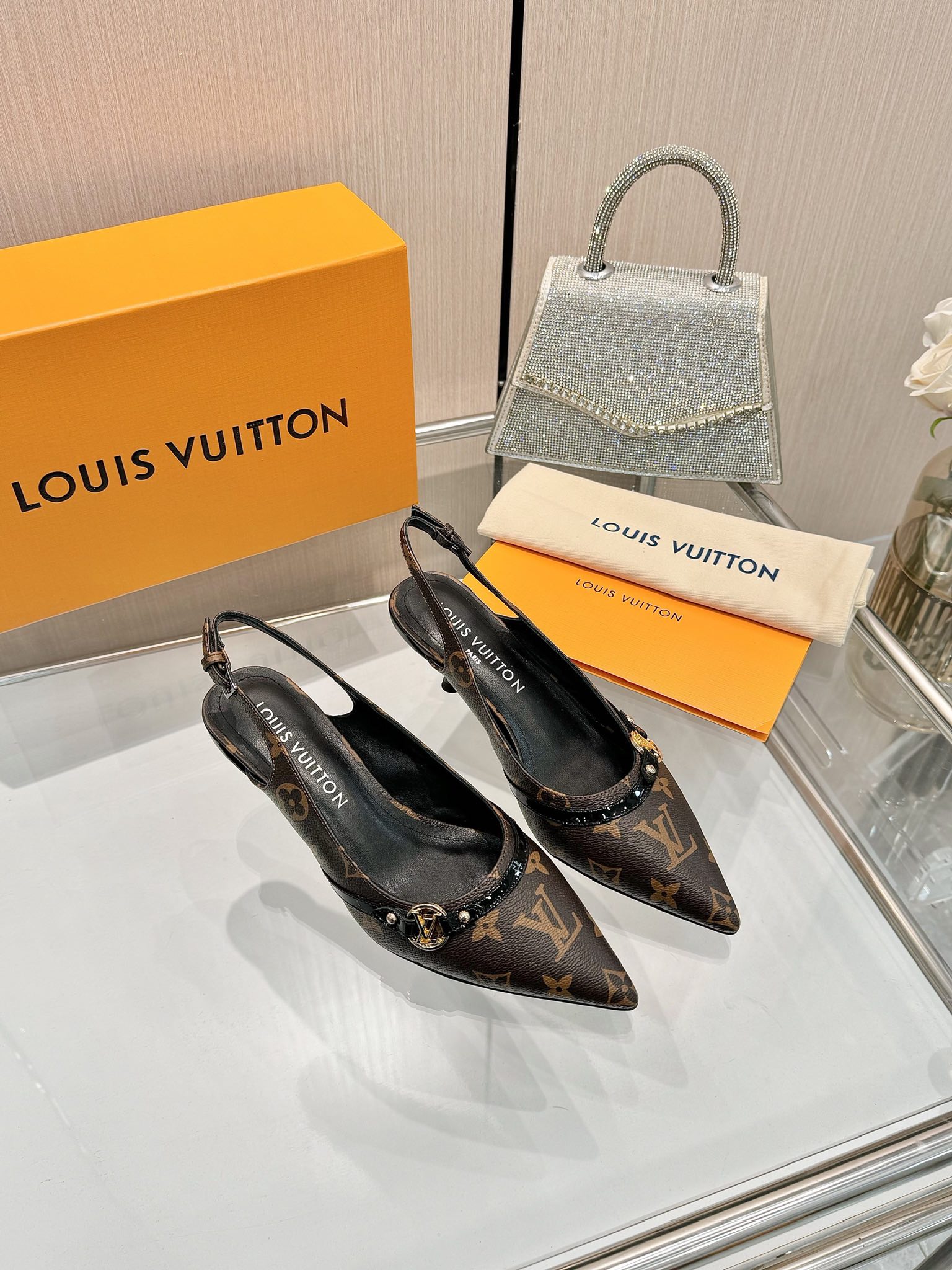 6AM SLINGBACK HIGH HEELS 55 MM IN CHOCOLATE BROWN MONOGRAM LAMBSKIN
