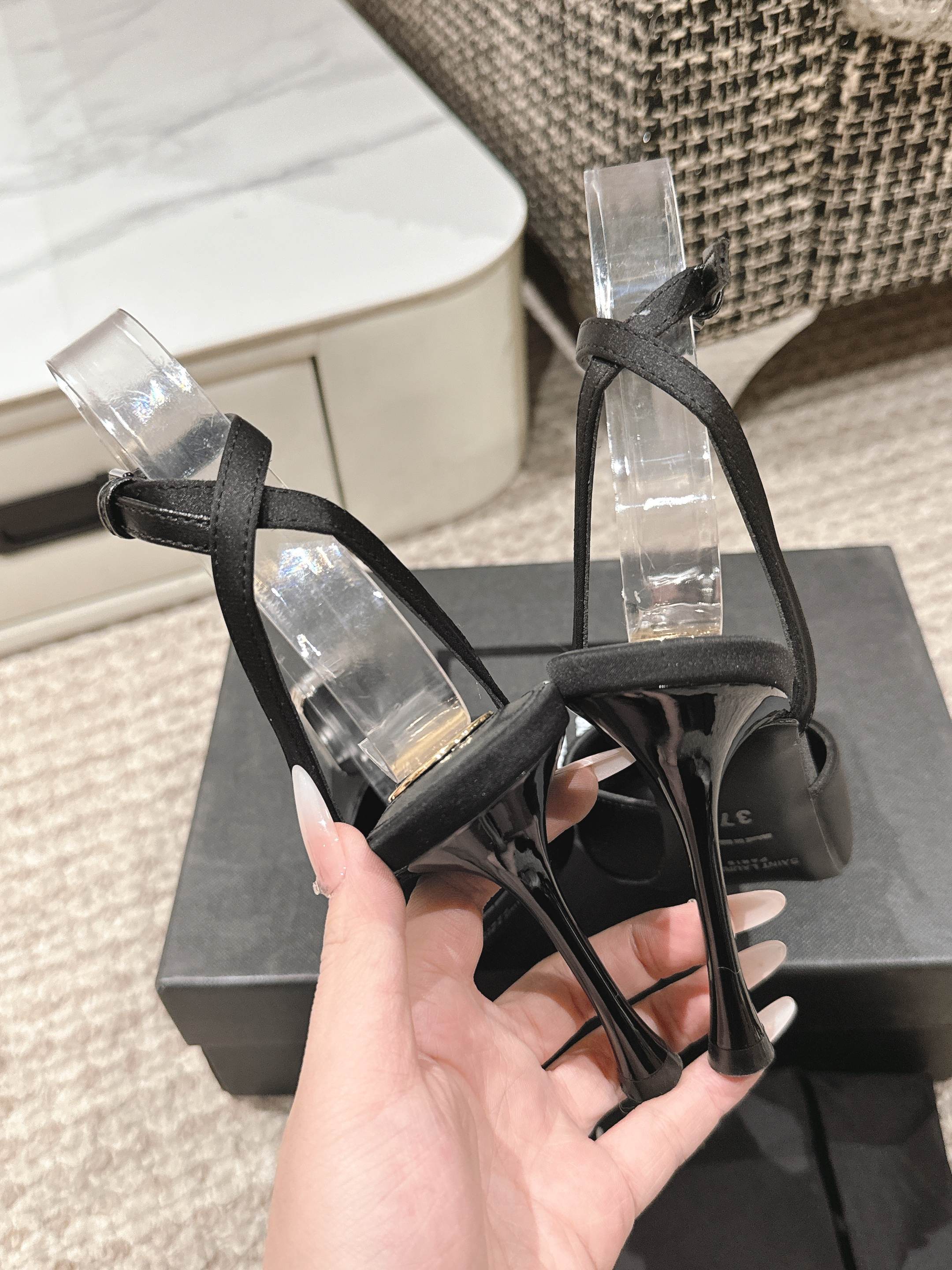AIMÉE HIGH 75 MM SLINGBACK PUMPS IN BLACK SATIN WITH CRYSTAL