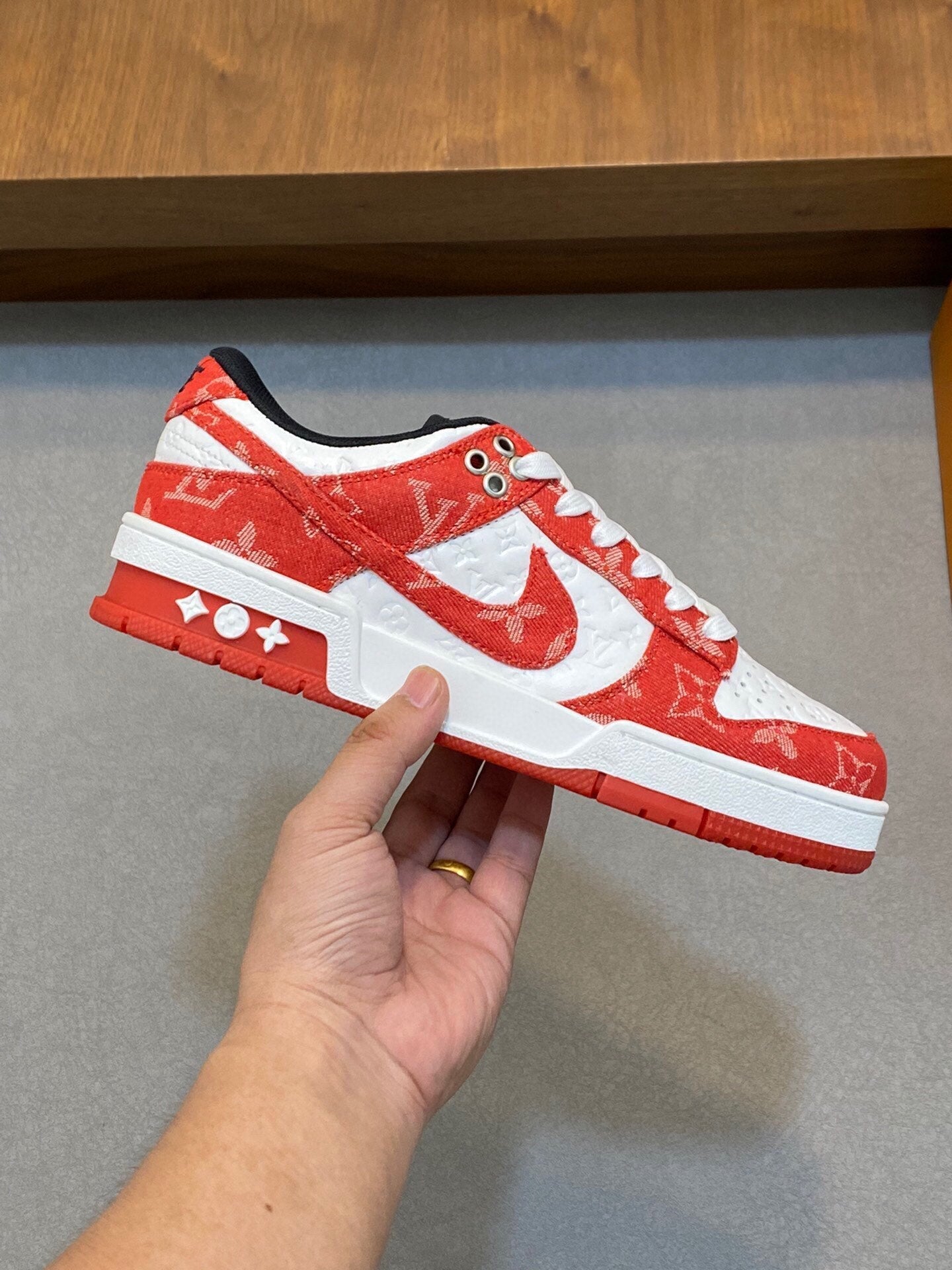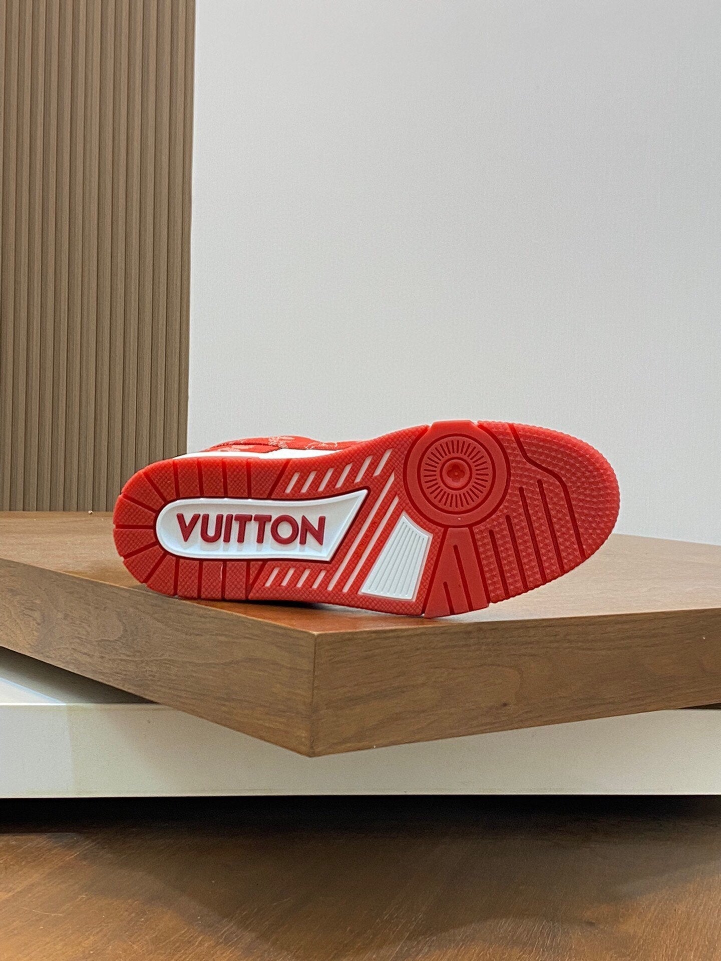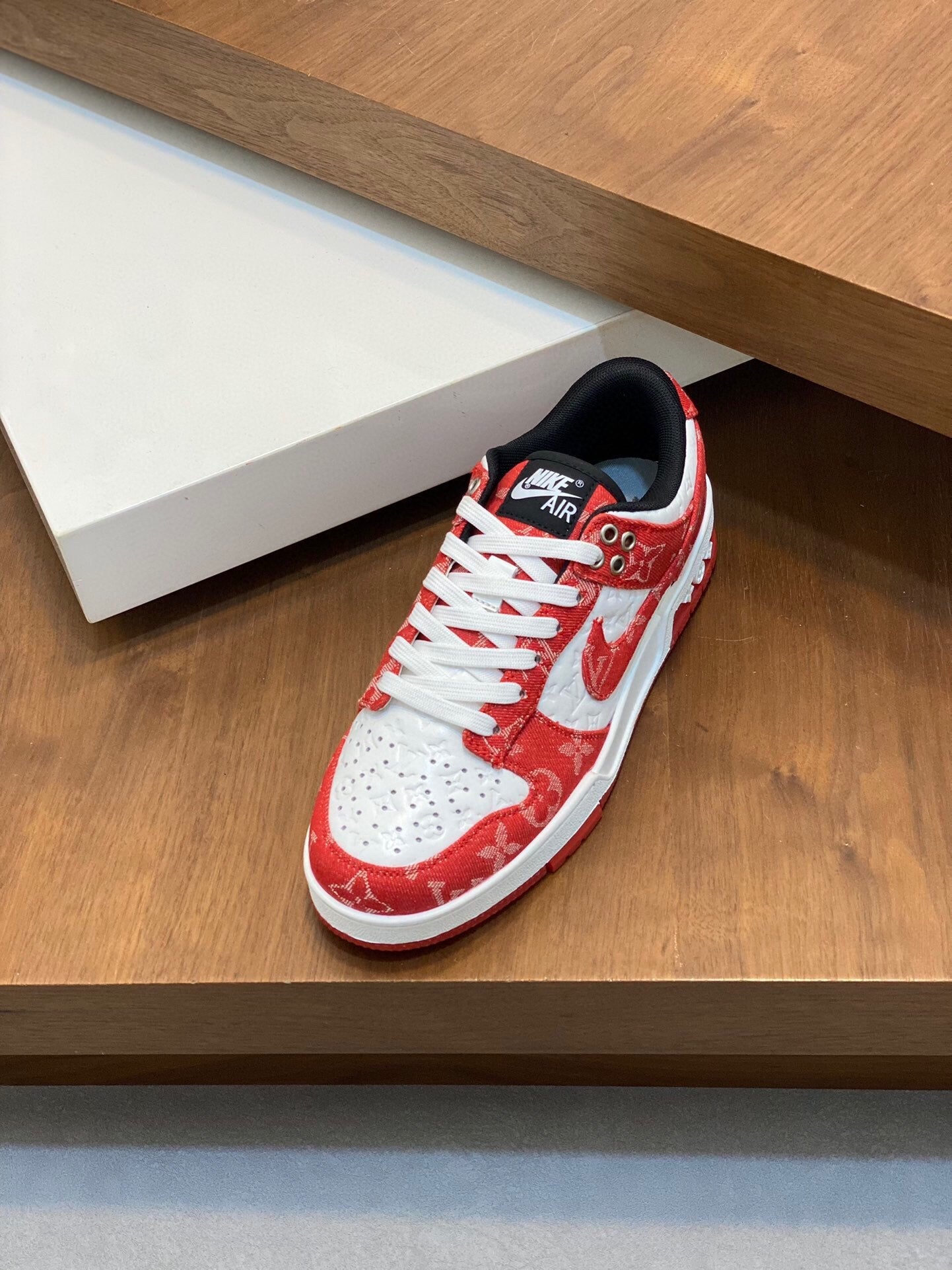 AIR TRAINER IN CRIMSON RED MIX WHITE CALFSKIN