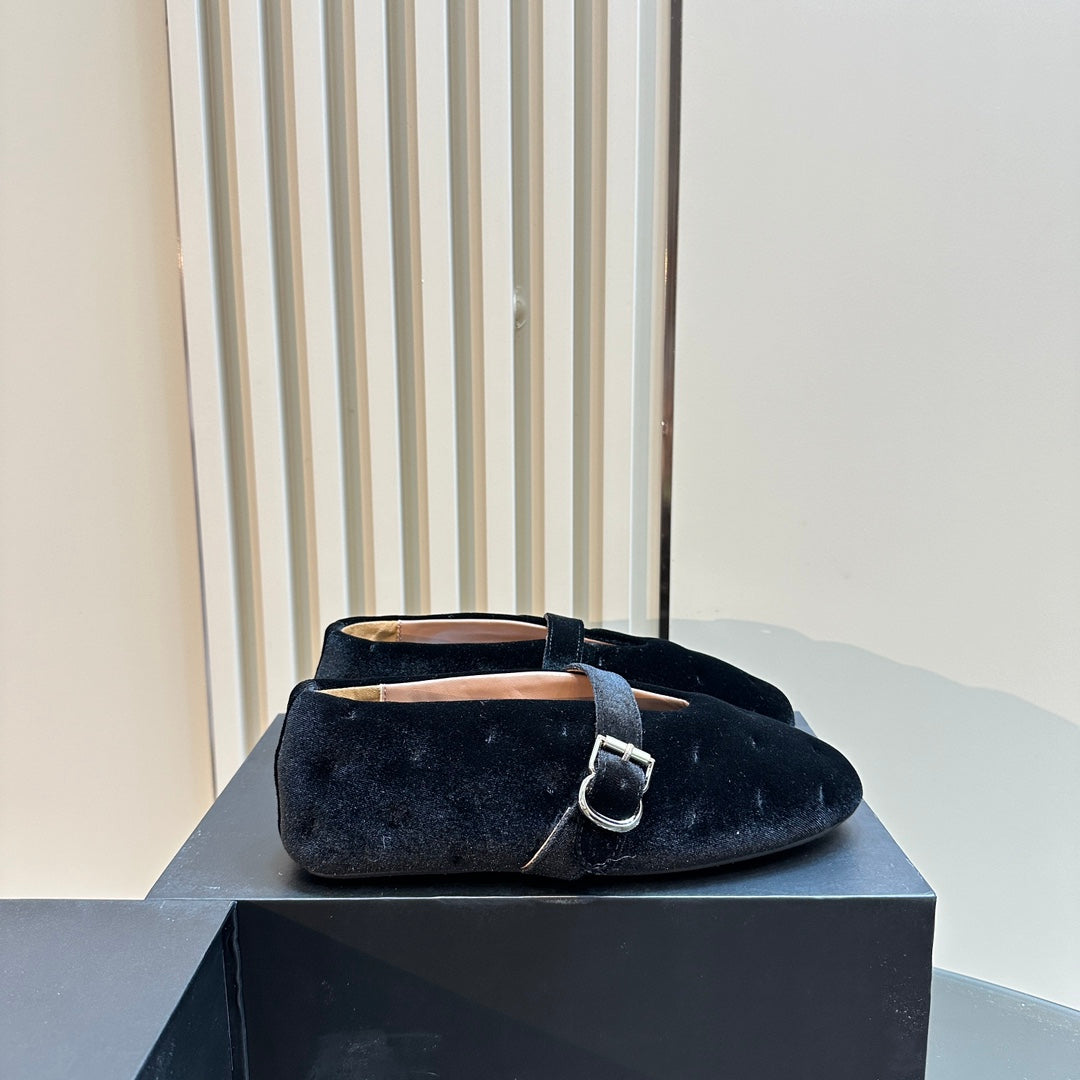ALAIA BALLET FLATS IN BLACK VELVET
