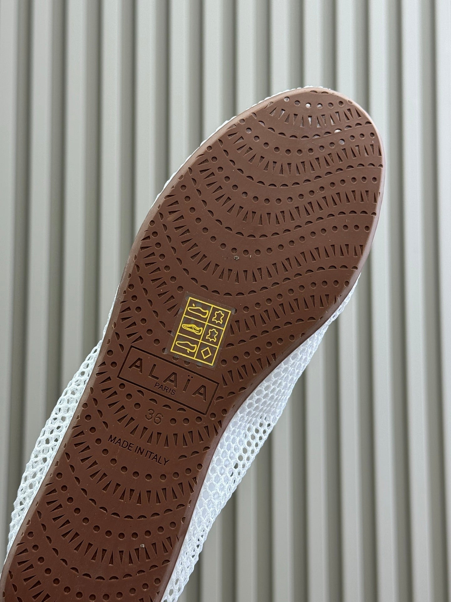 ALAIA FISHNET MESH BALLET FLATS 25S IN WHITE FABRIC