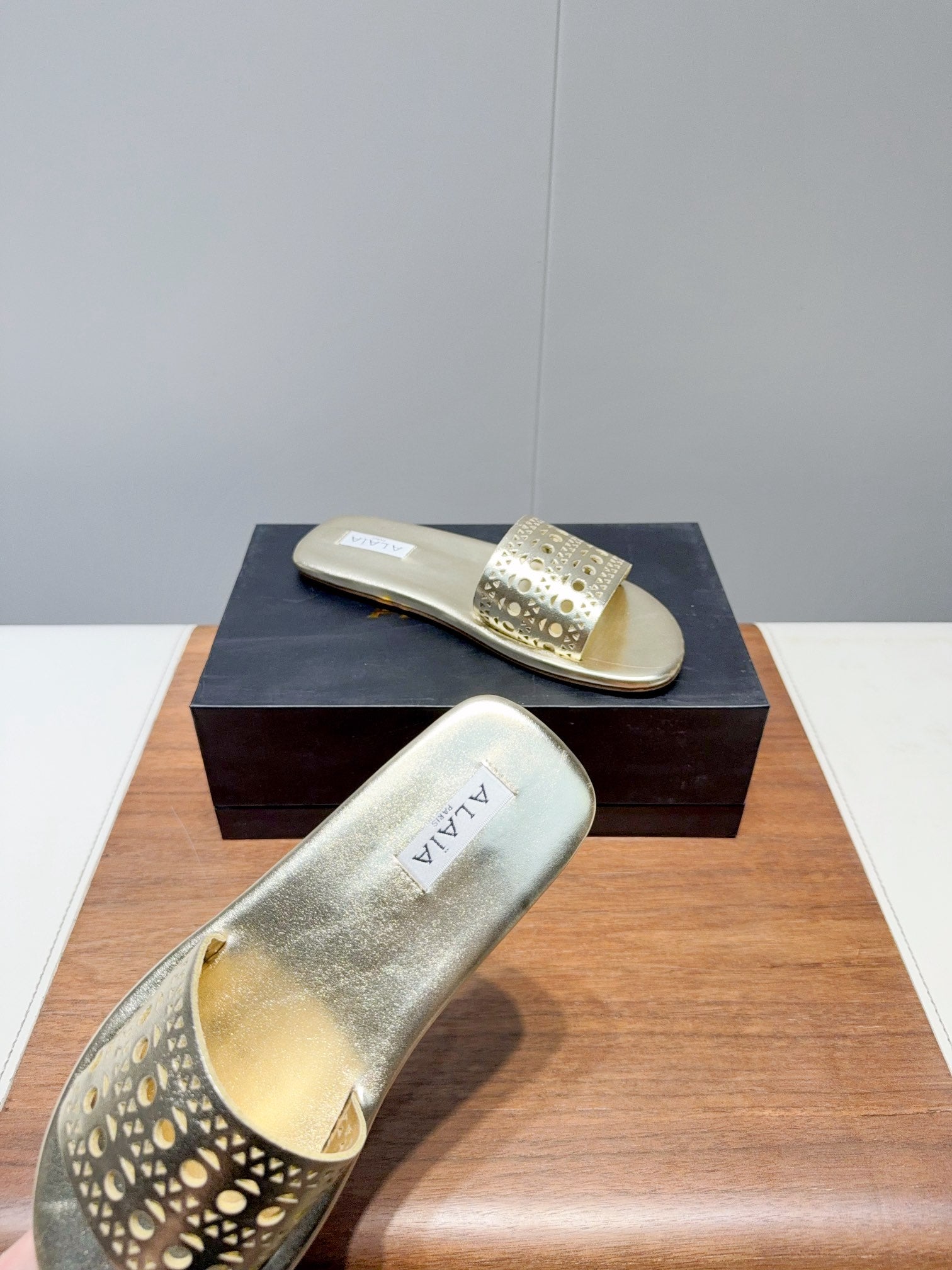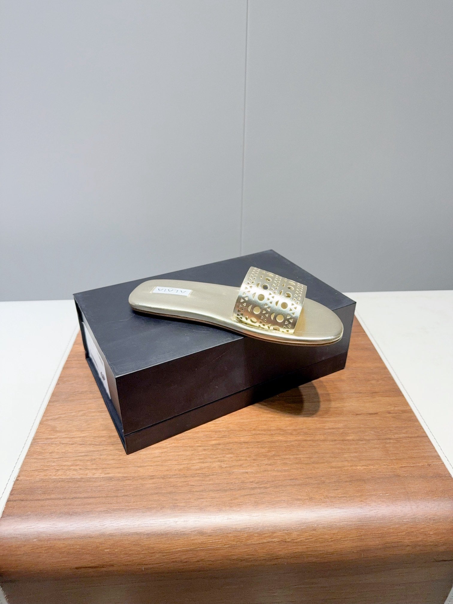 ALAIA FLAT SANDALS WITH PERFORATED STRAPS 25S IN GOLD LAMBSKIN