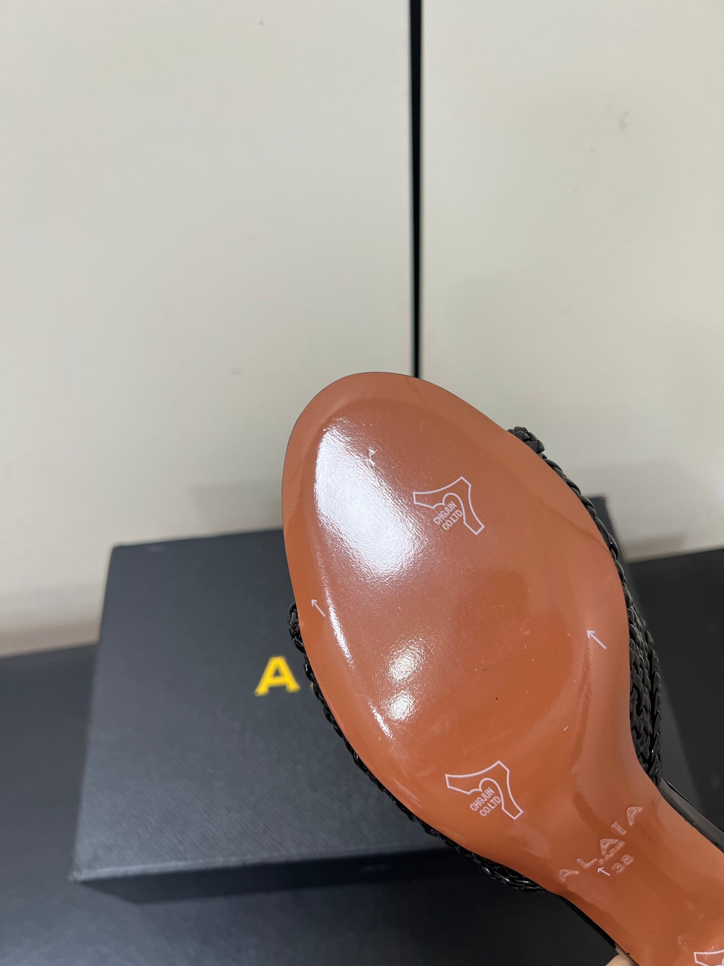 ALAIA HIGH HEEL 25S 70 MM IN BLACK LAMBSKIN WITH WOVEN PATTERN
