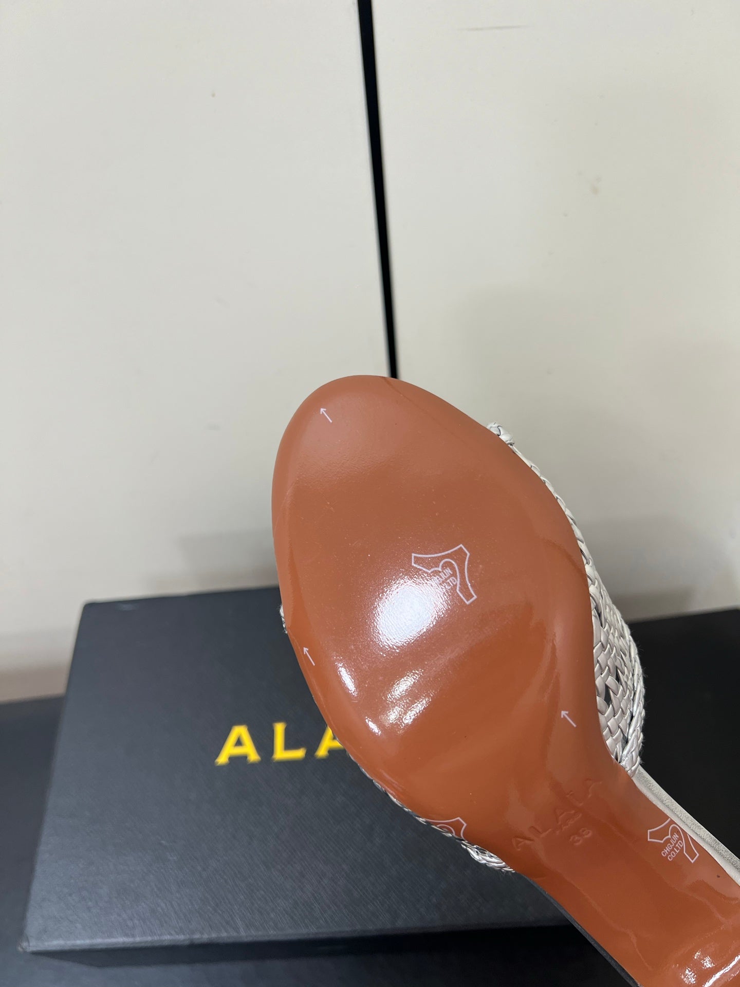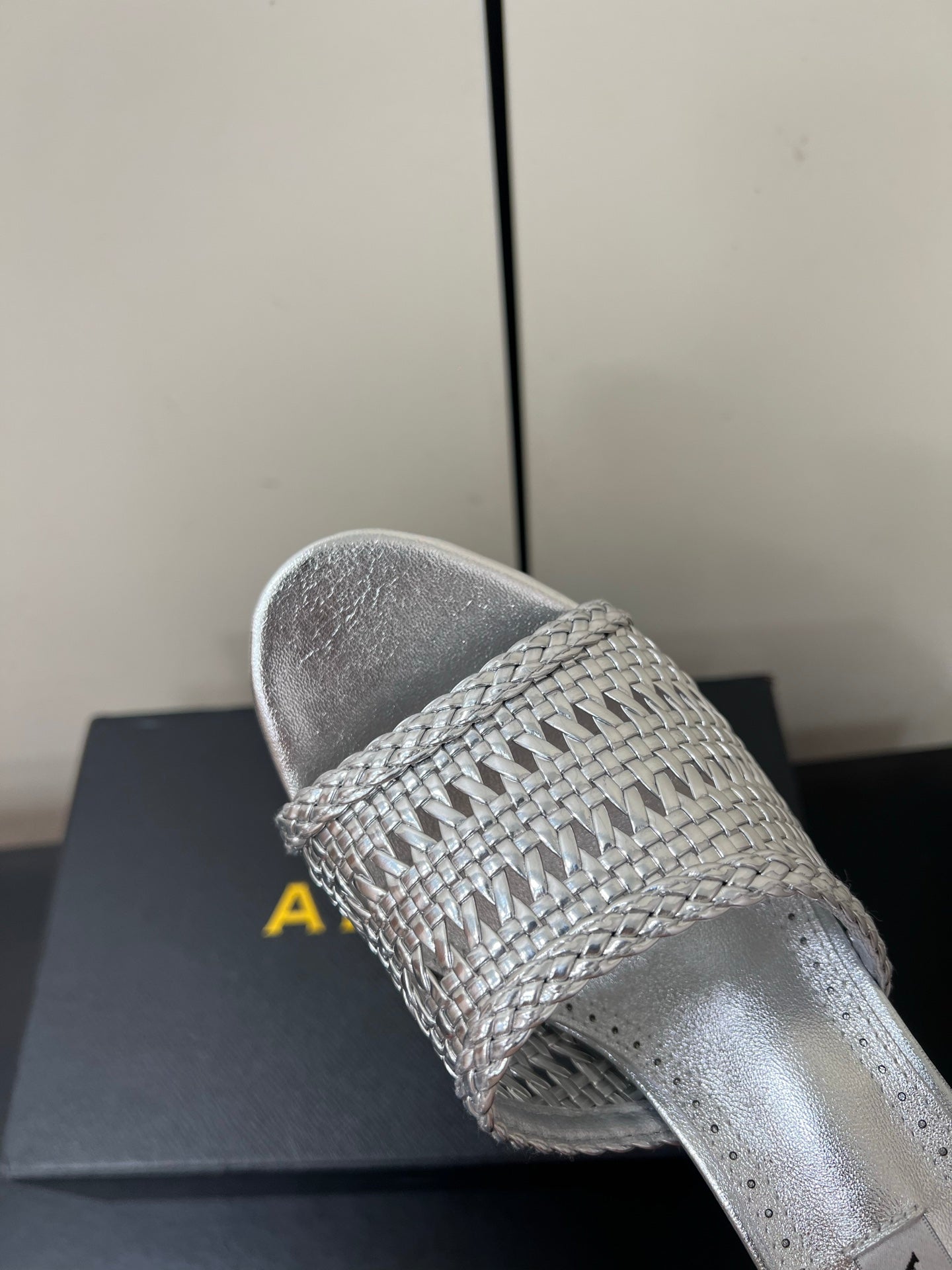 ALAIA HIGH HEEL 25S 70 MM IN SILVER LAMBSKIN WITH WOVEN PATTERN