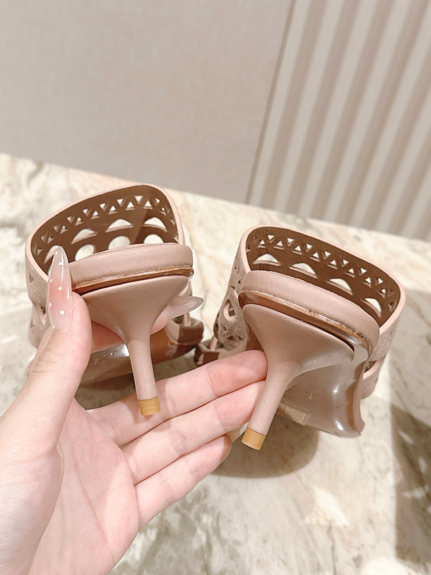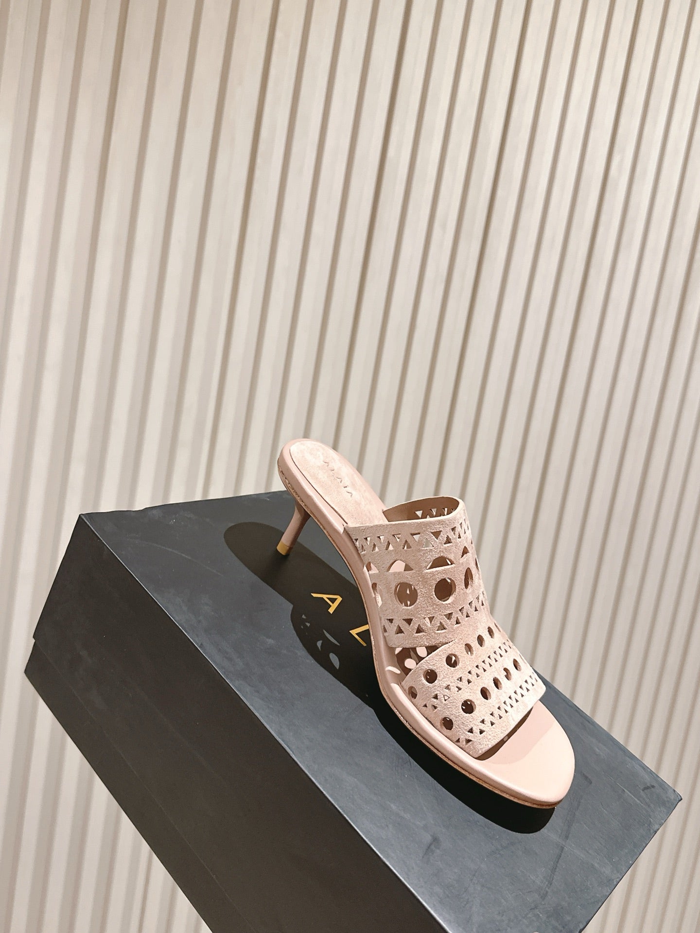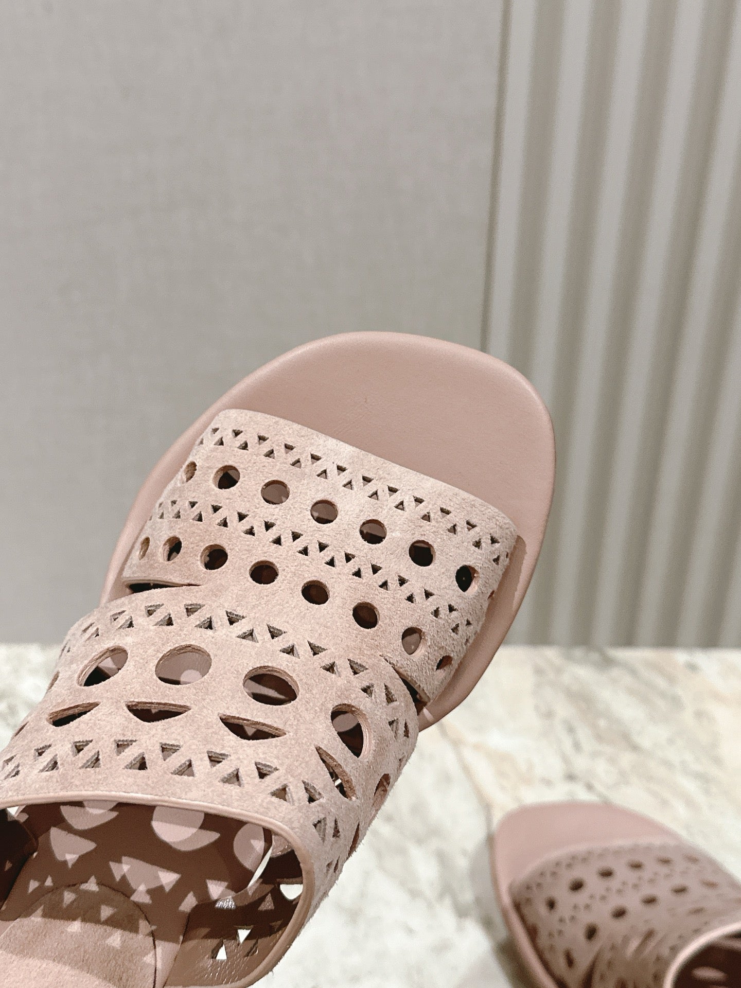 ALAIA HIGH HEEL CHUNKY TWO-STRAP 25S IN PINK BEIGE SUEDE