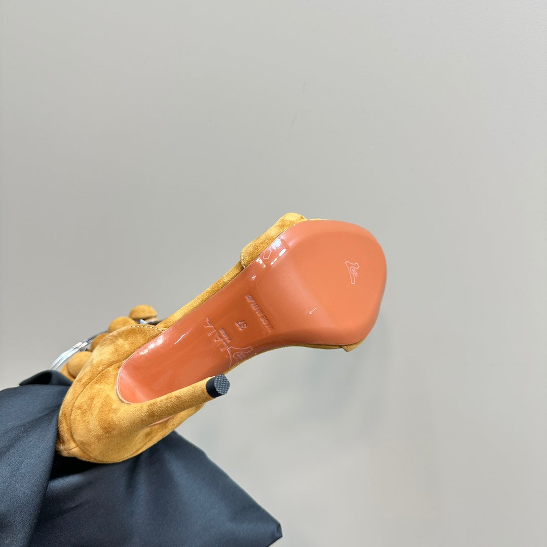 ALAIA HIGH HEEL SANDAL 10 CM IN DIJON YELLOW SUEDE