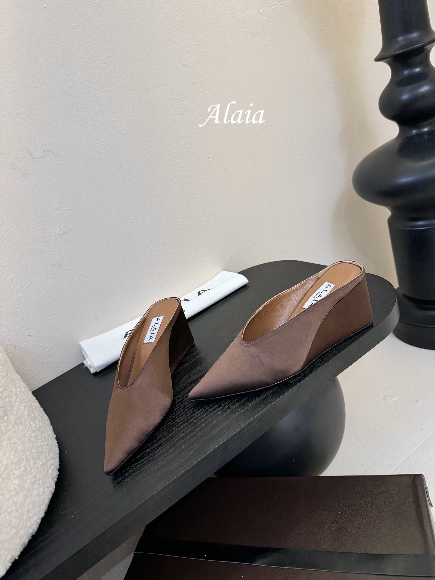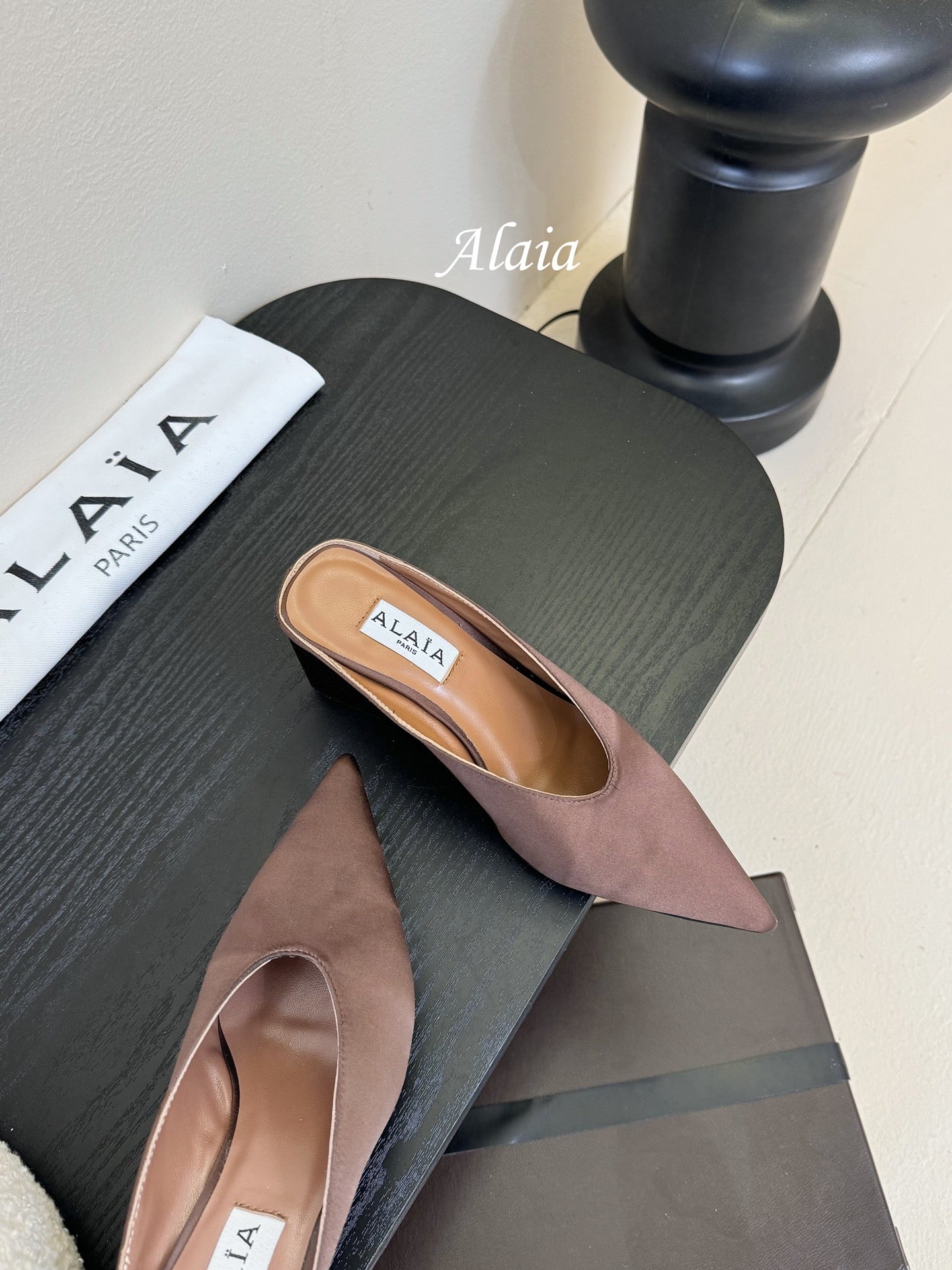 ALAIA HIGH MULES 25S IN BROWN SATIN