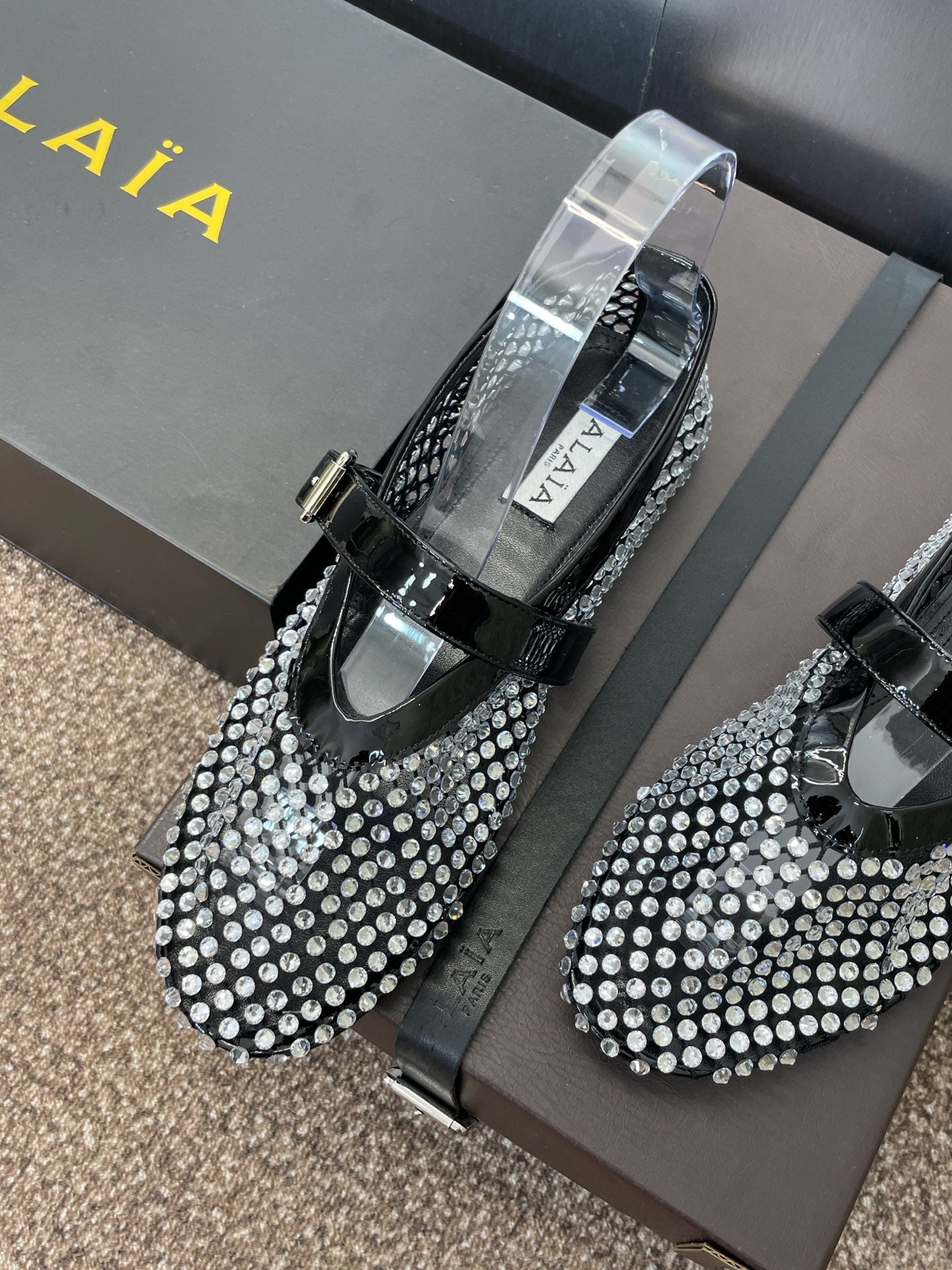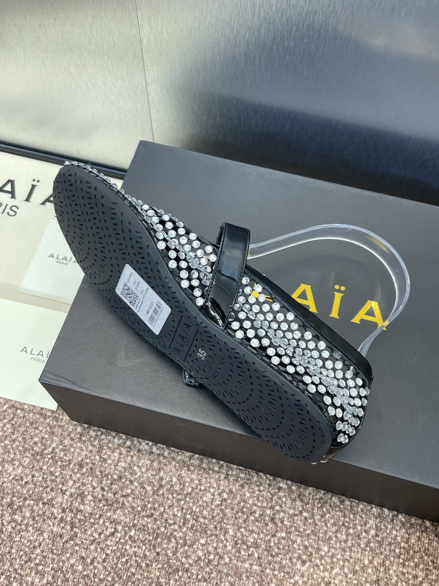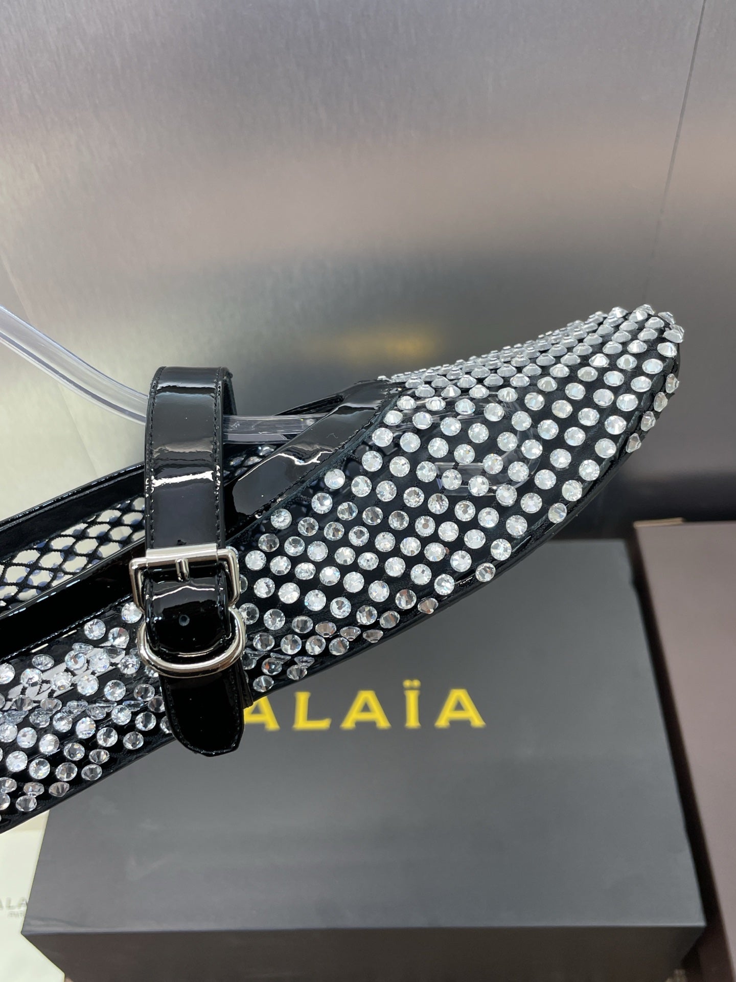 ALAIA MARY JANE FLAT 25S IN BLACK LAMBSKIN EMBELLISHED WITH CRYSTALS