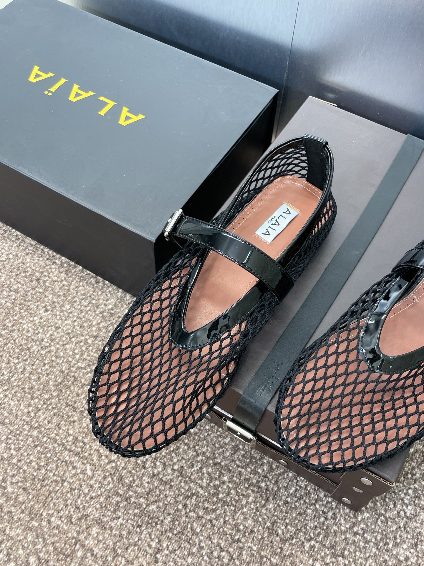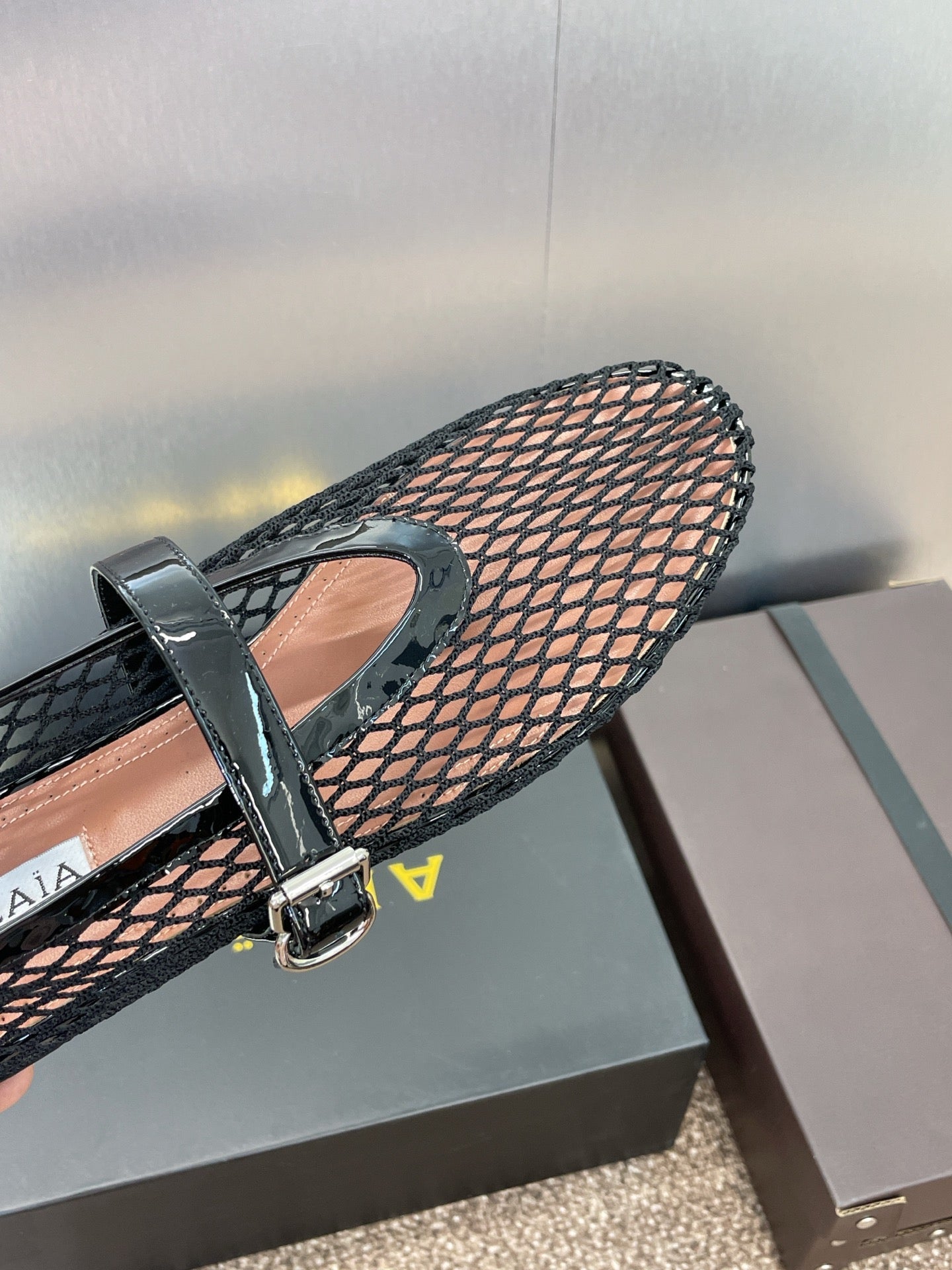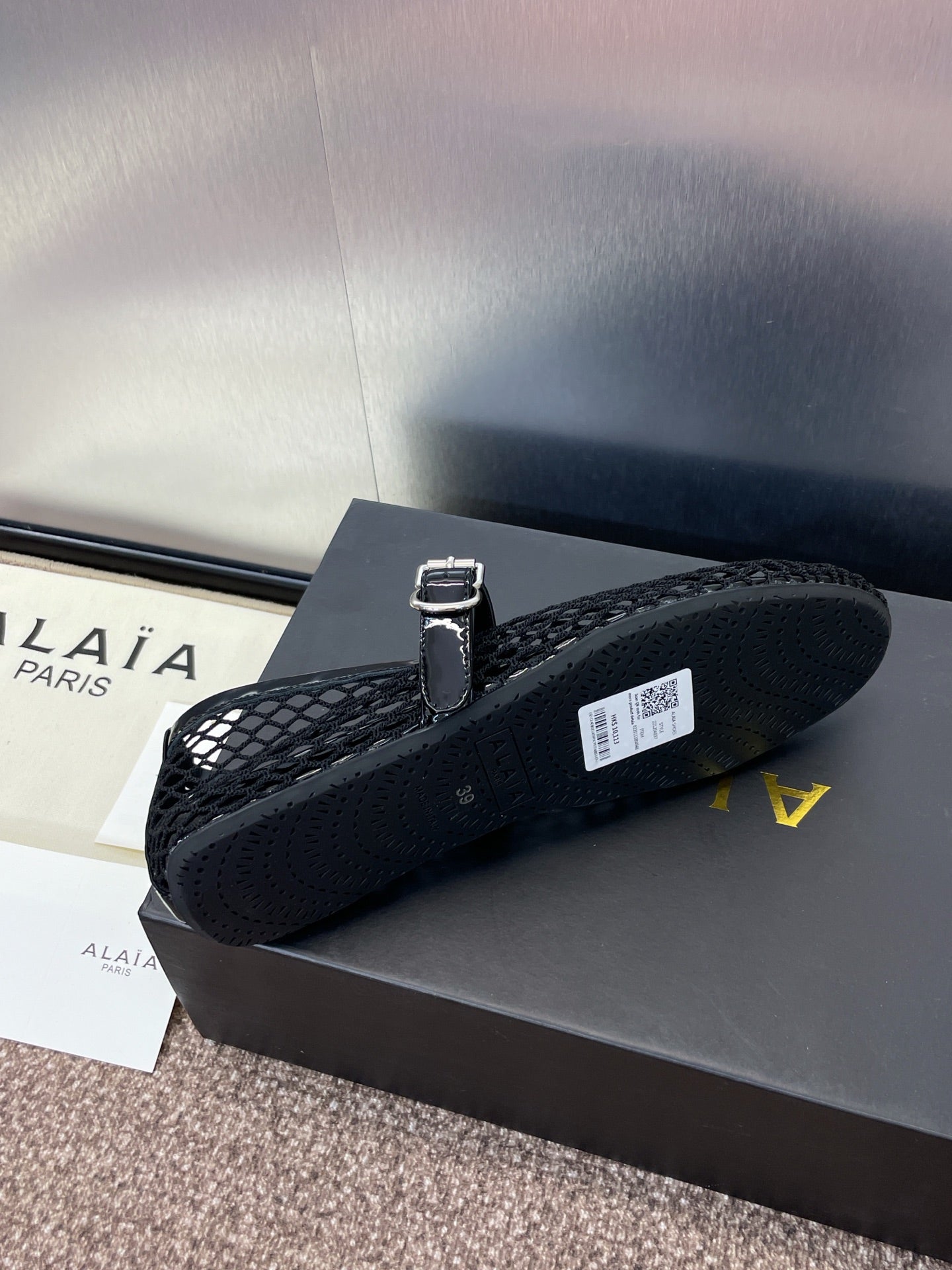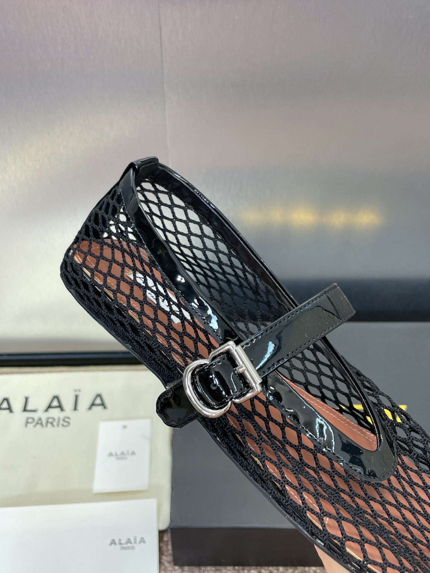 ALAIA MARY JANE FLAT 25S IN BLACK MESH CALFSKIN