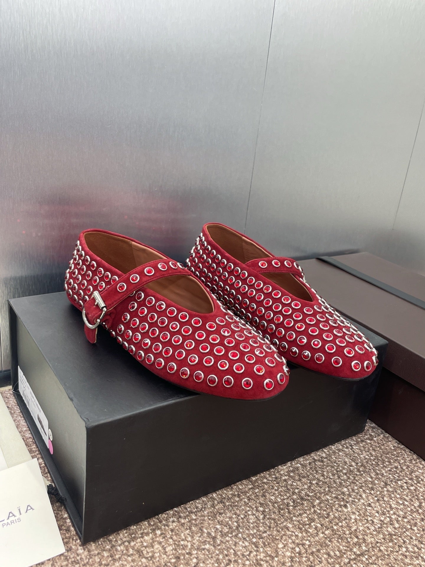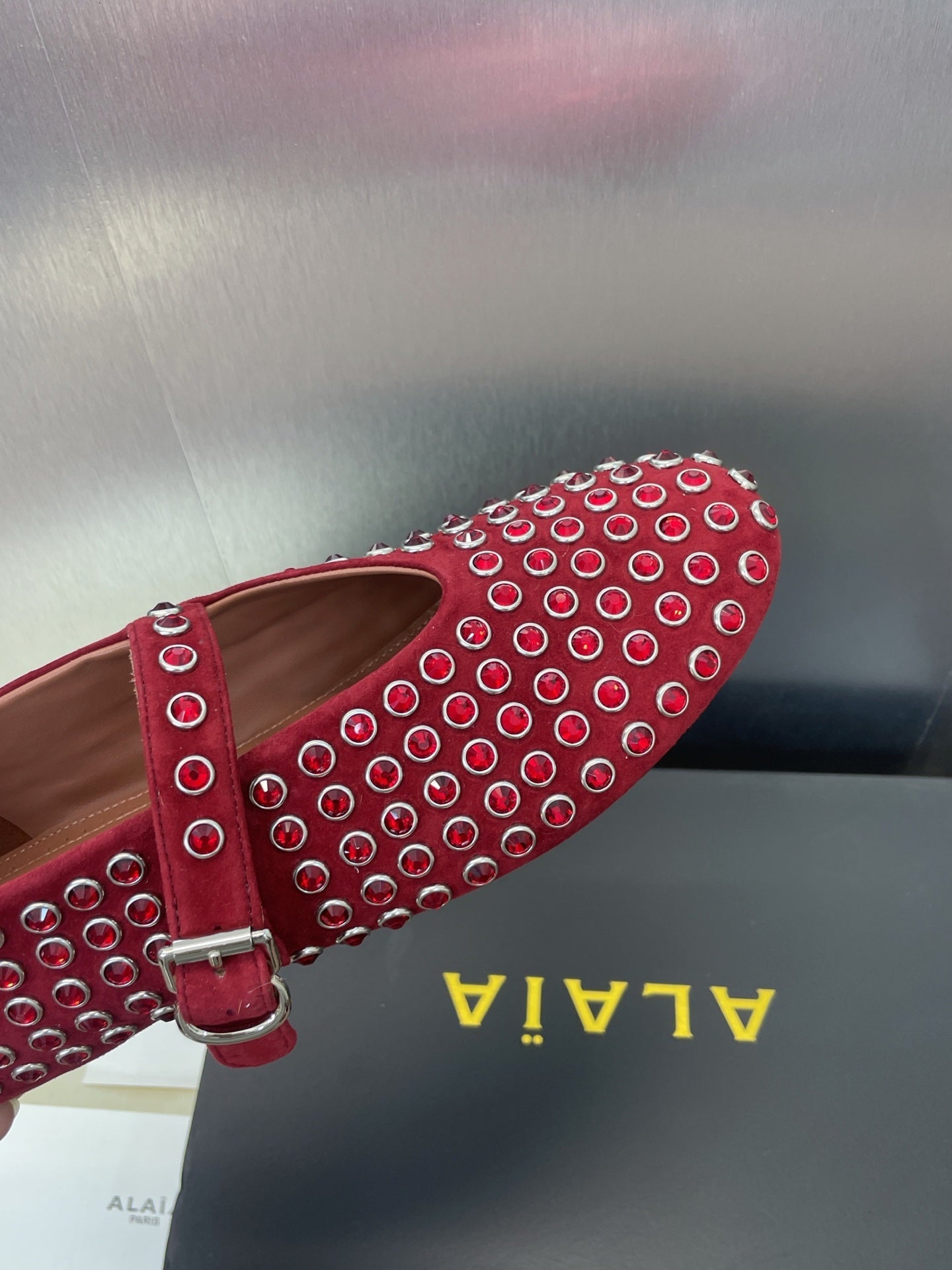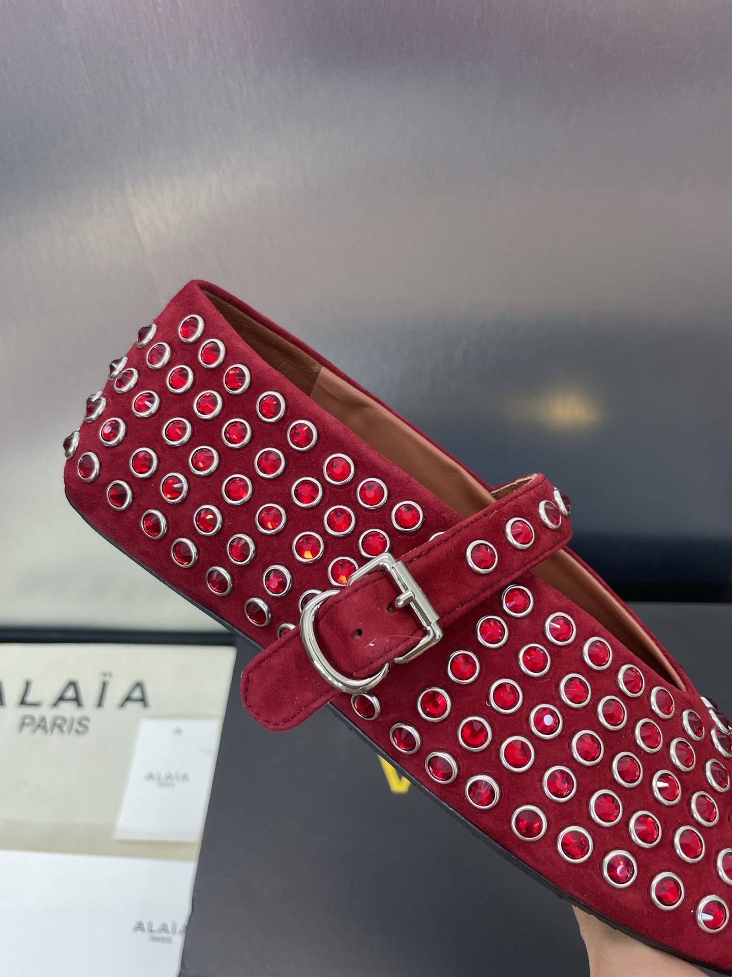 ALAIA MARY JANE FLAT 25S IN DARK RED LAMBSKIN EMBELLISHED WITH CRYSTALS