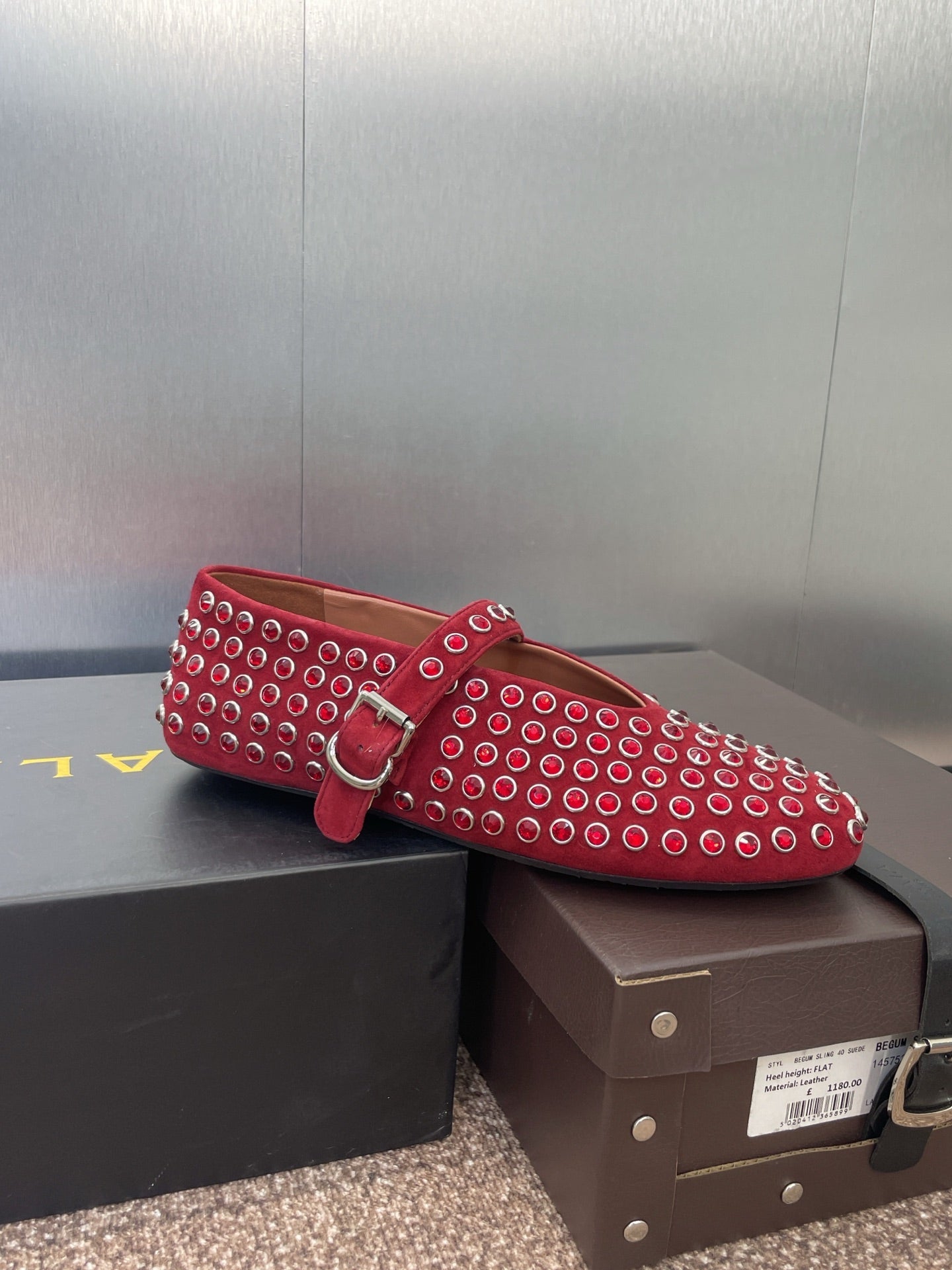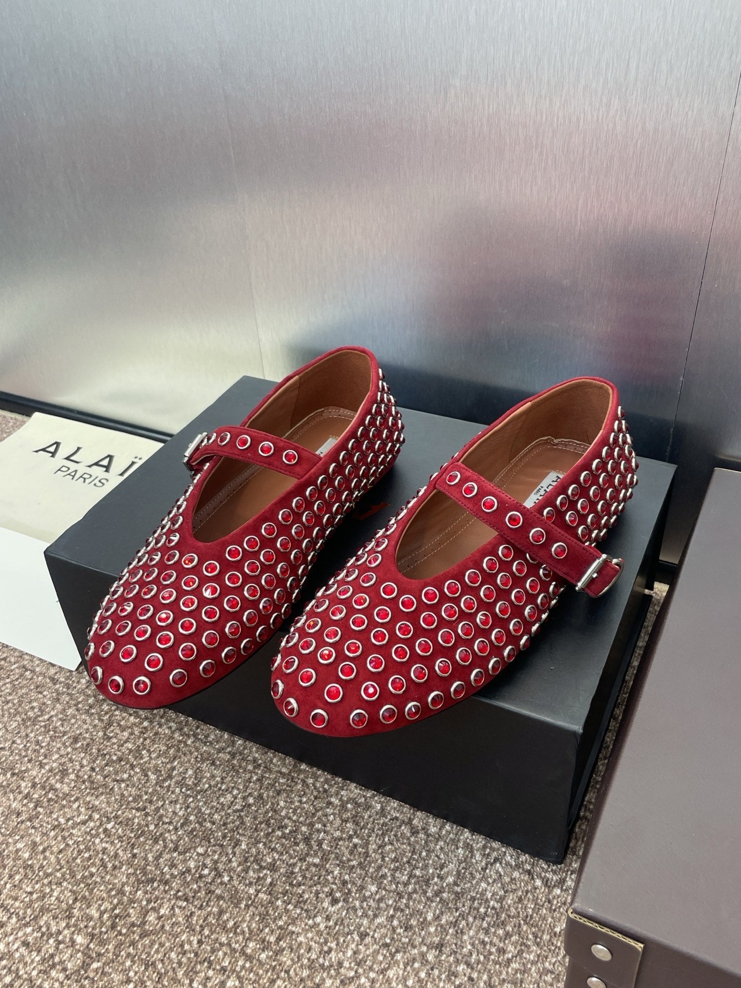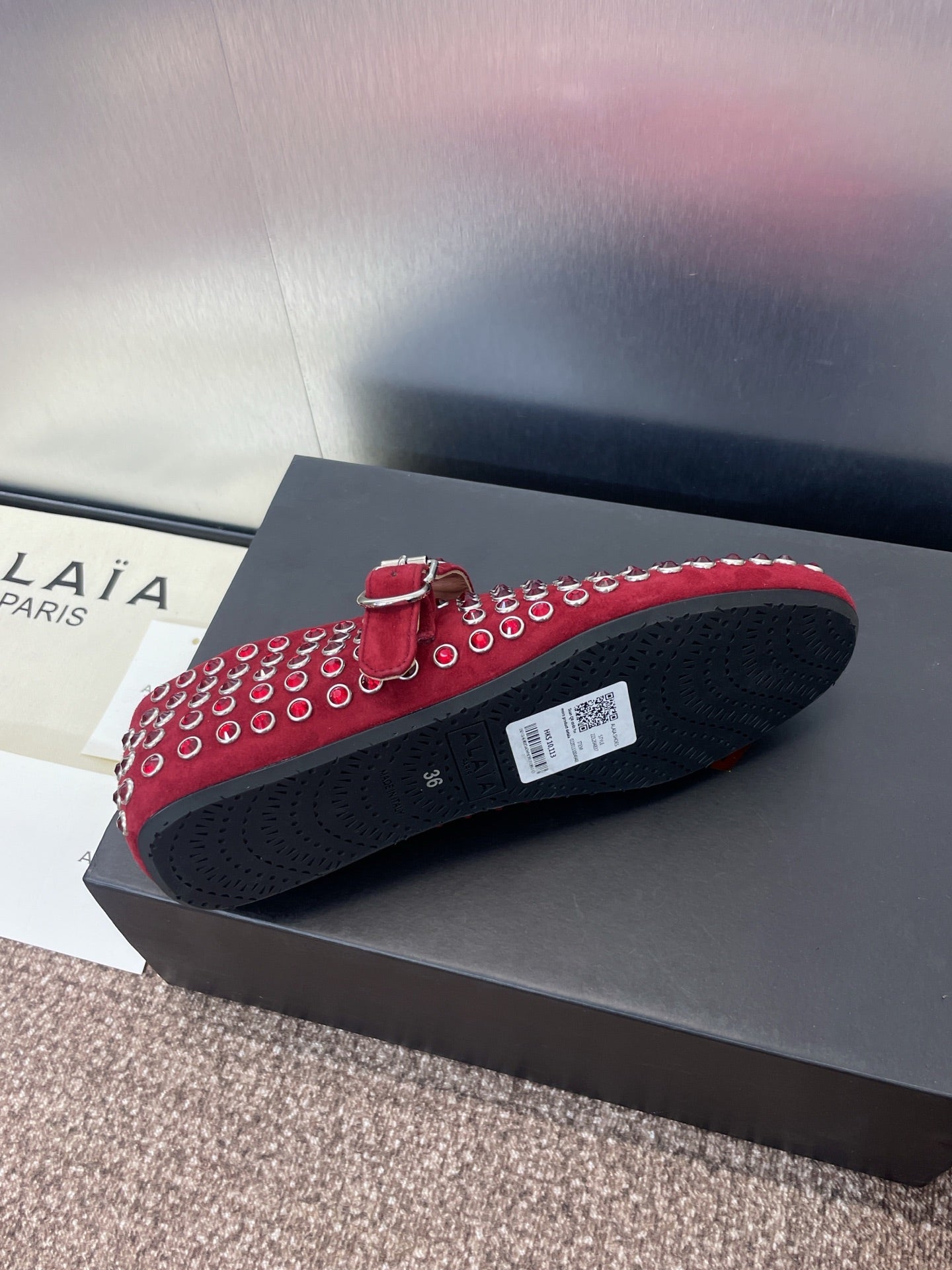 ALAIA MARY JANE FLAT 25S IN DARK RED LAMBSKIN EMBELLISHED WITH CRYSTALS