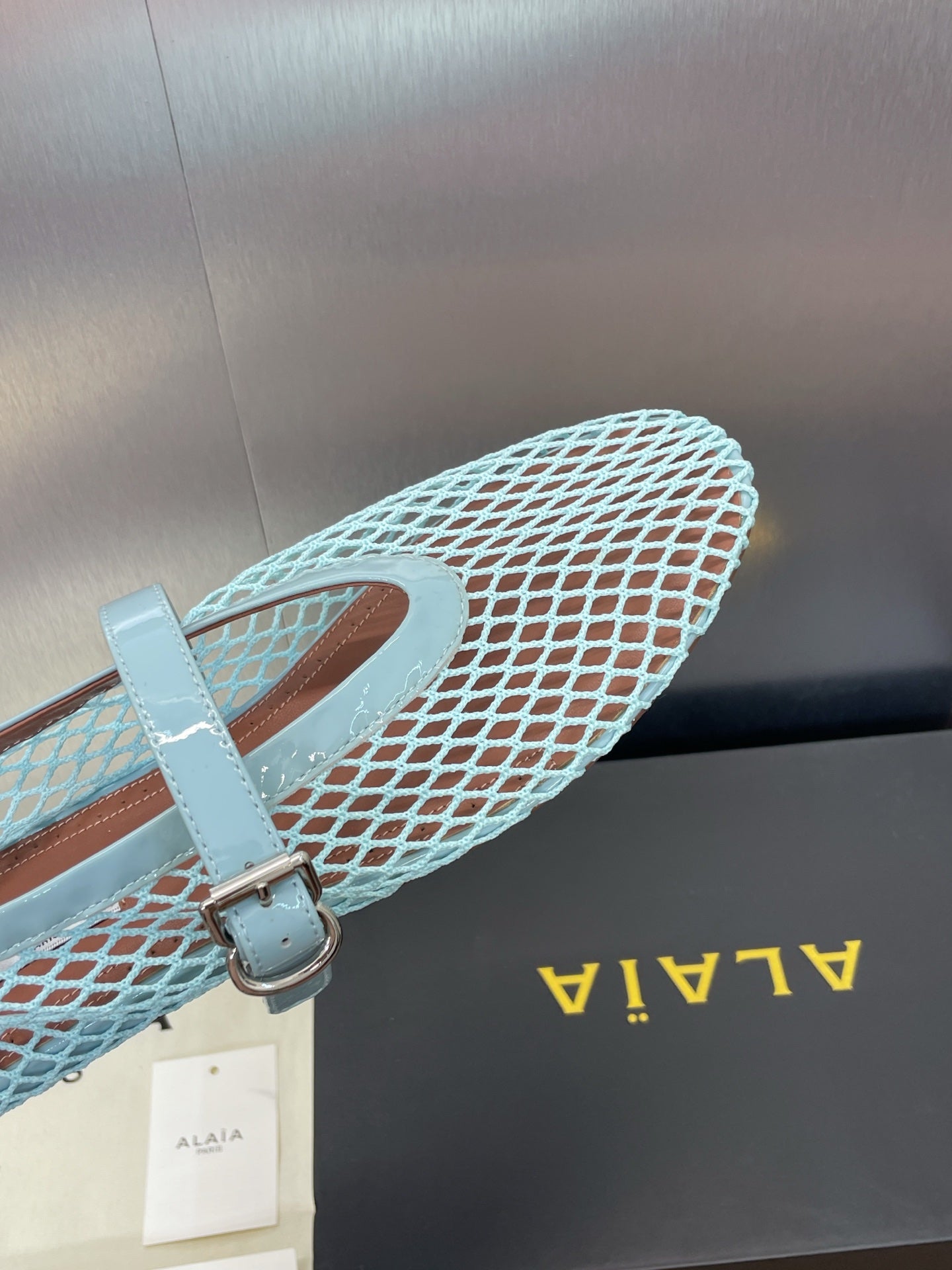 ALAIA MARY JANE FLAT 25S IN PASTEL BLUE MESH CALFSKIN