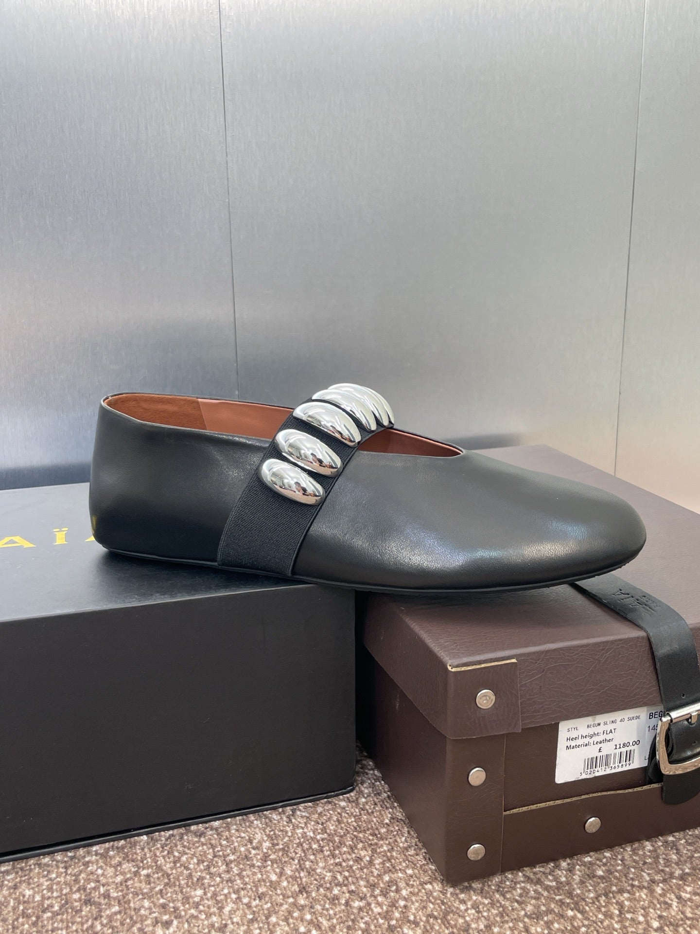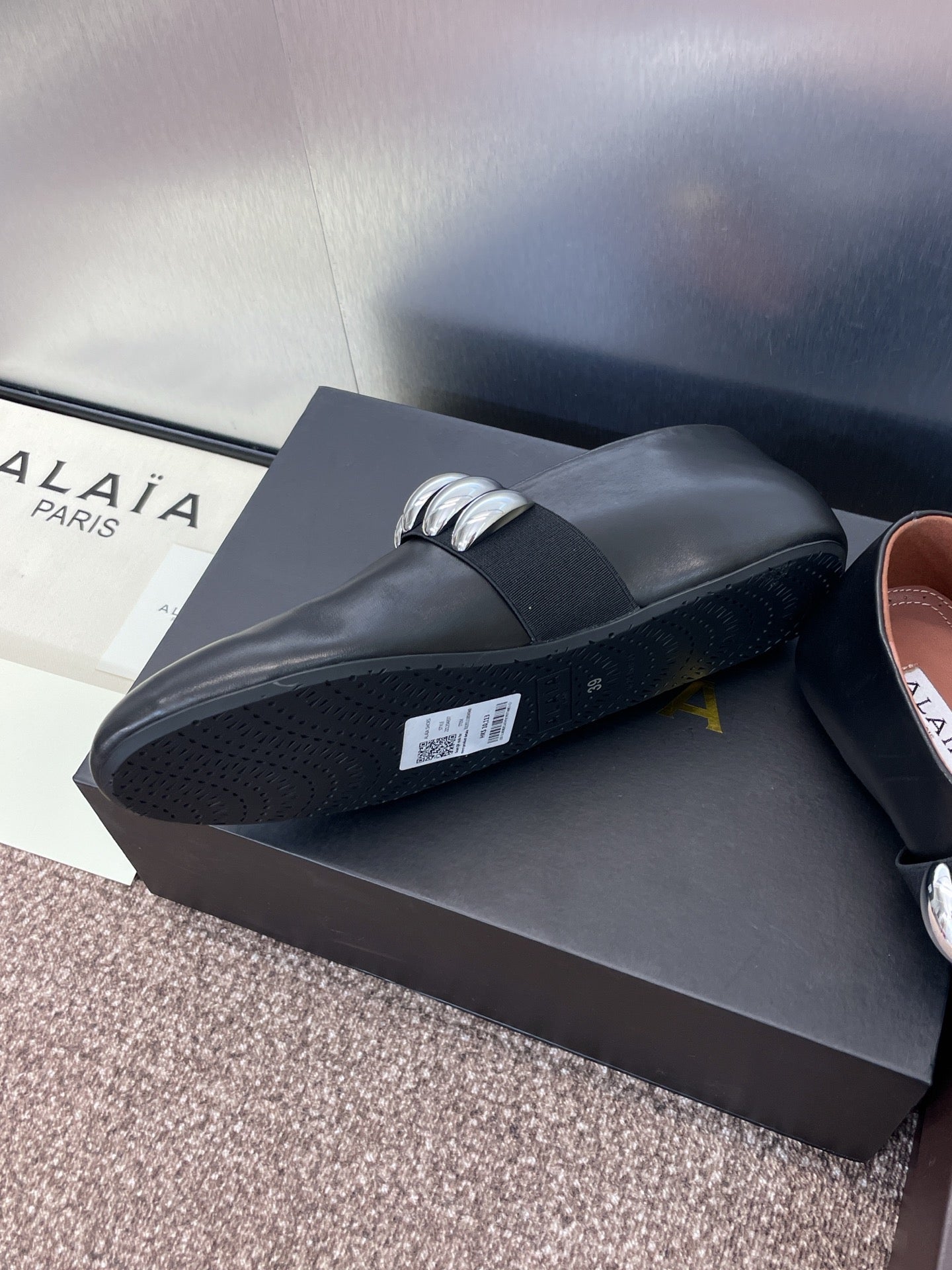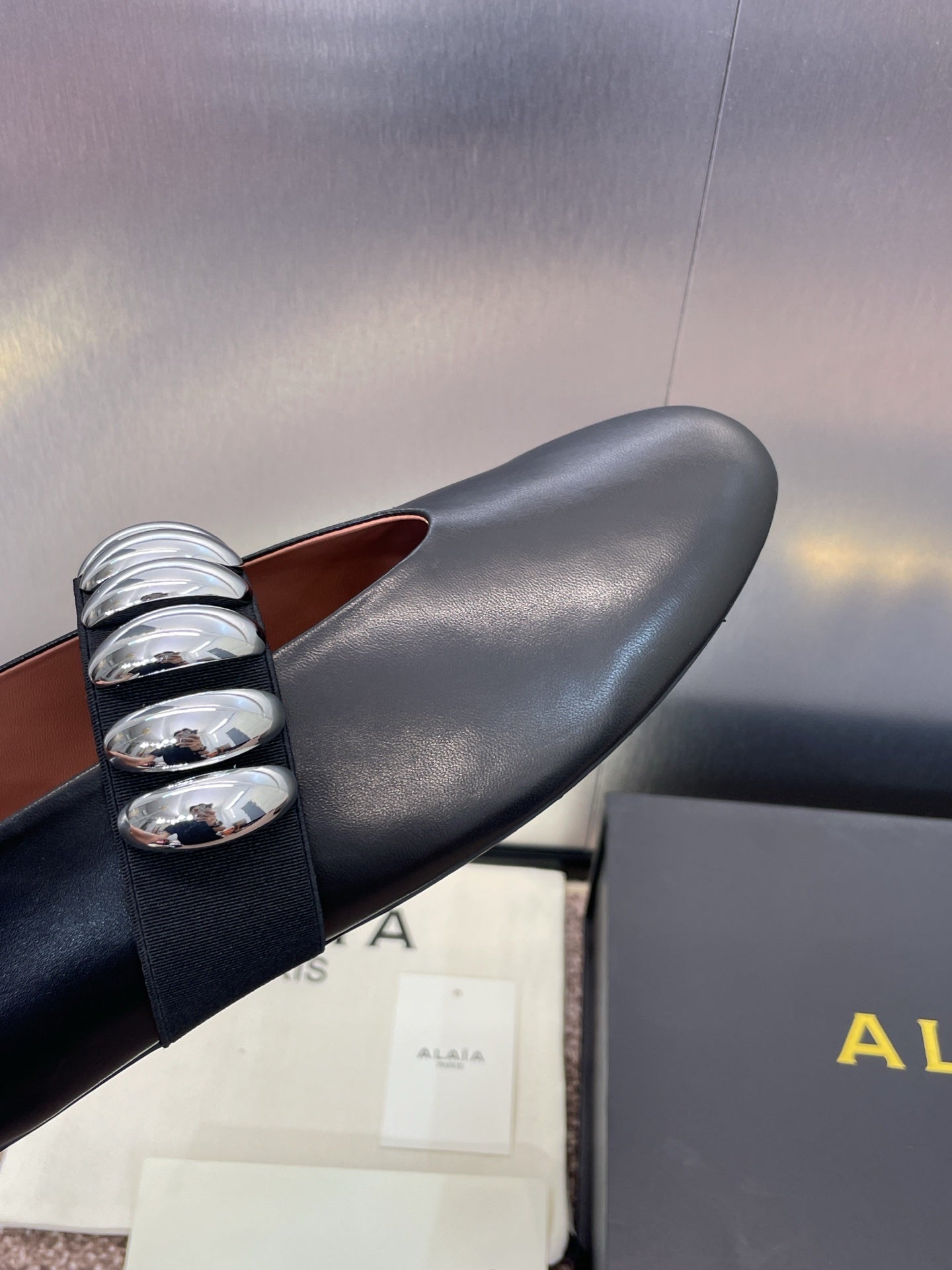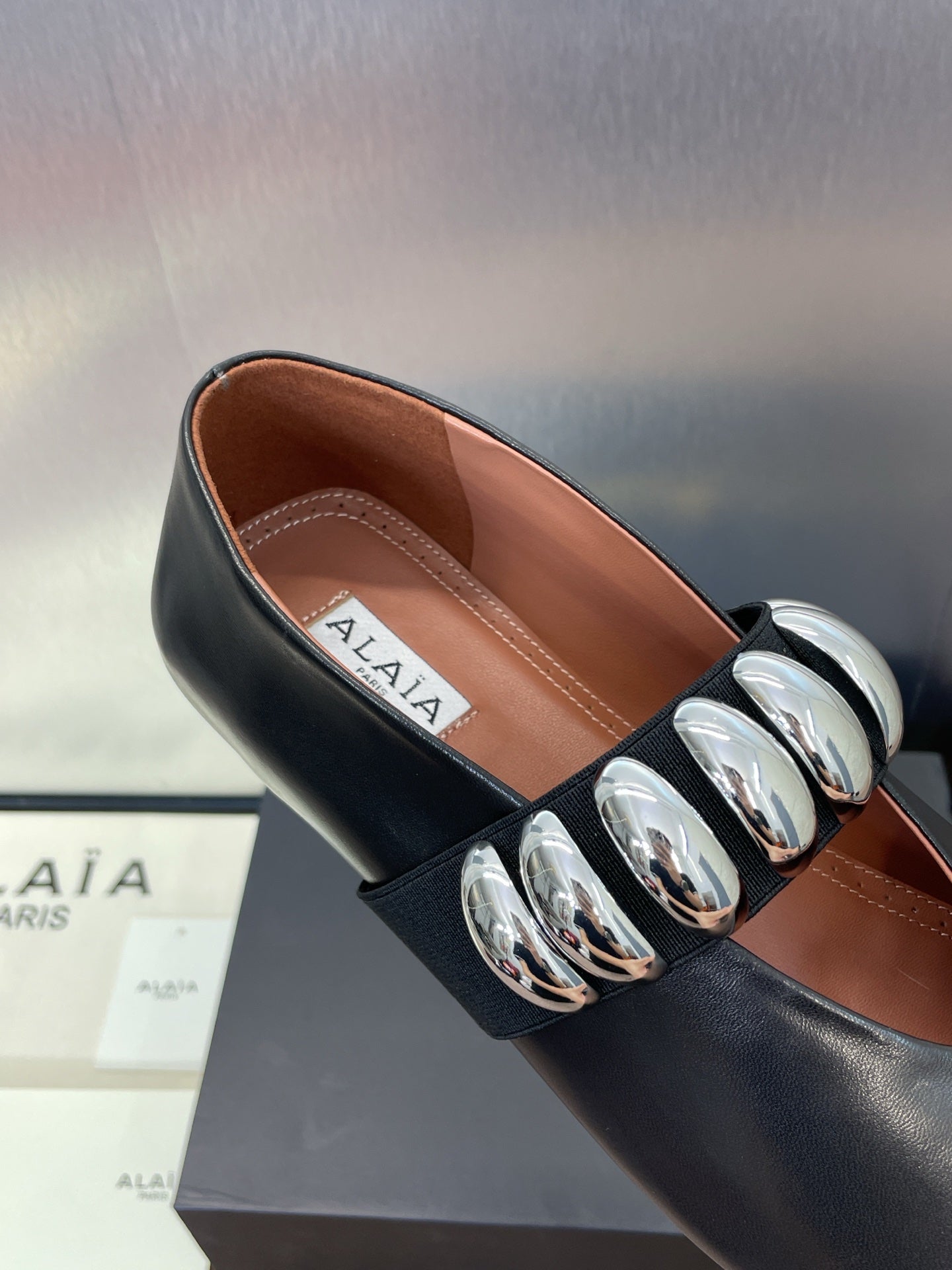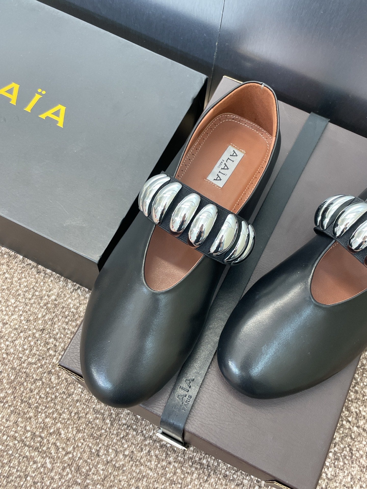 ALAIA MARY JANE FLATS 25S IN BLACK CALFSKIN WITH SILVER HARDWARE