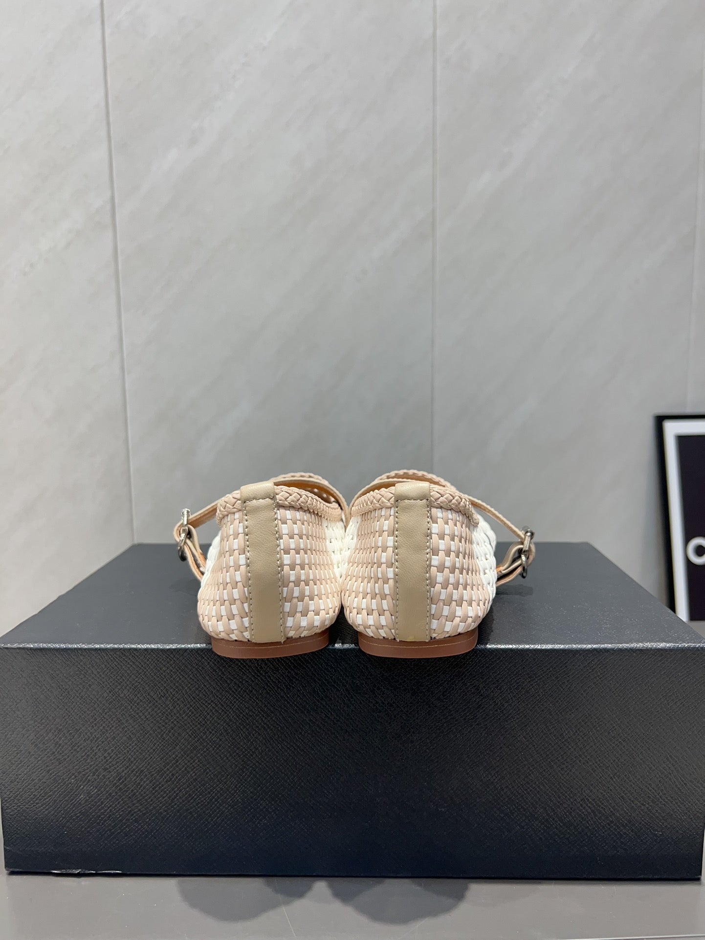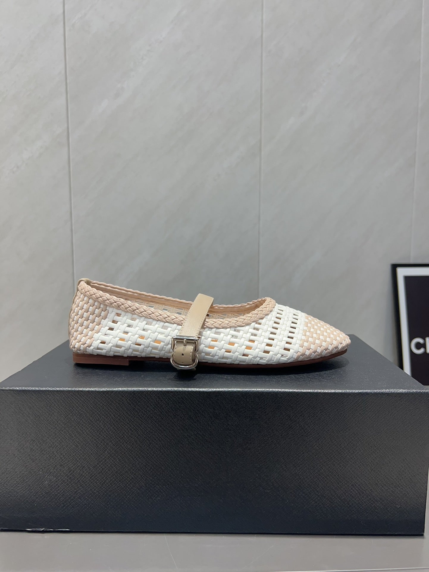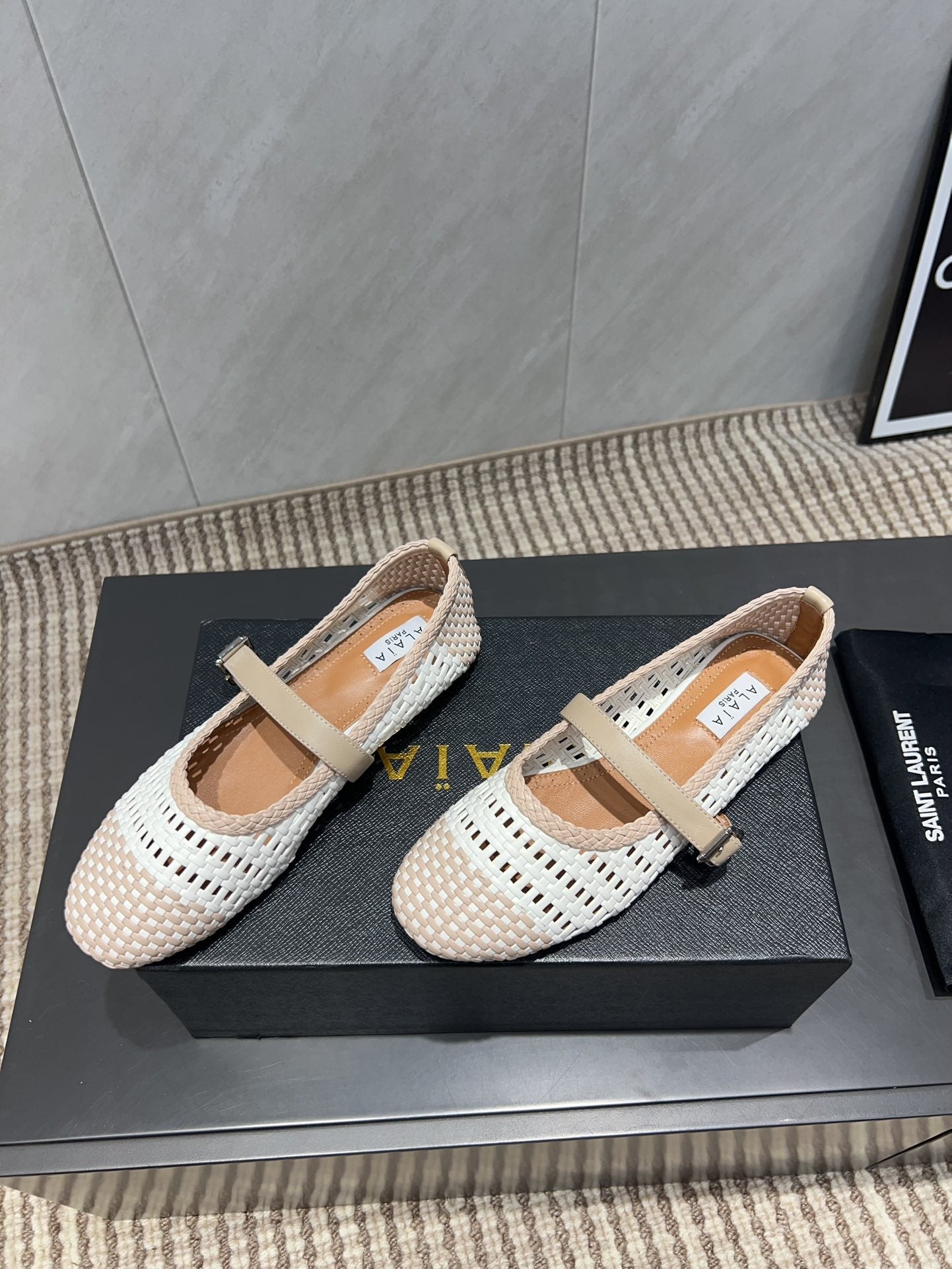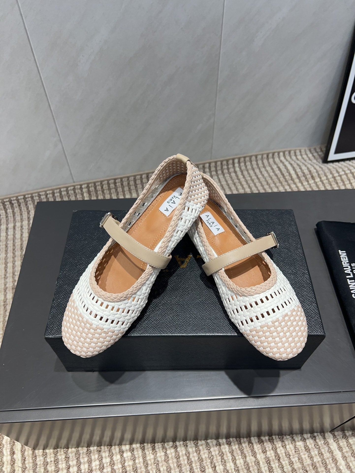 ALAIA MARY JANE FLATS WOVEN PATTERN 25S IN WHITE MIX LIGHT BEIGE CALFSKIN