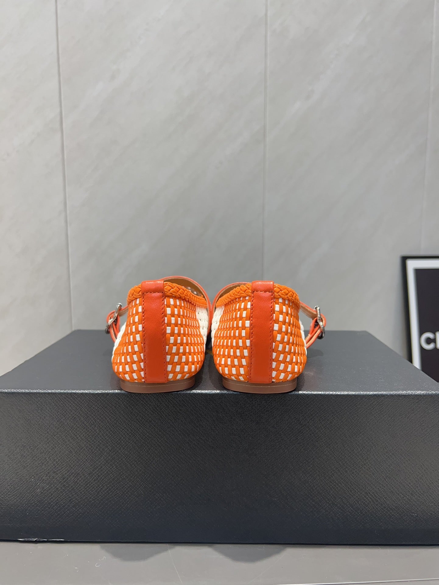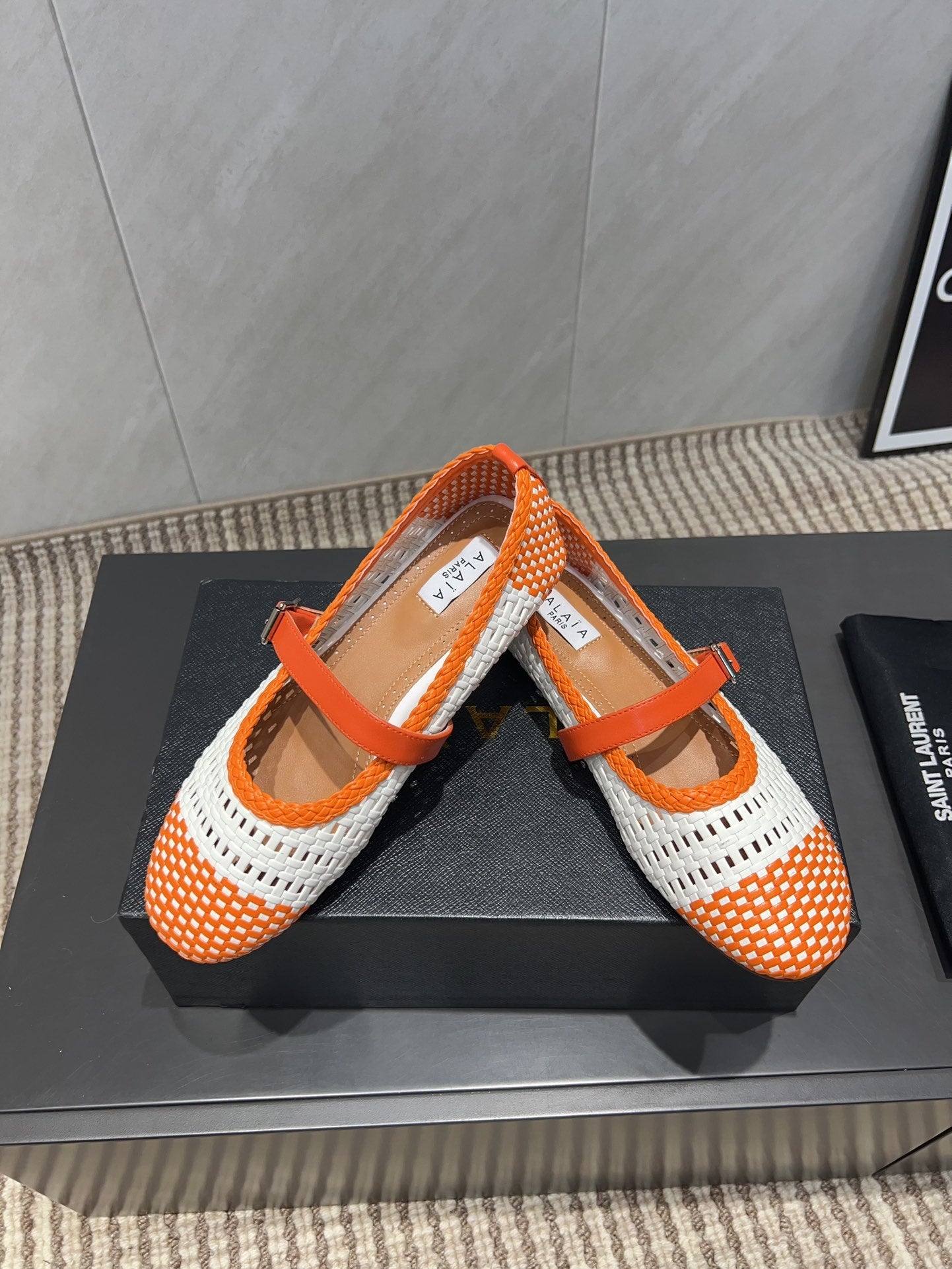 ALAIA MARY JANE FLATS WOVEN PATTERN 25S IN WHITE MIX ORANGE CALFSKIN