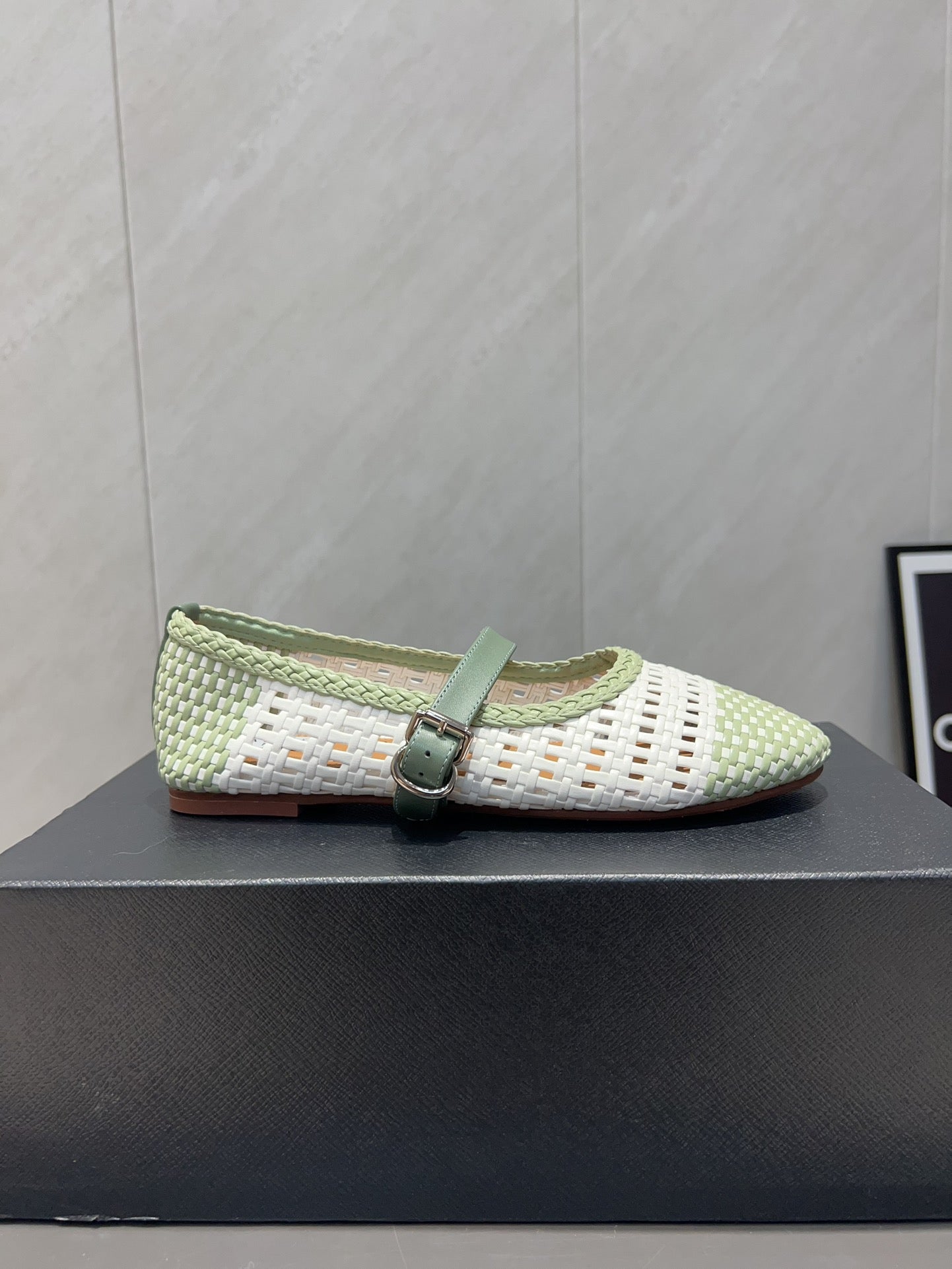 ALAIA MARY JANE FLATS WOVEN PATTERN 25S IN WHITE MIX PASTEL GREEN CALFSKIN