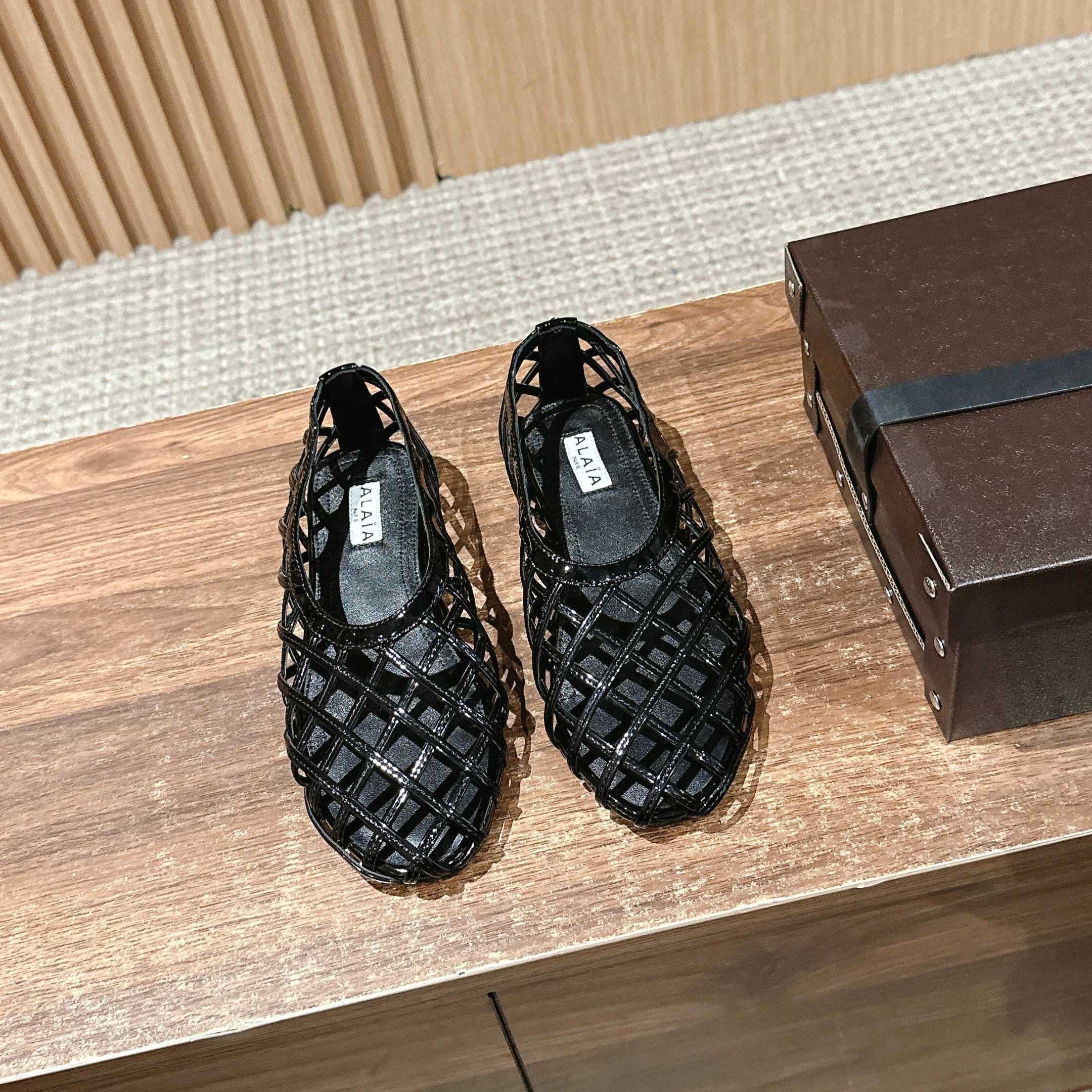 ALAIA MESH BALLET FLATS 25S IN BLACK LAMBSKIN