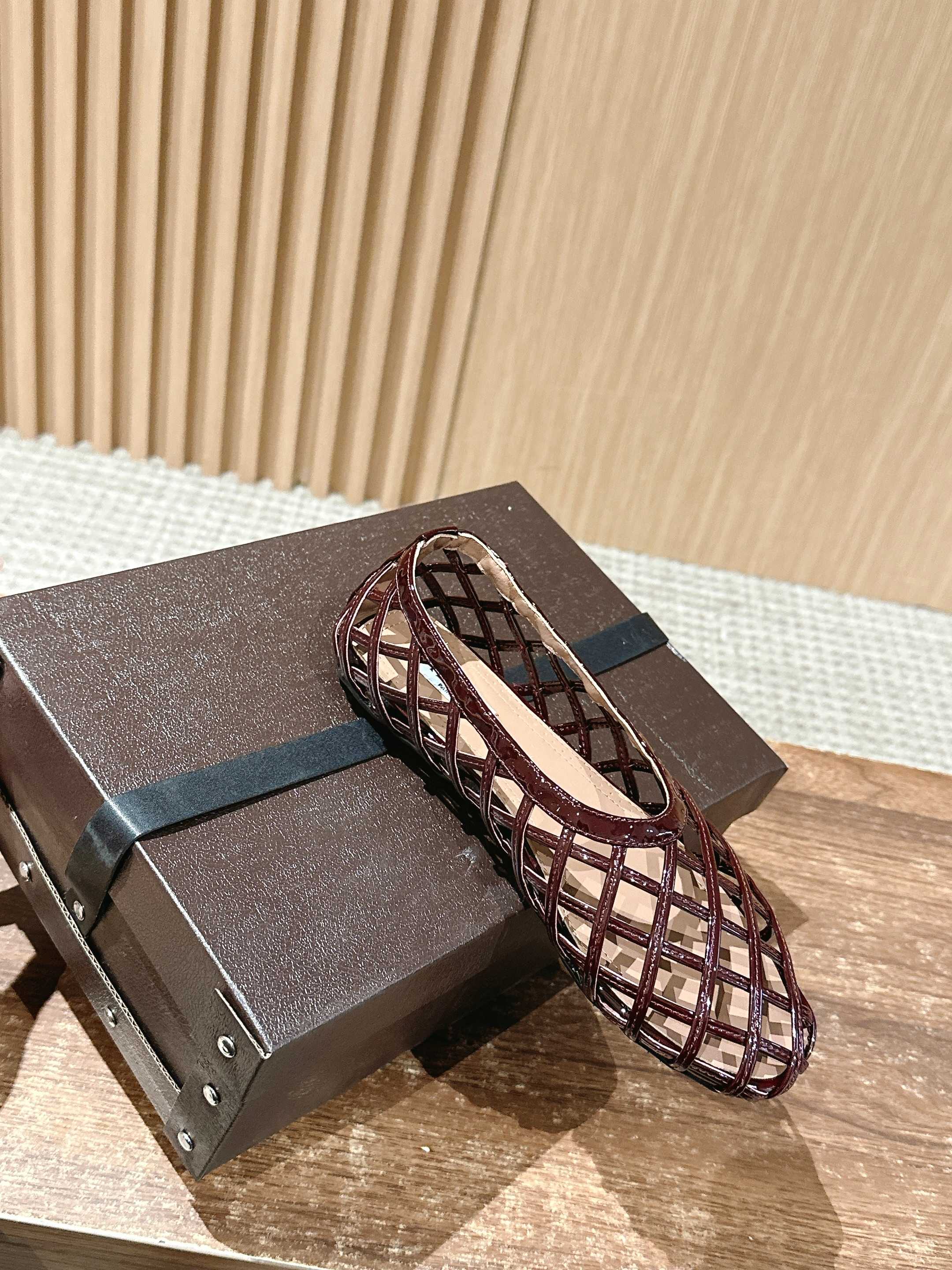 ALAIA MESH BALLET FLATS 25S IN DARK RED LAMBSKIN