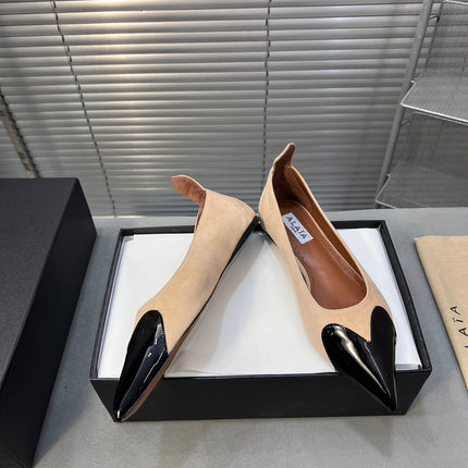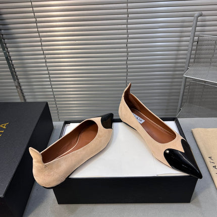 ALAIA PUMP 1 CM IN BEIGE SUEDE MIX BLACK CALFSKIN