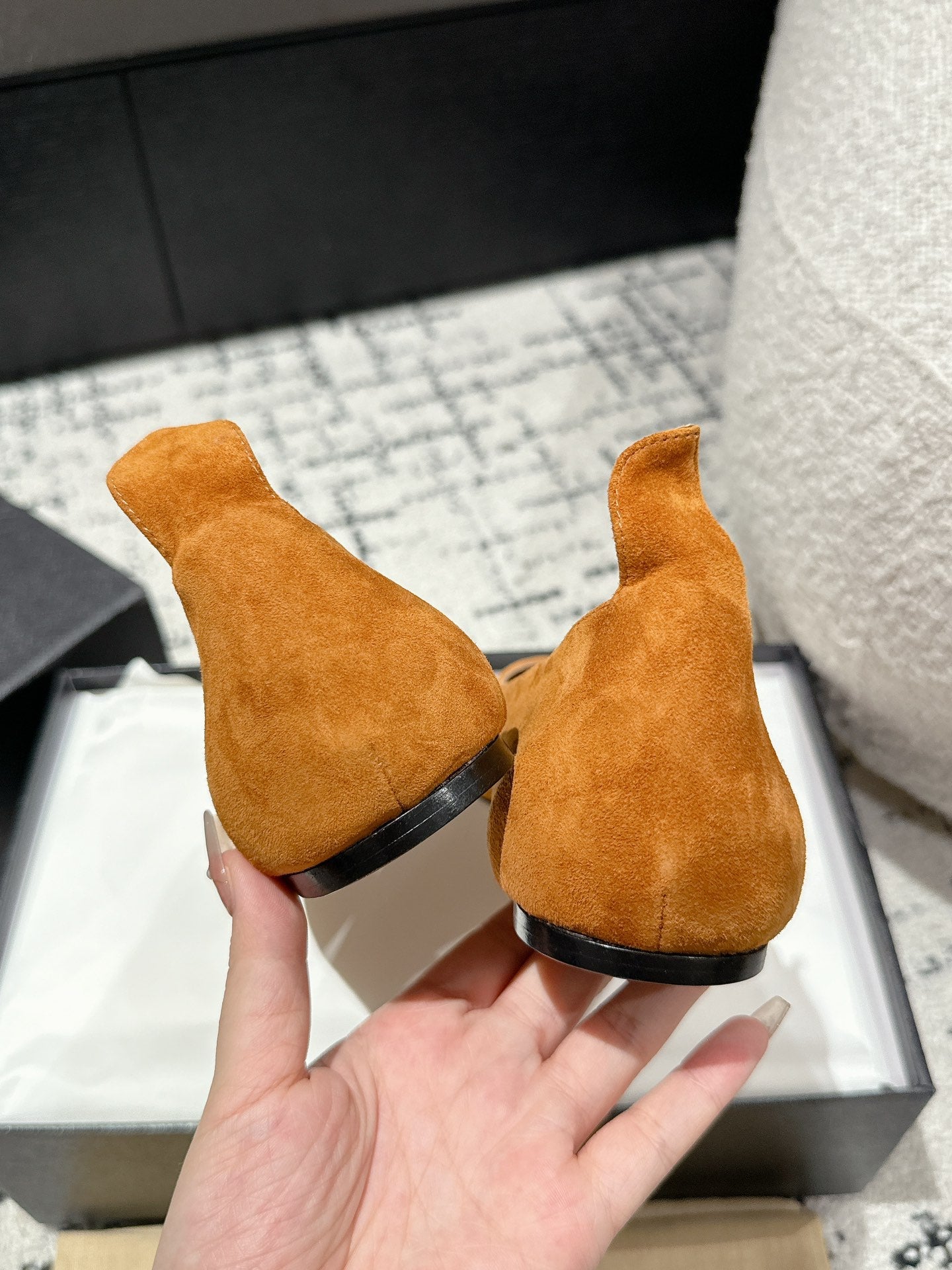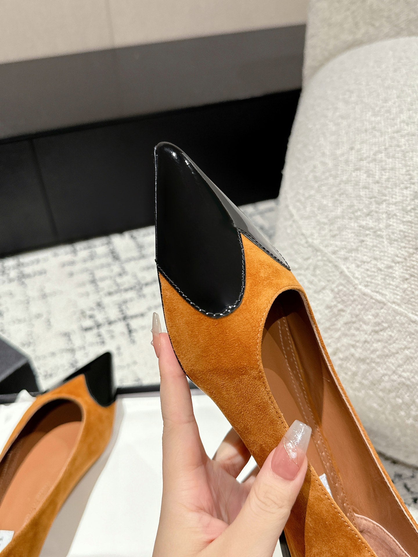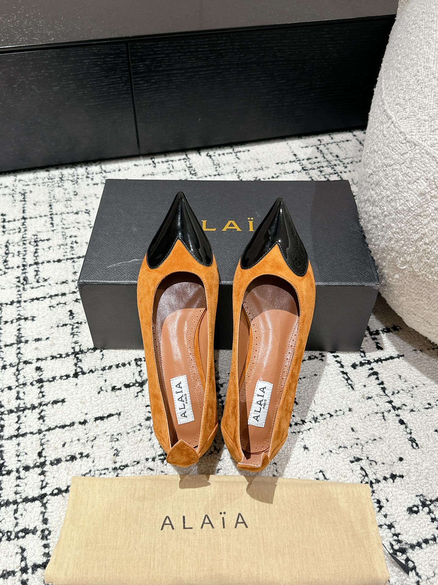 ALAIA PUMP 1 CM IN COPPER BROWN SUEDE MIX BLACK CALFSKIN