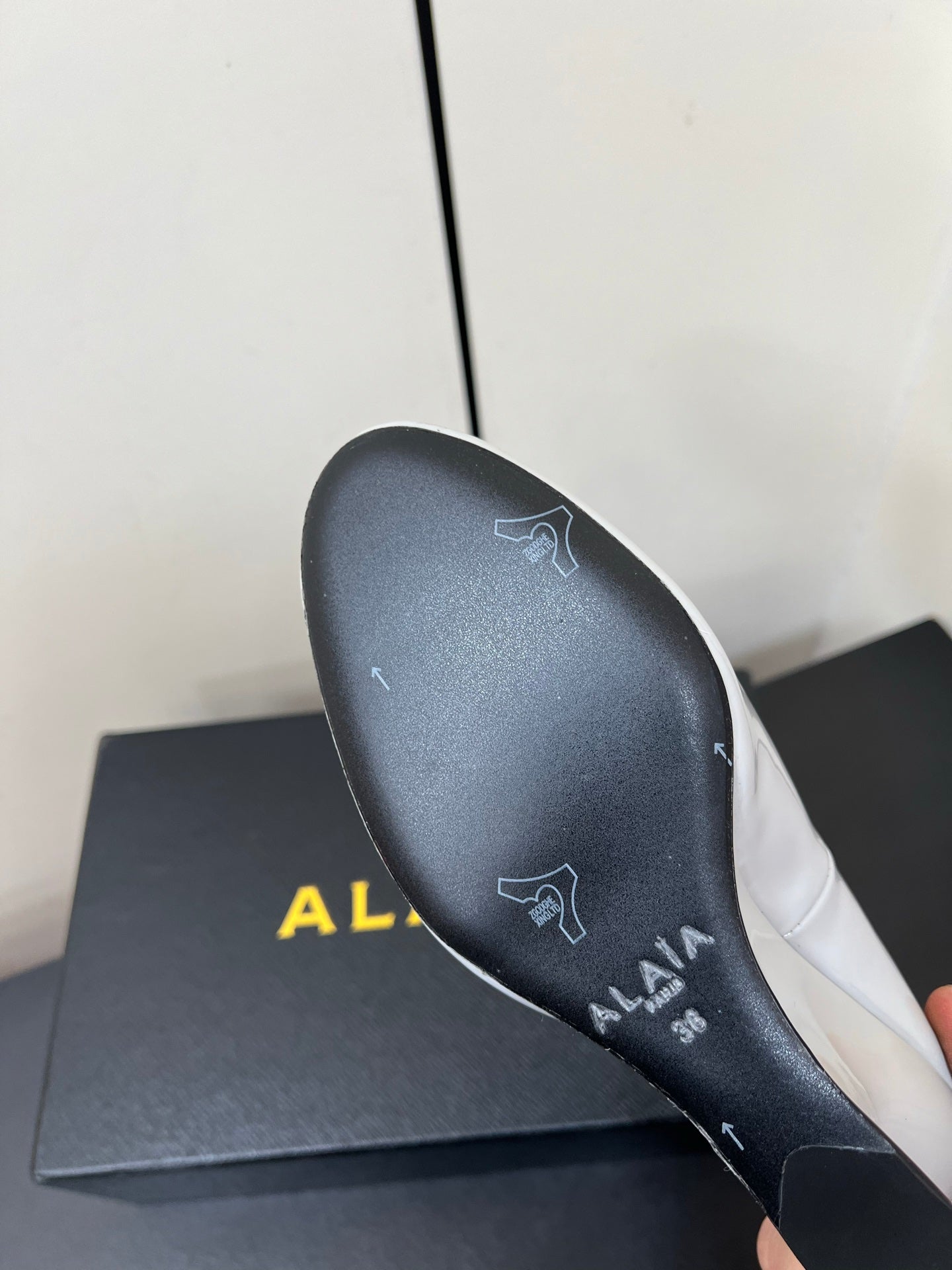 ALAIA WEDGE MULES 25S IN WHITE LAMBSKIN