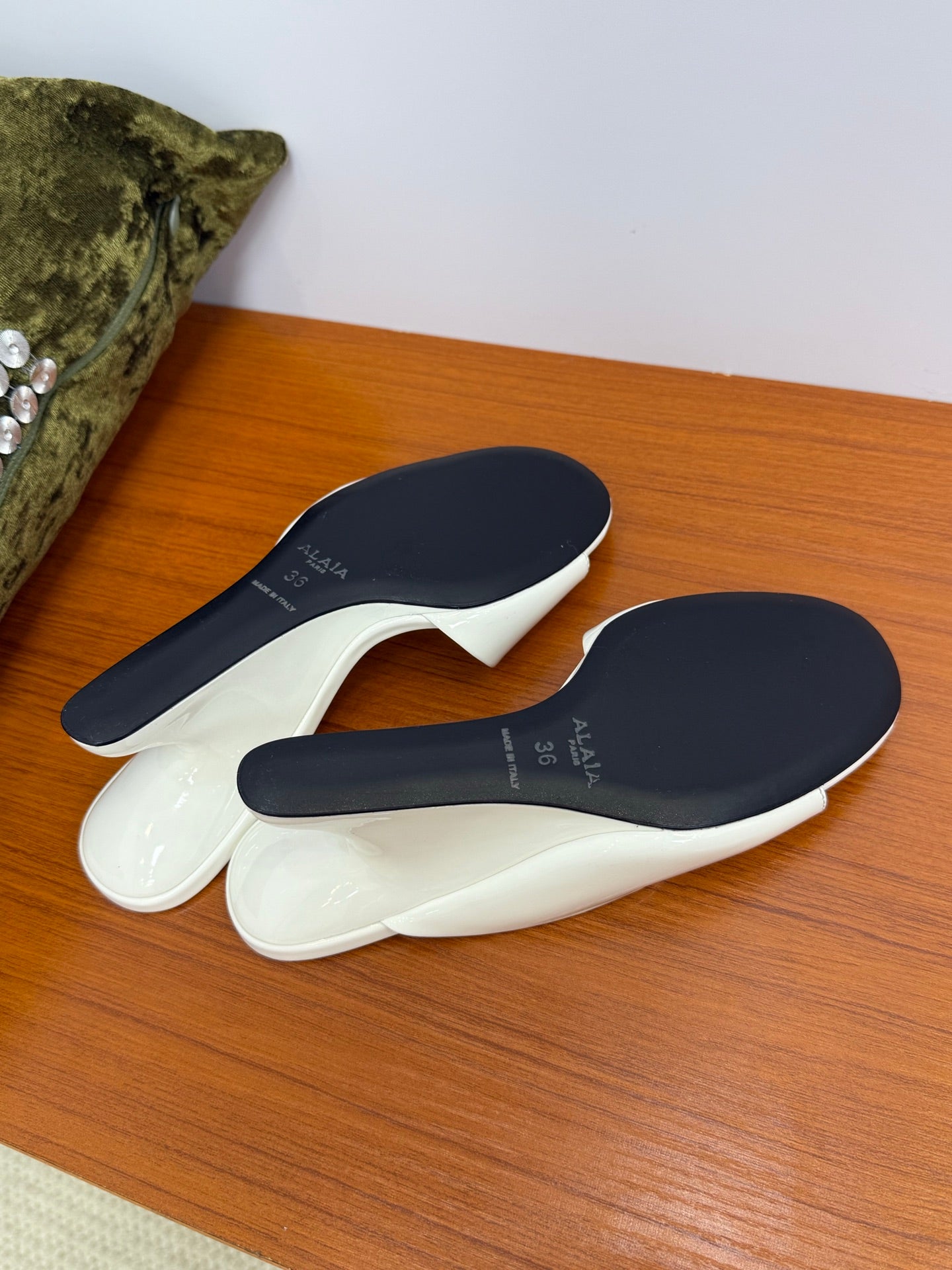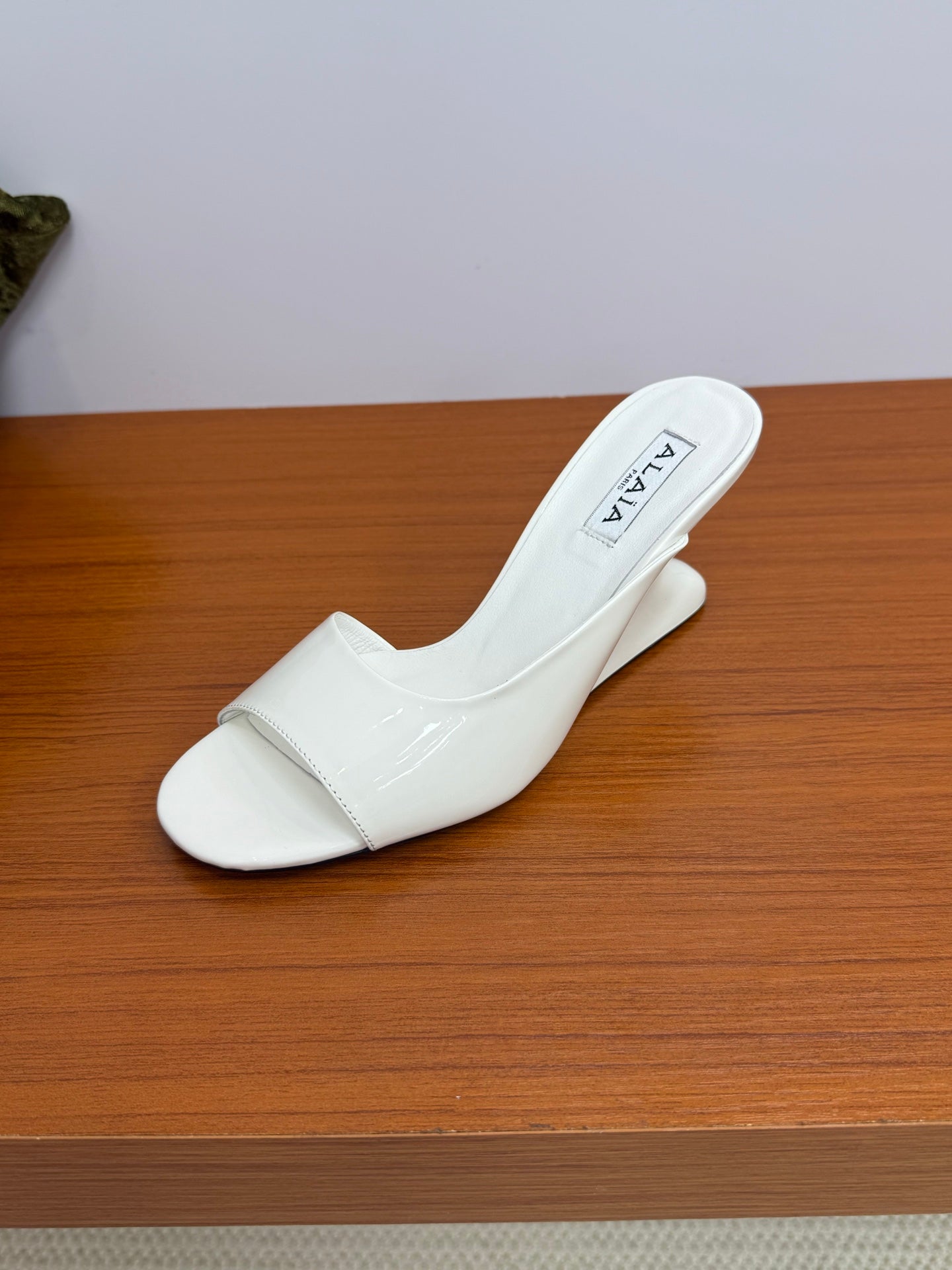 ALAIA WEDGE SANDALS 25S IN WHITE LAMBSKIN
