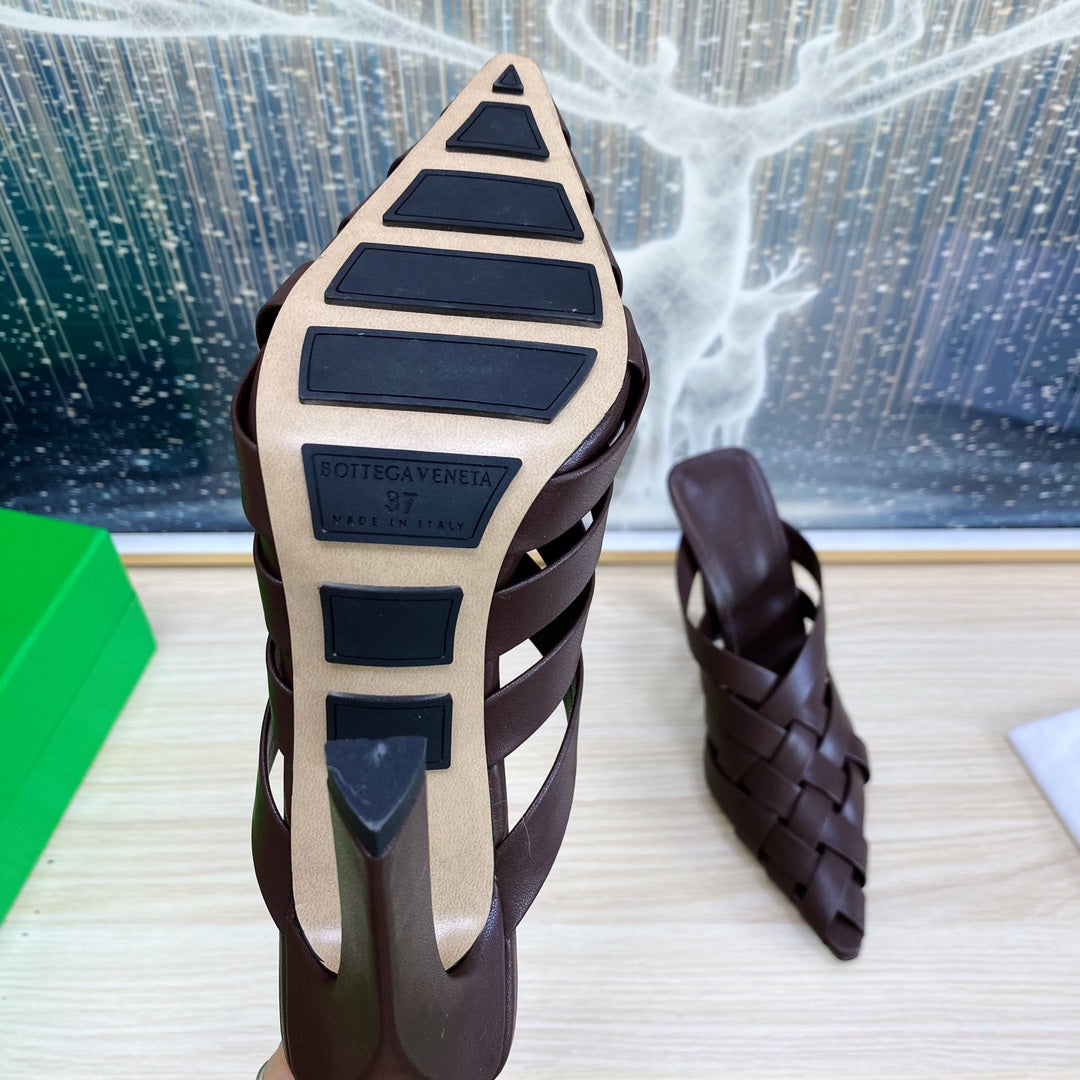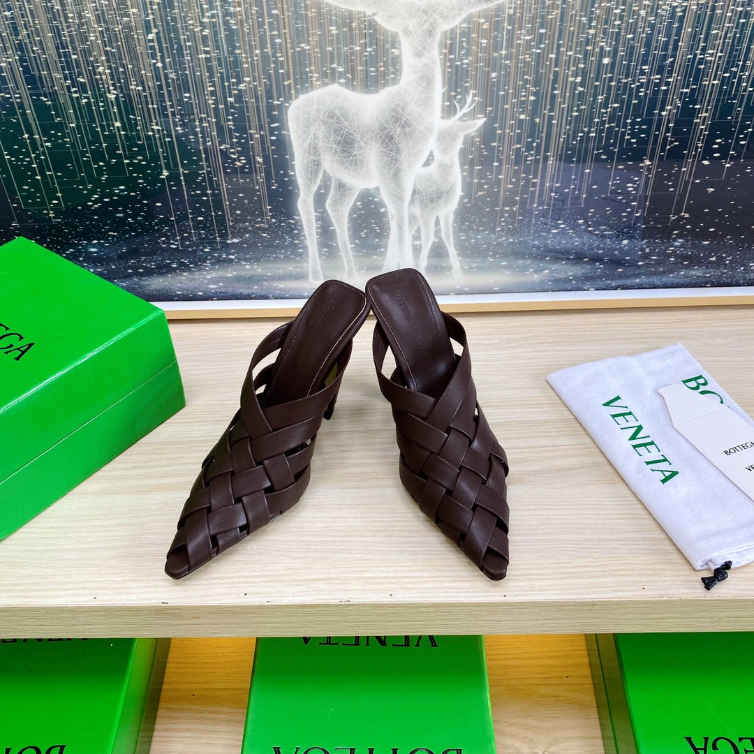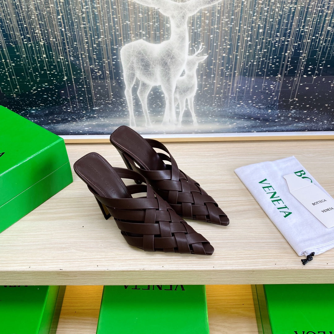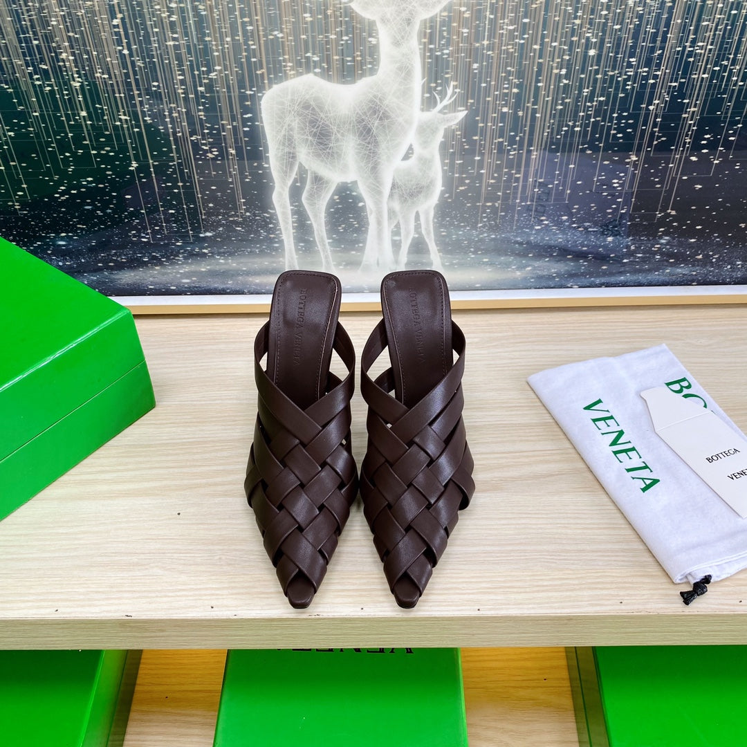 ALFIE LEATHER HIGH MULES IN CHOCOLATE BROWN CALFSKIN WITH WOVEN DESIGN