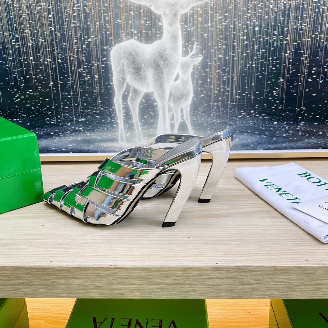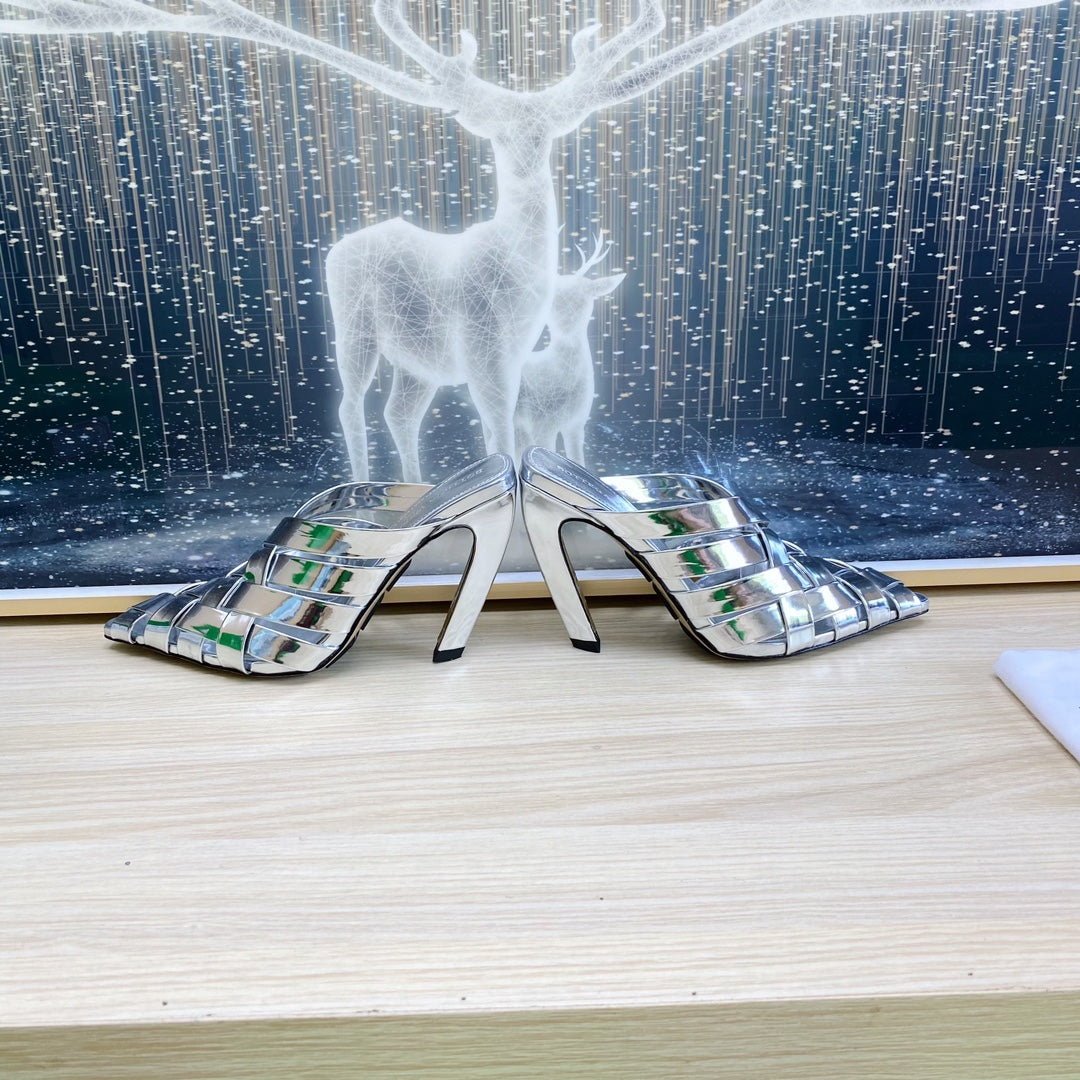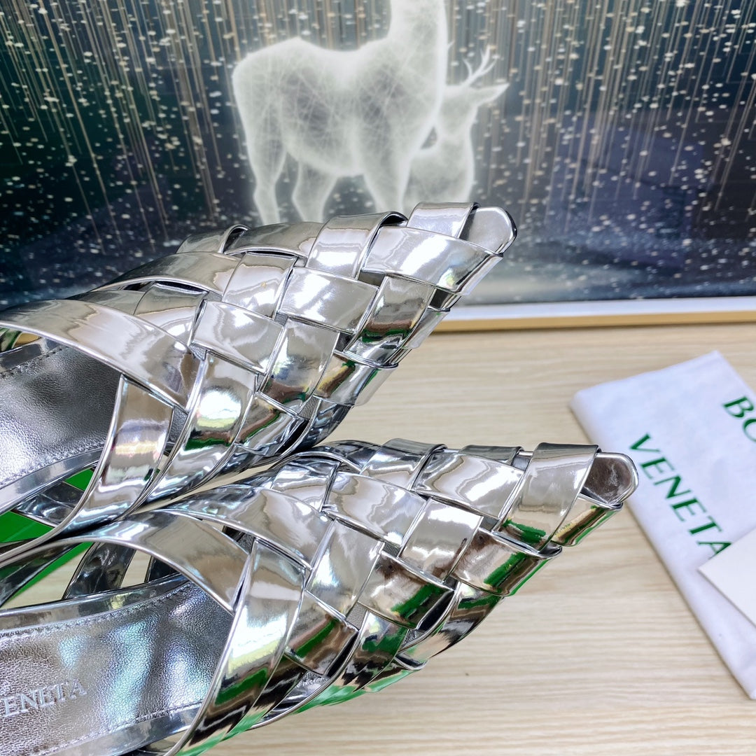 ALFIE LEATHER HIGH MULES IN SILVER PATENT CALFSKIN WITH WOVEN DESIGN