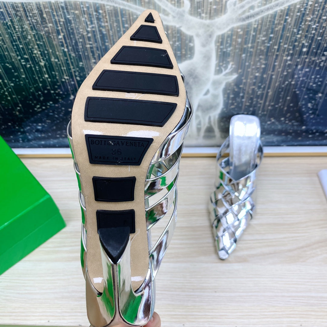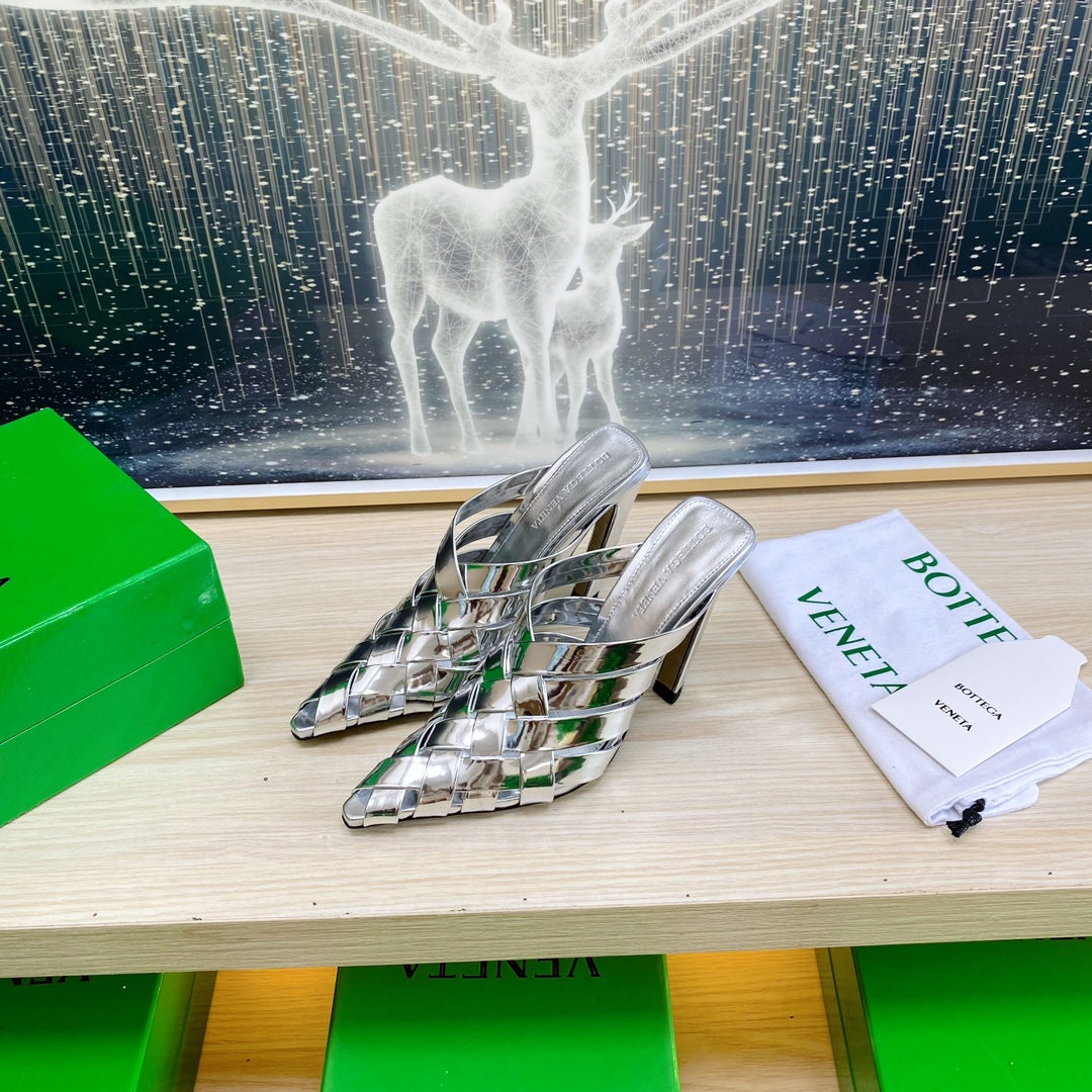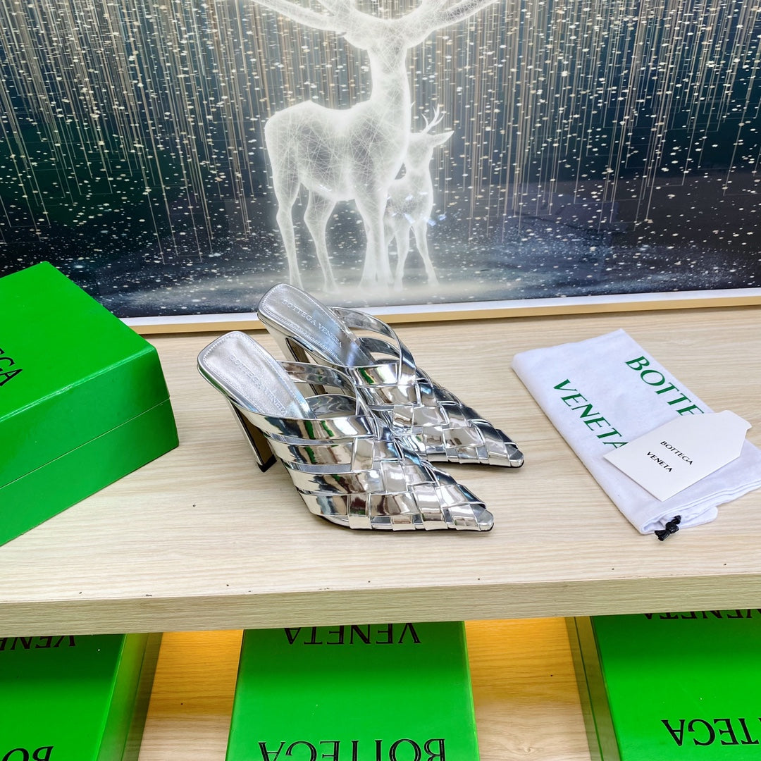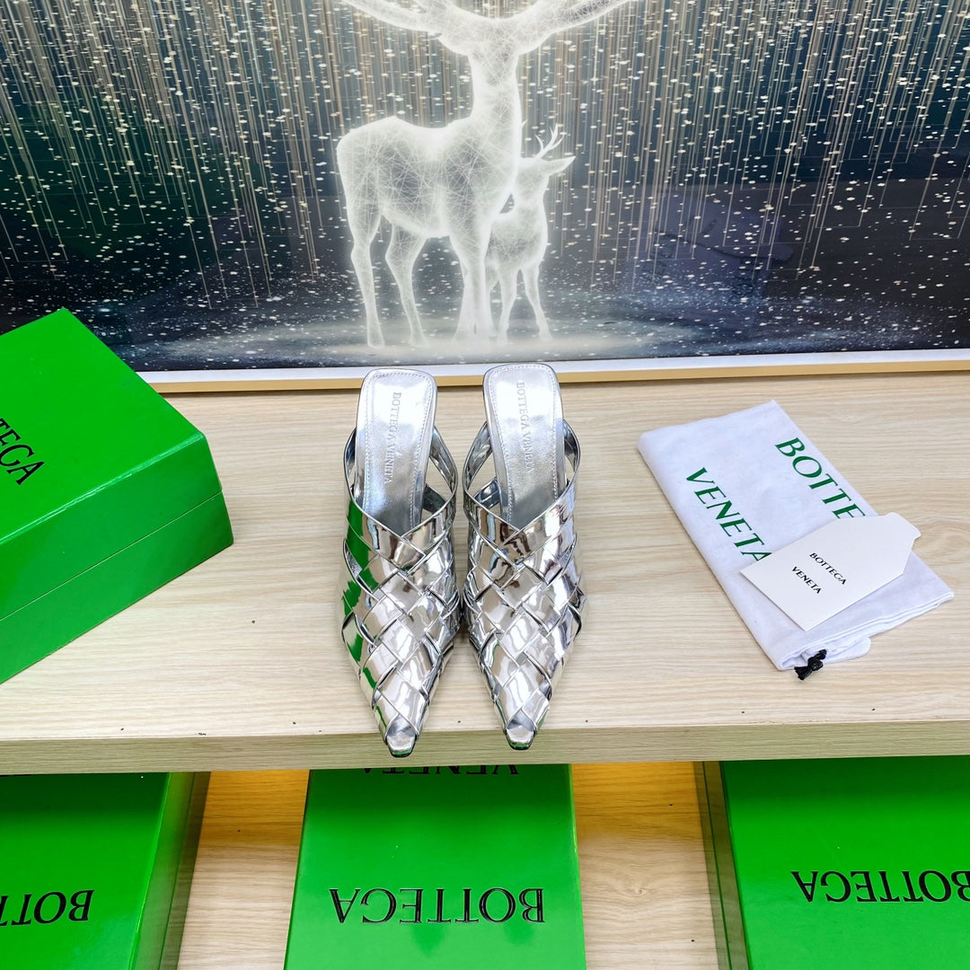 ALFIE LEATHER HIGH MULES IN SILVER PATENT CALFSKIN WITH WOVEN DESIGN