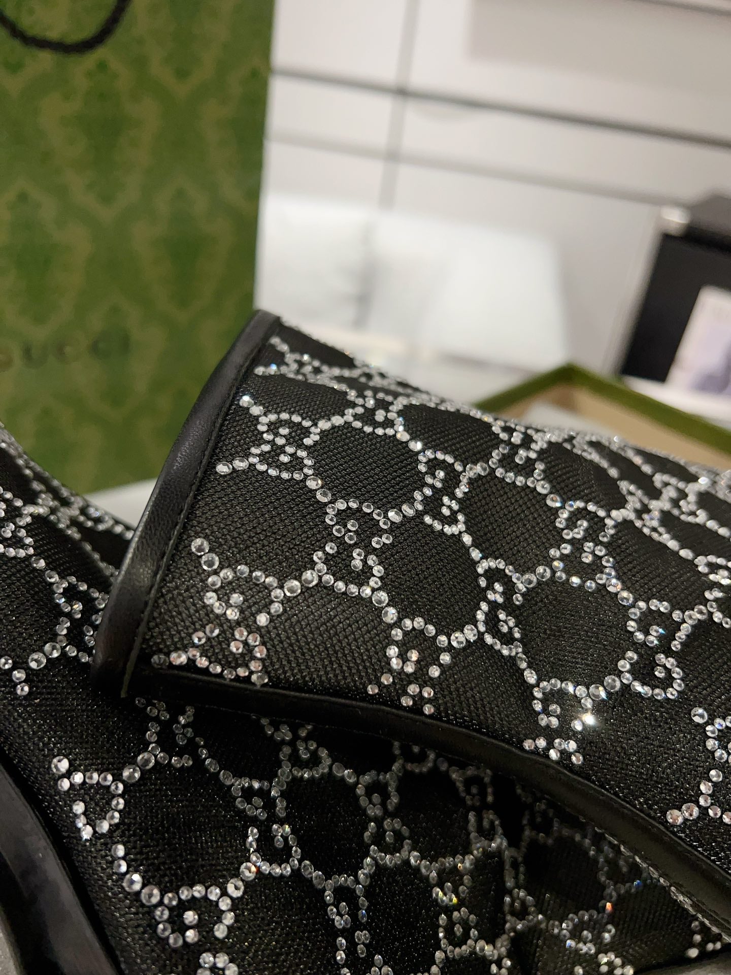 ANKLE BOOTS IN BLACK MESH AND SHEEPSKIN WITH GG CRYSTALS