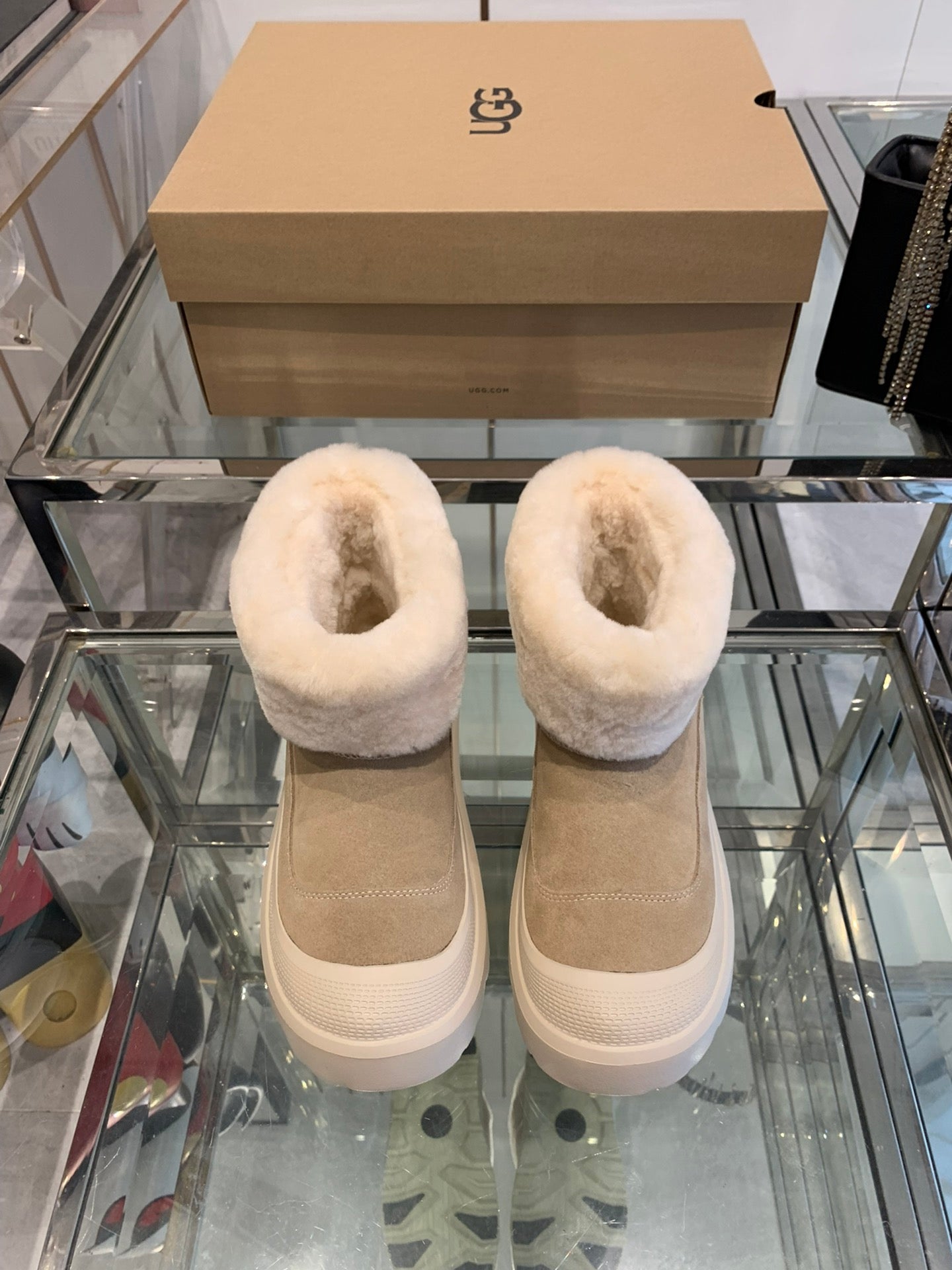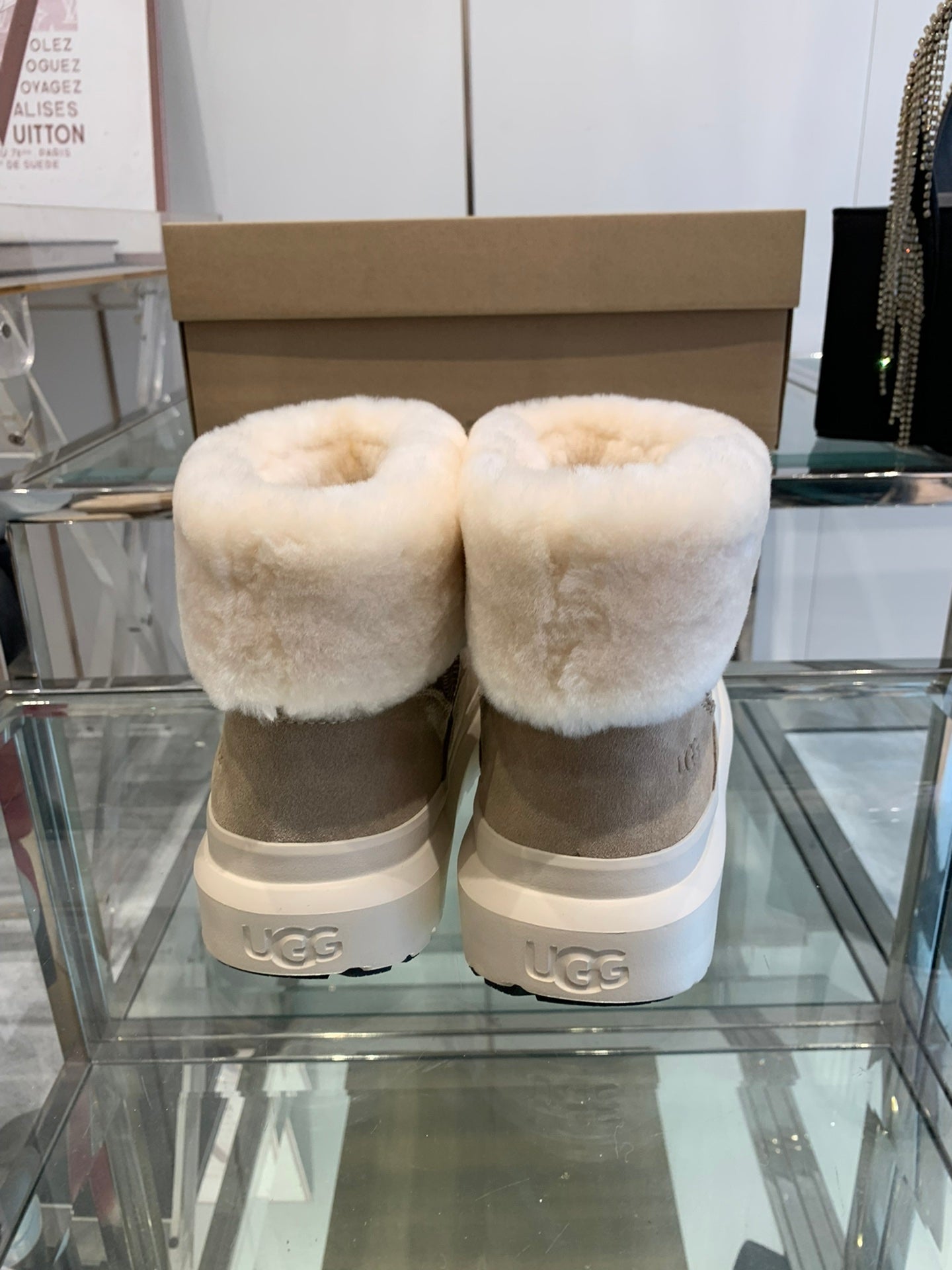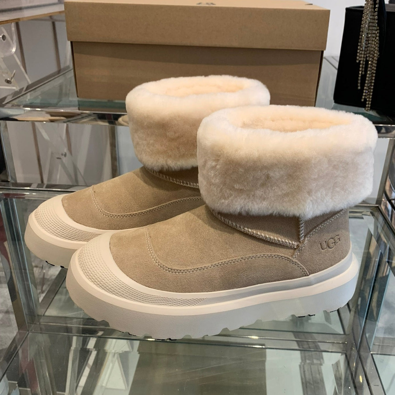 ANKLE BOOTS IN DESERT BROWN SUEDE AND WHITE CALFSKIN