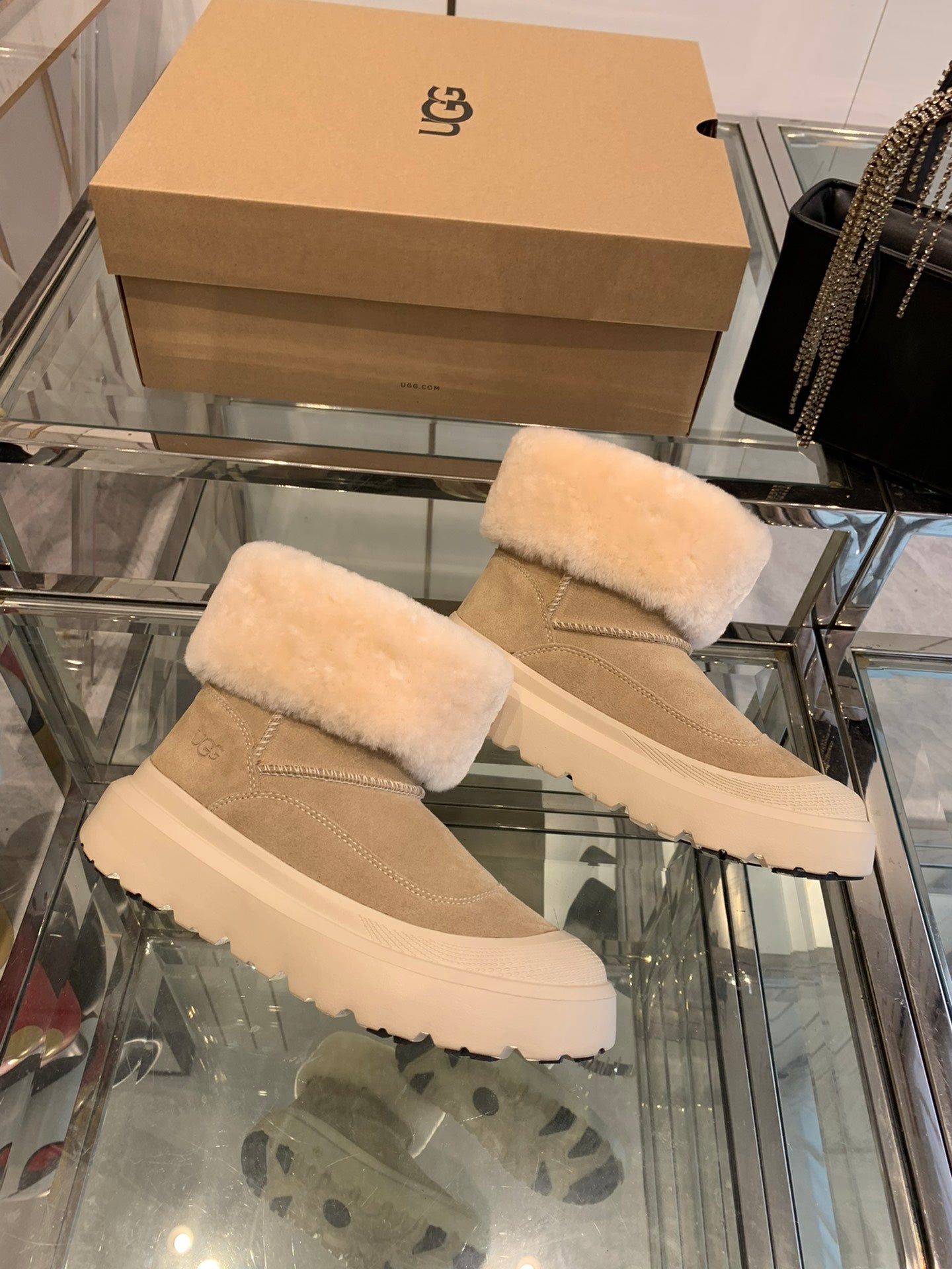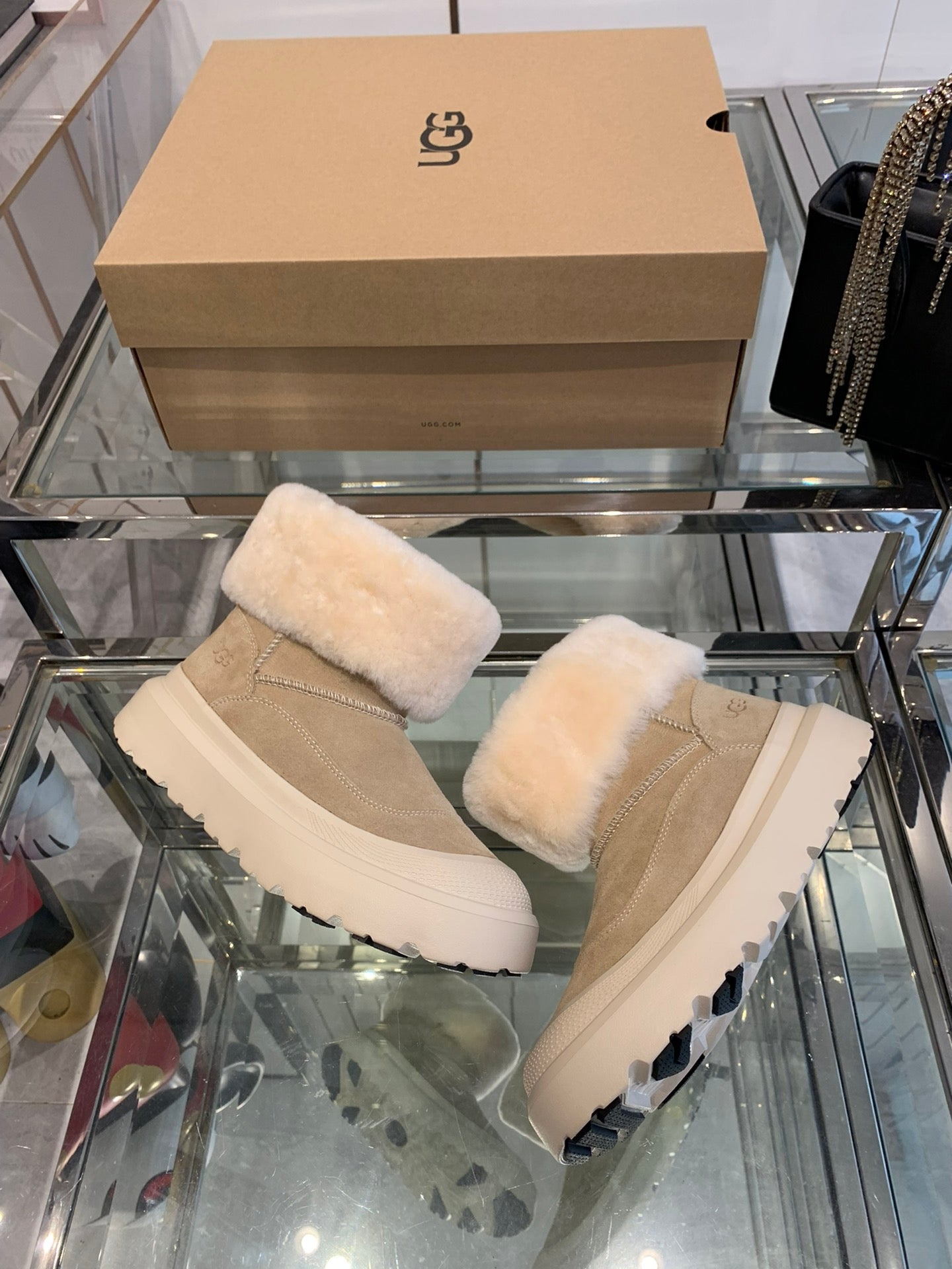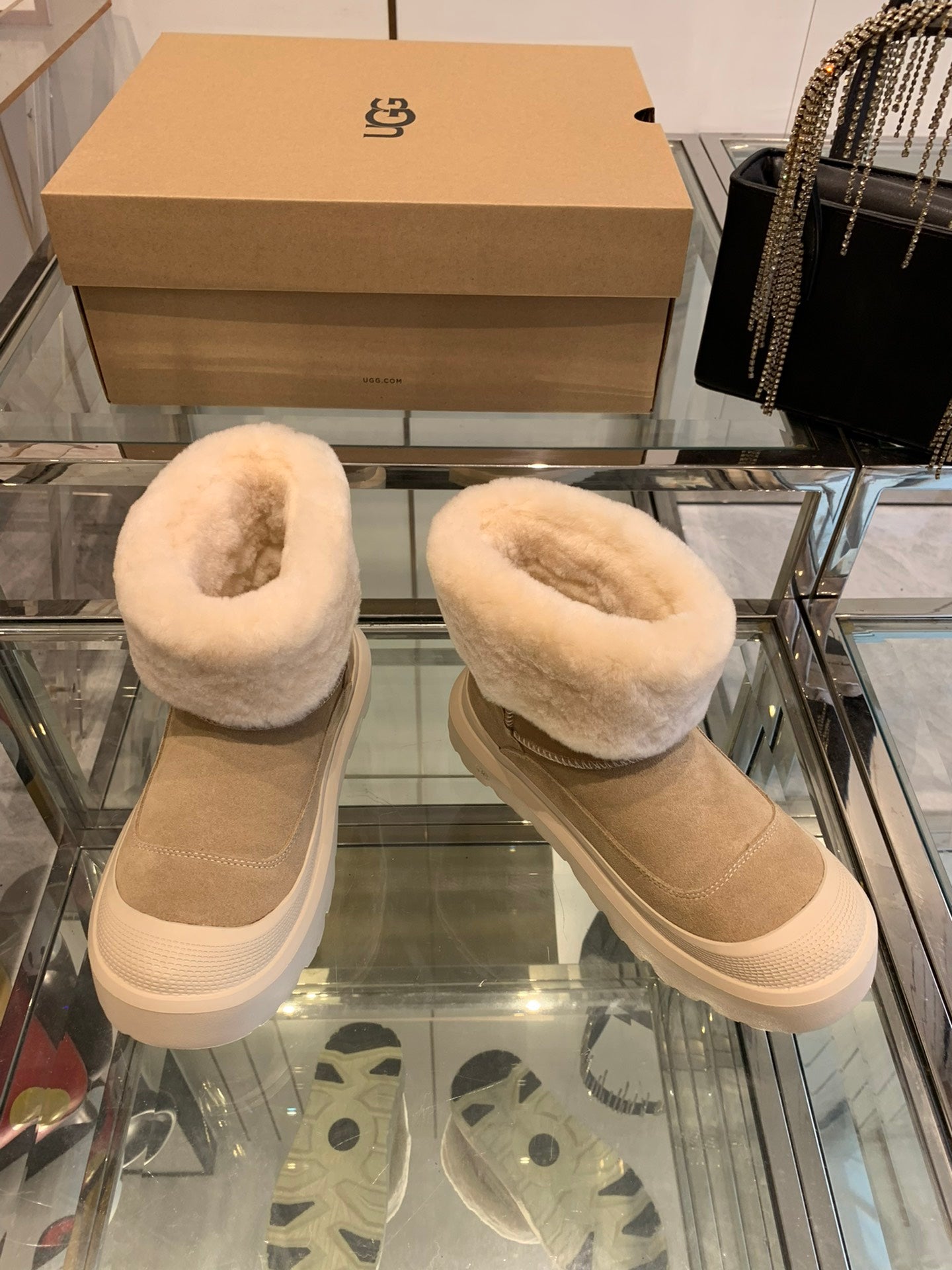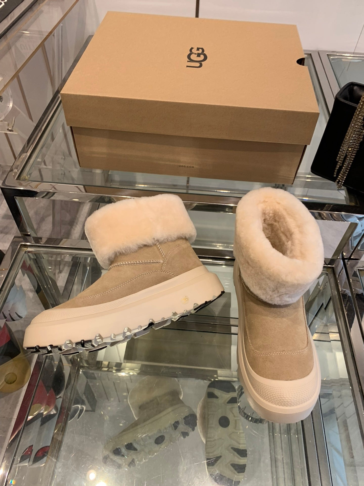 ANKLE BOOTS IN DESERT BROWN SUEDE AND WHITE CALFSKIN