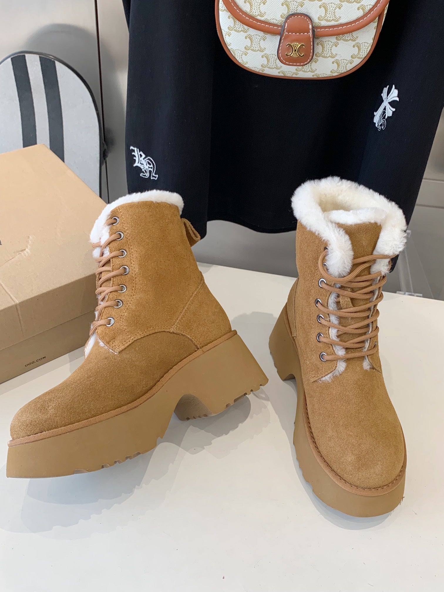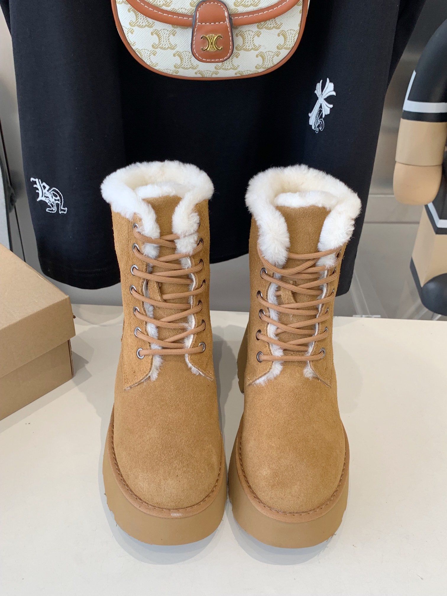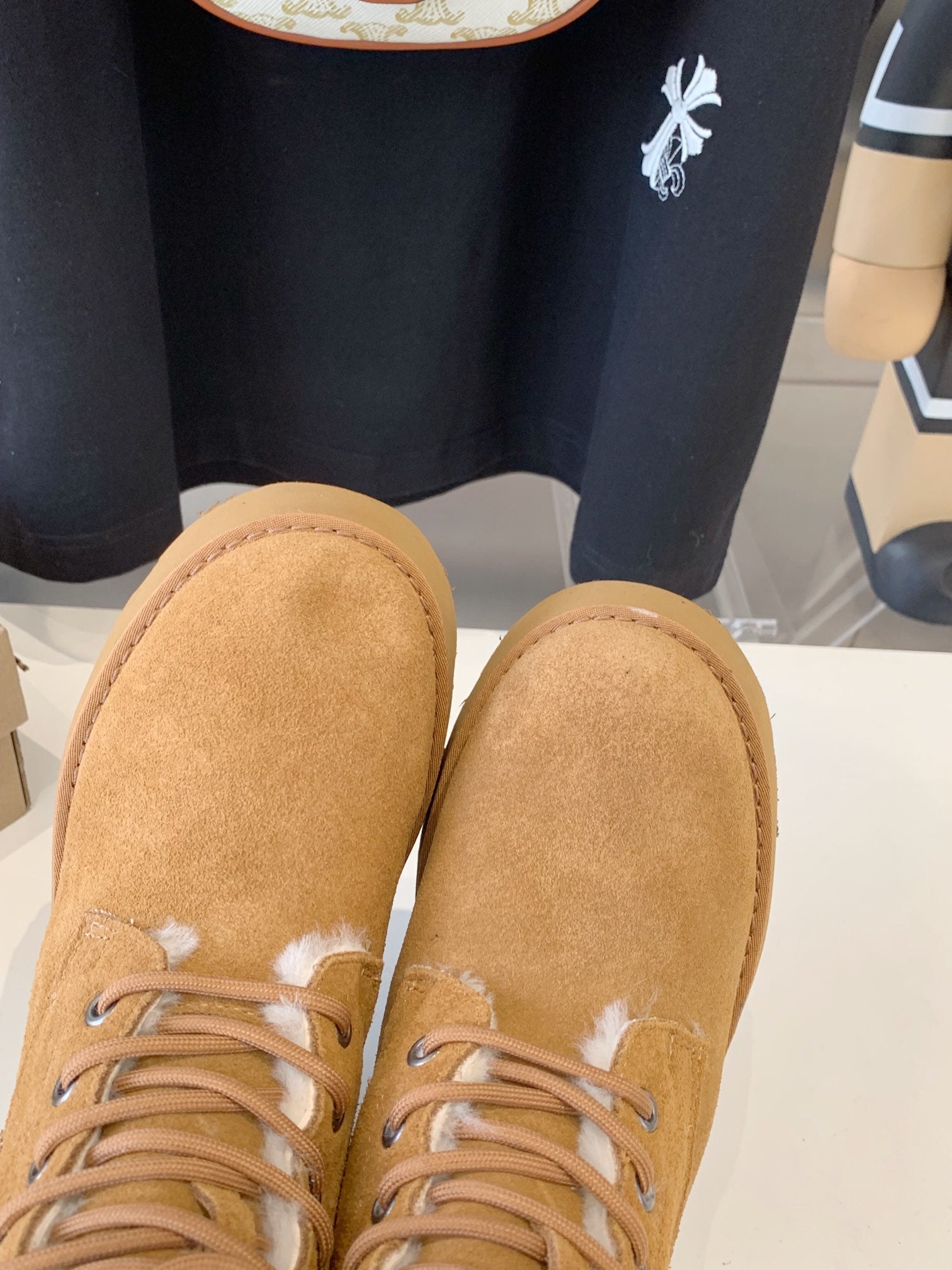 ANKLE BOOTS IN PEANUT BROWN SUEDE AND LAMB WOOL