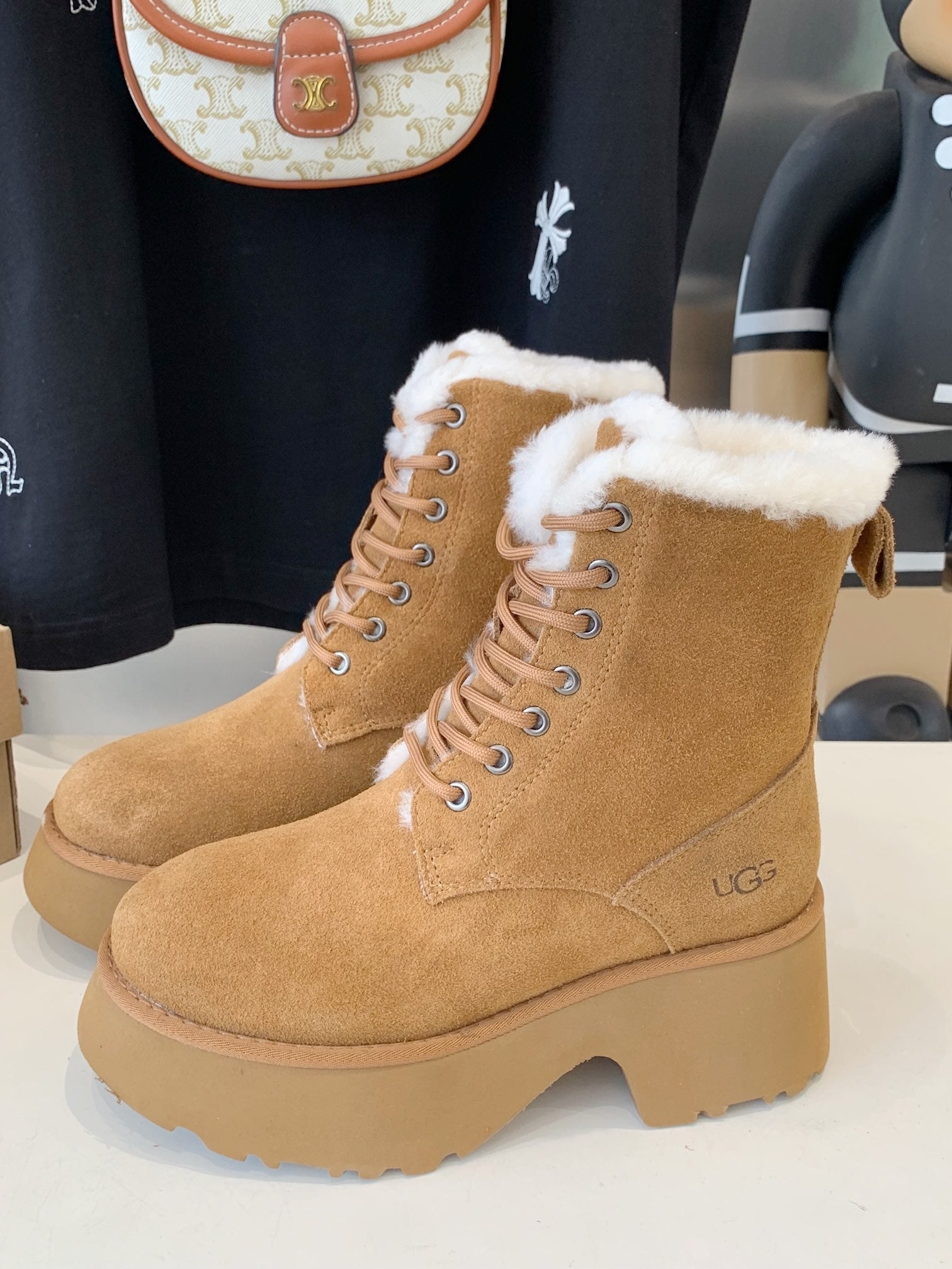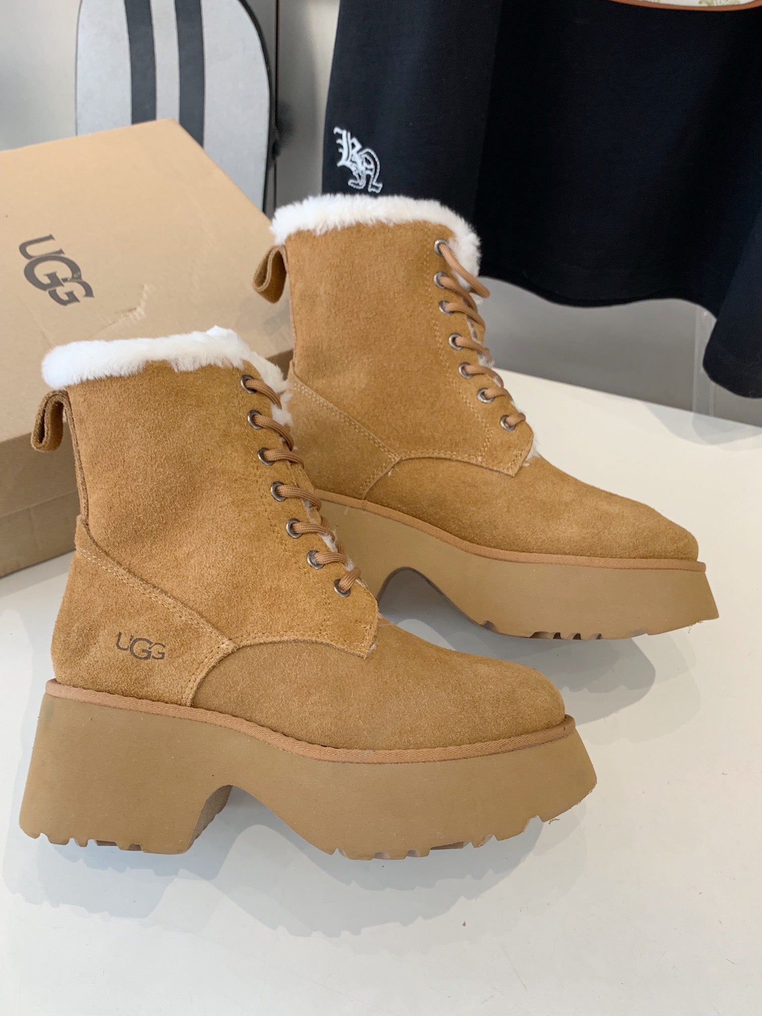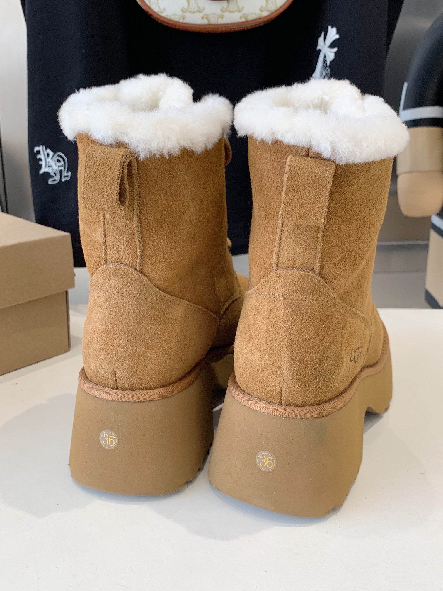 ANKLE BOOTS IN PEANUT BROWN SUEDE AND LAMB WOOL