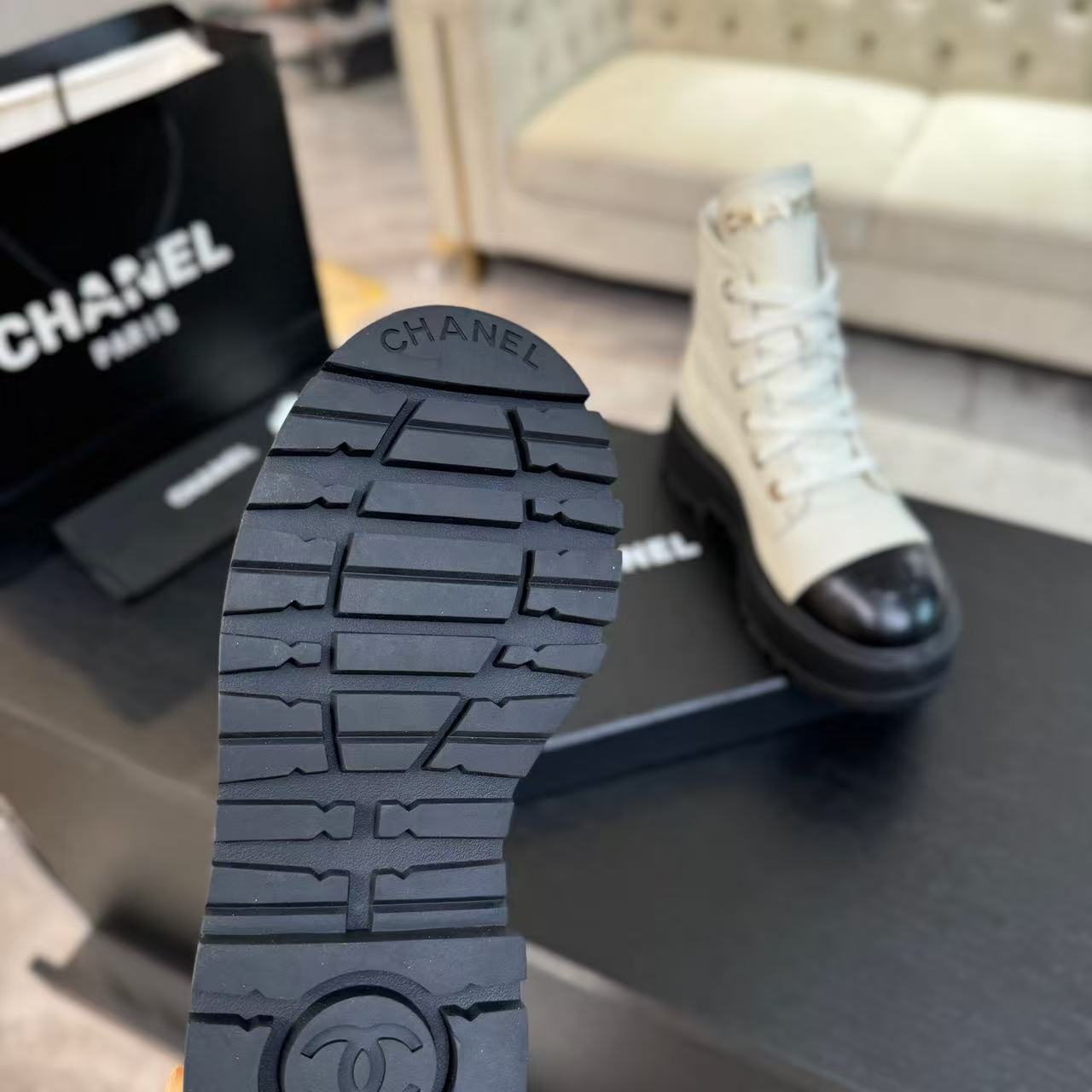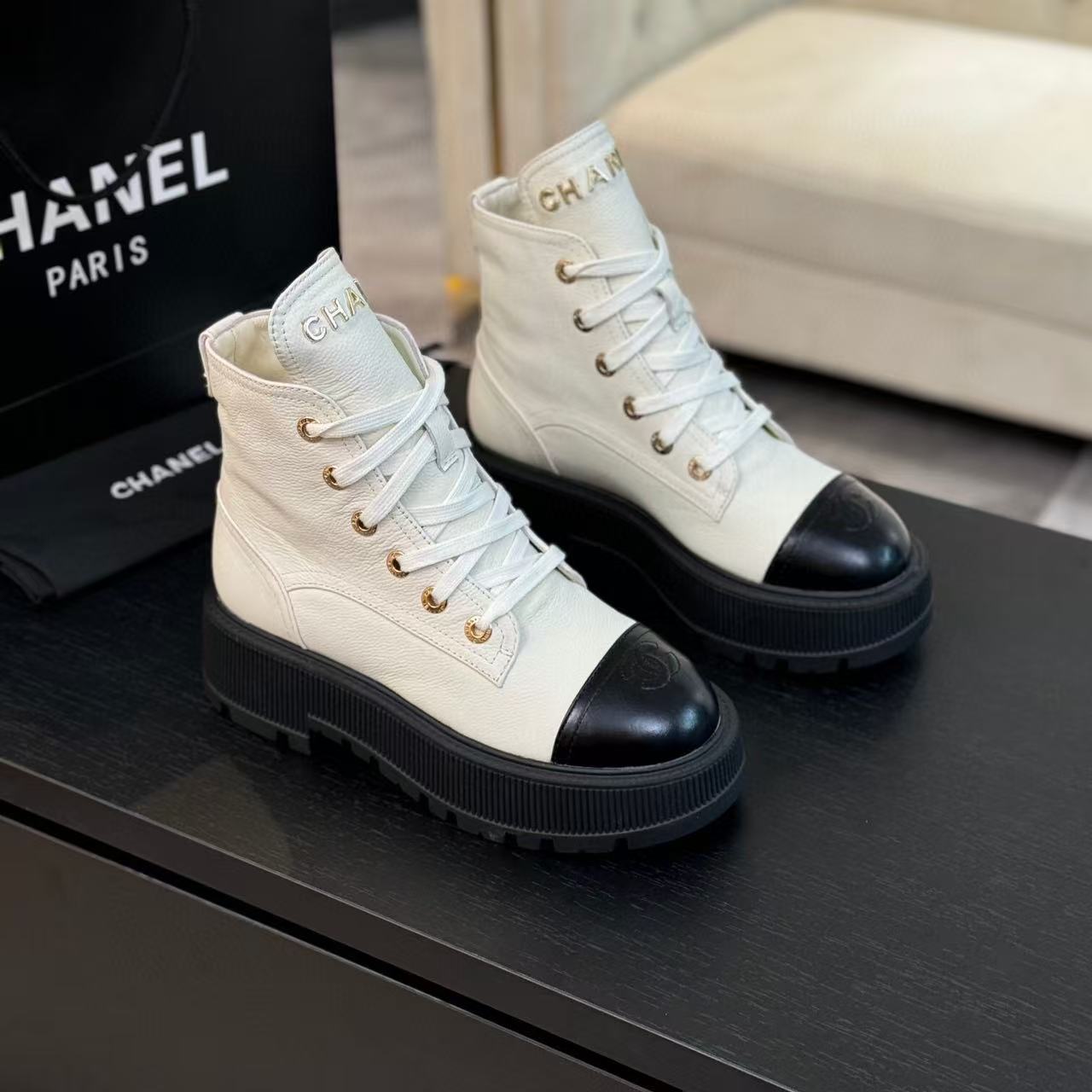 ANKLE BOOTS IN WHITE MIX BLACK CALFSKIN 936574