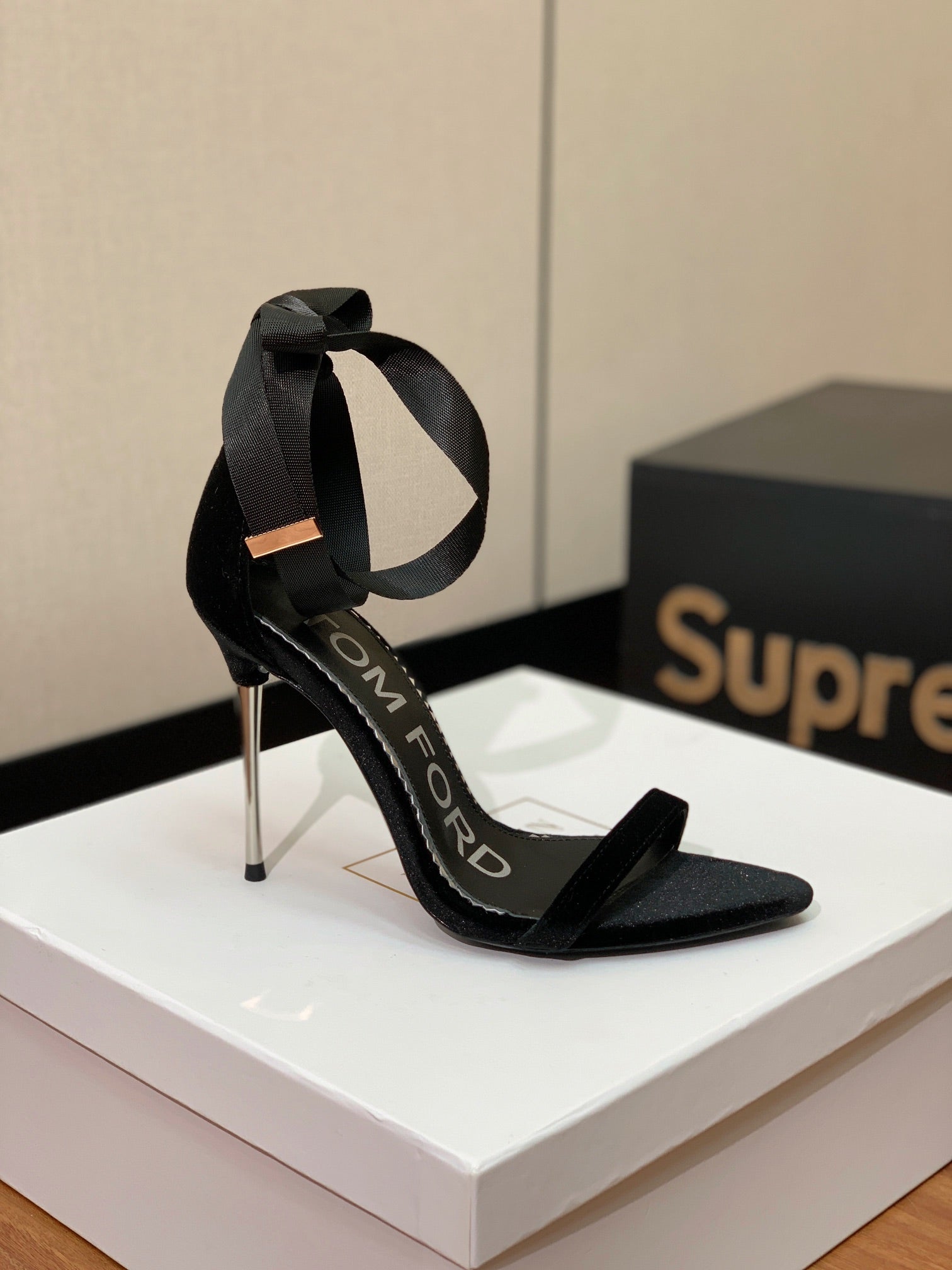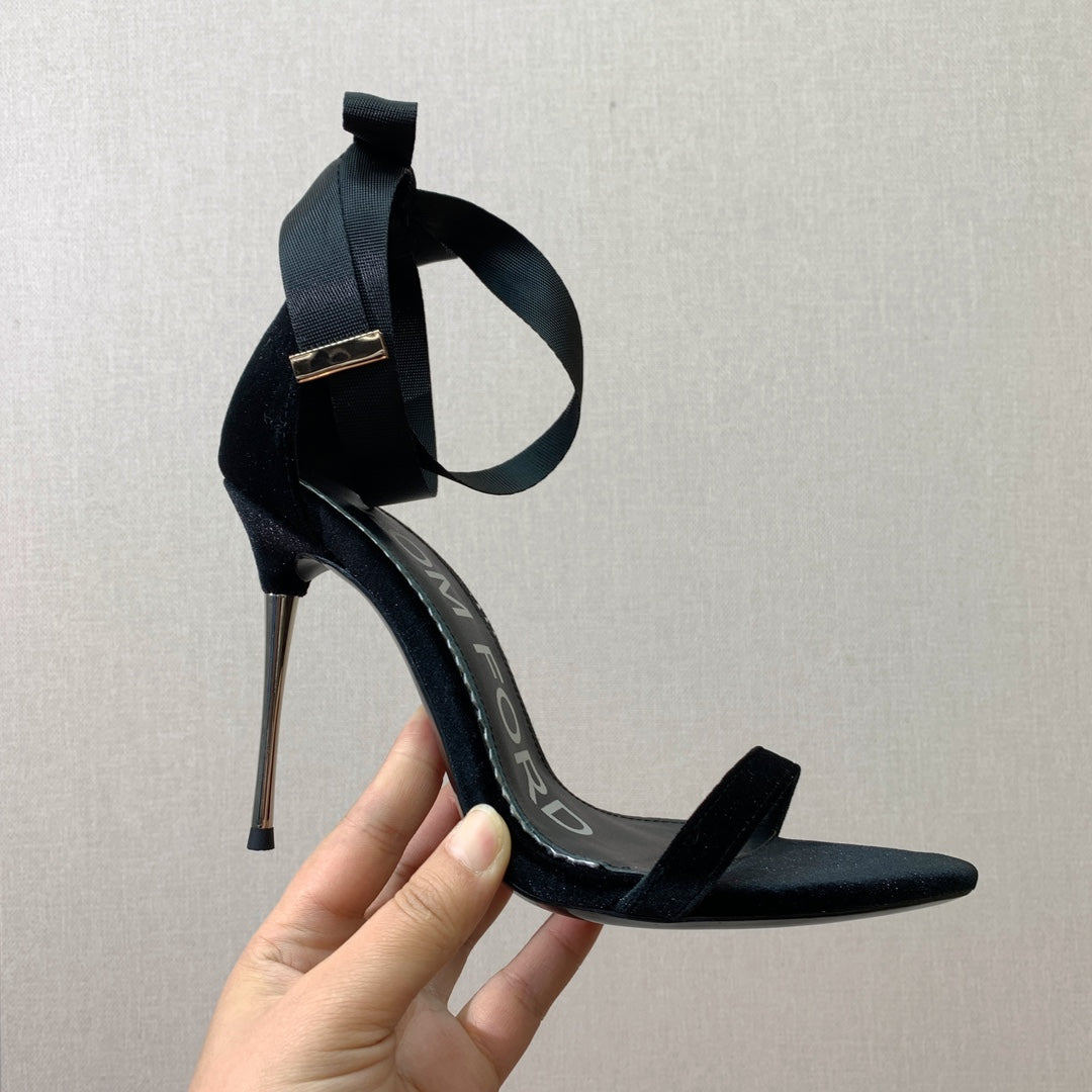 ANKLE SANDAL 10 CM IN BLACK VELVET AND SILK