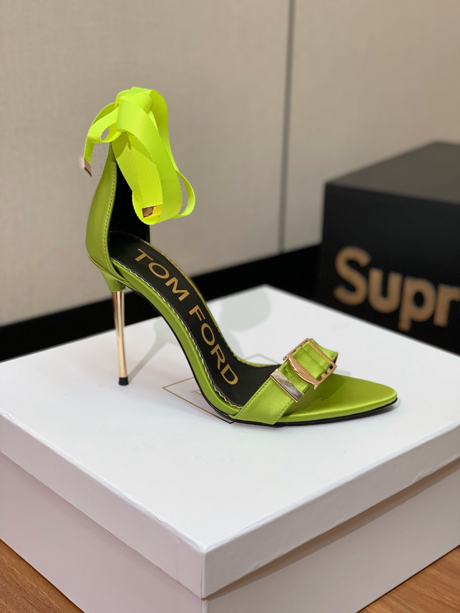 ANKLE SANDAL 10 CM IN PEAR GREEN SILK AND SHEEPSKIN