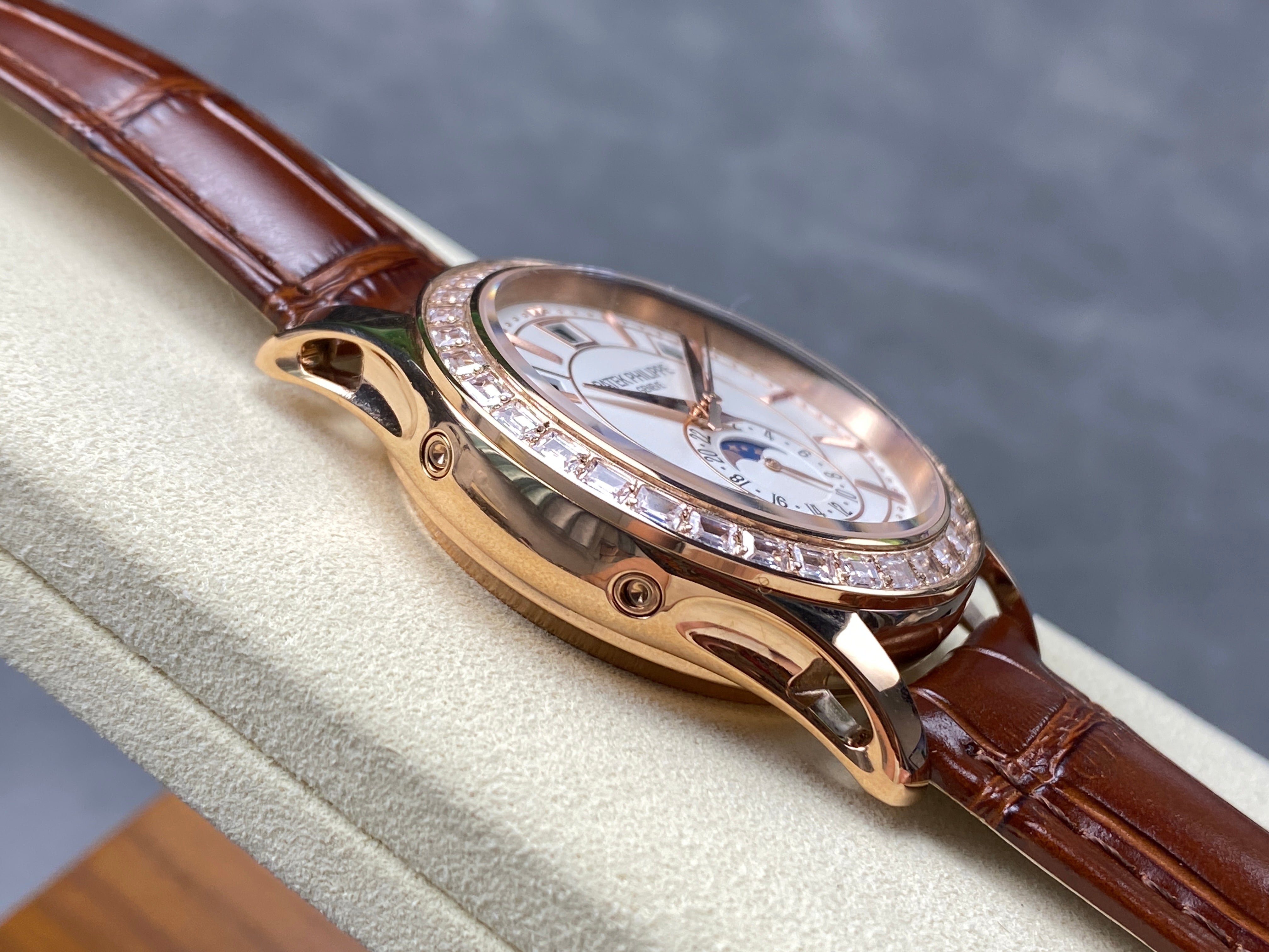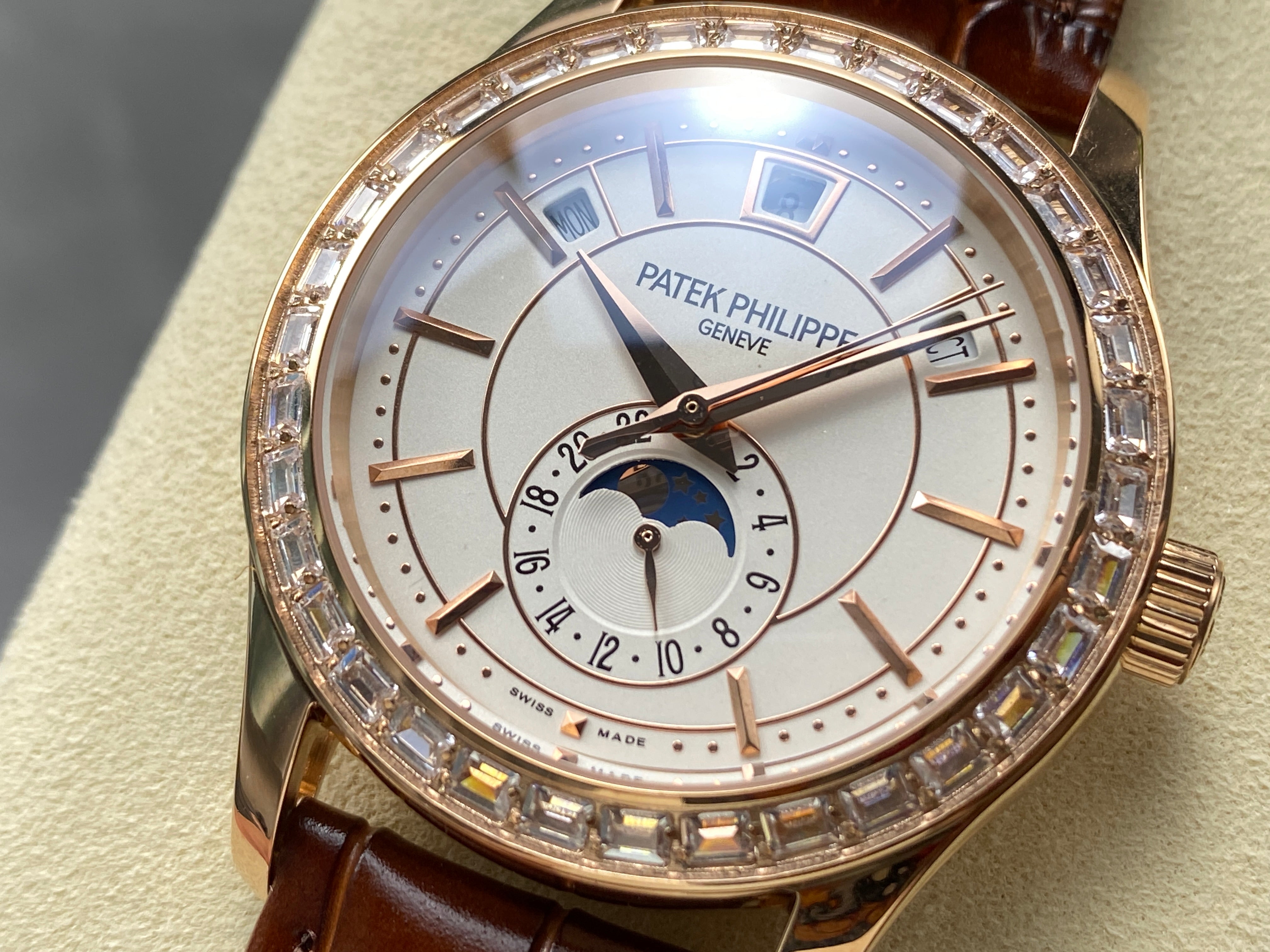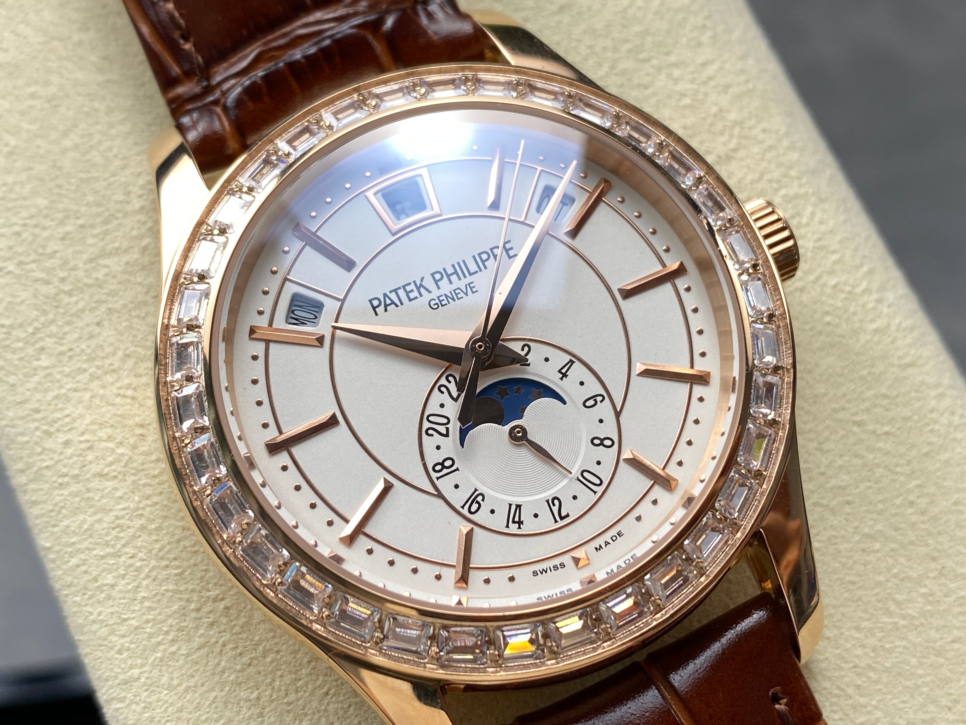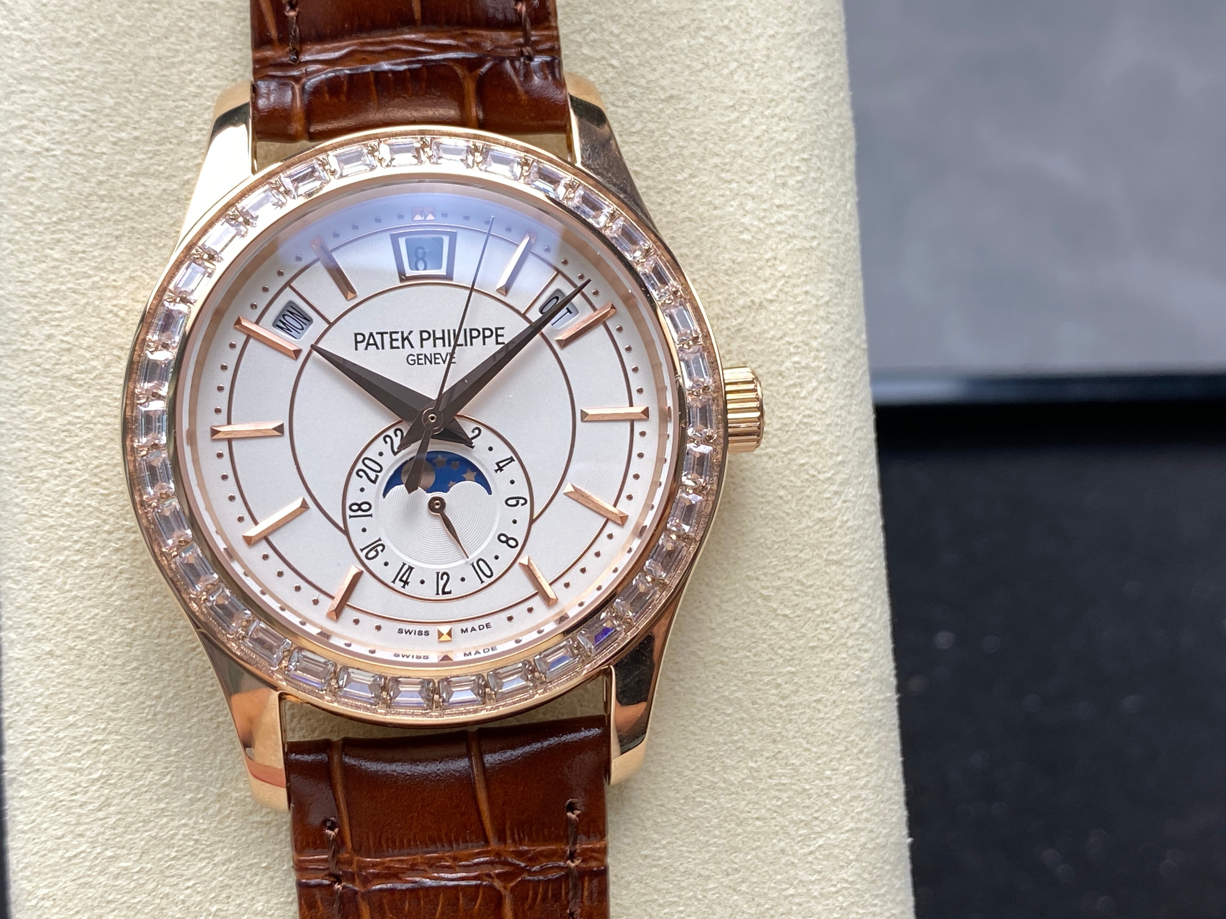 ANNUAL CALENDAR ROSE GOLD ATTACHED DIAMOND BEZEL WHITE DIAL