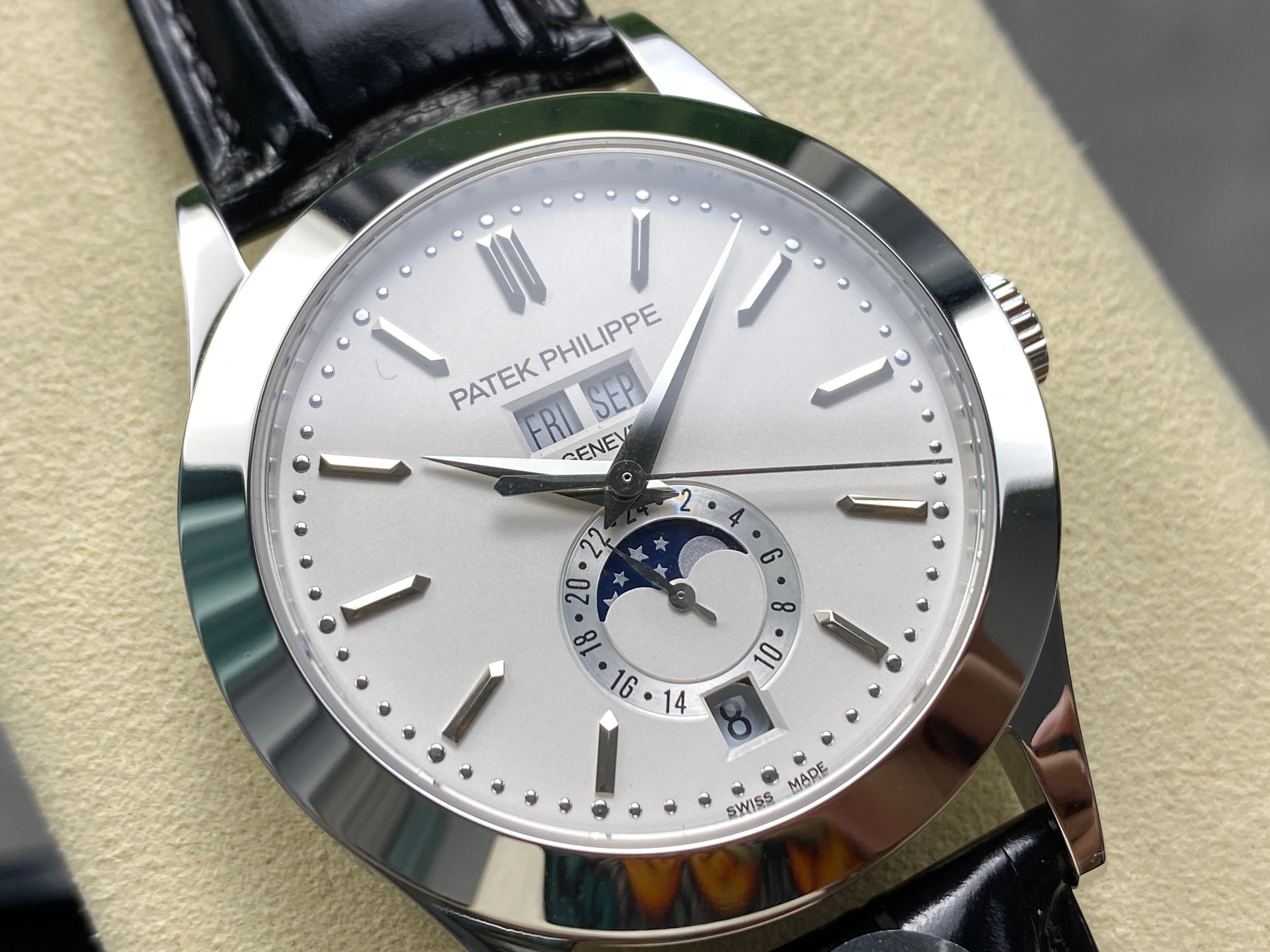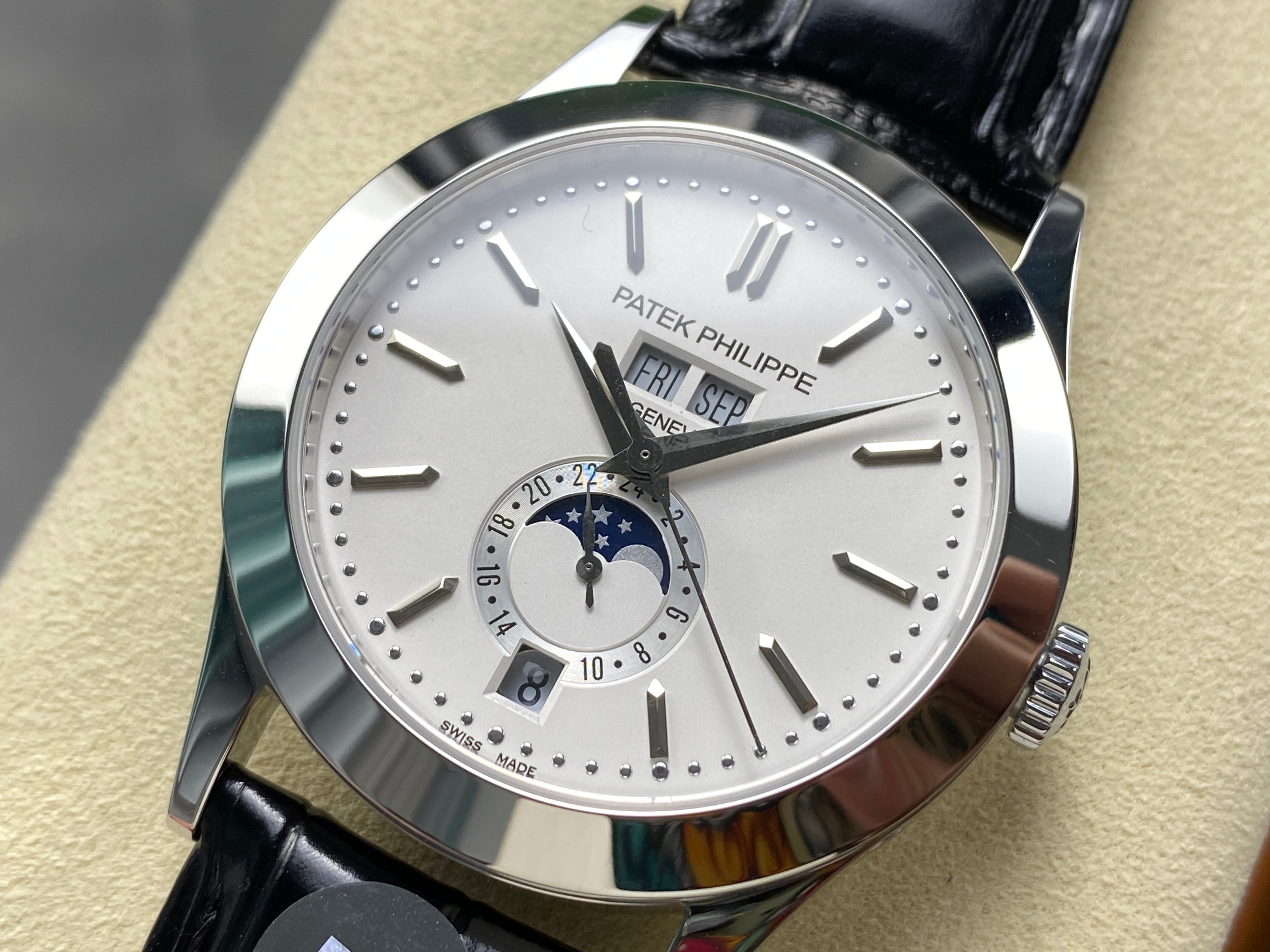 ANNUAL CALENDAR SELF-WINDING WHITE GOLD CASE BROWN BLACK STRAP