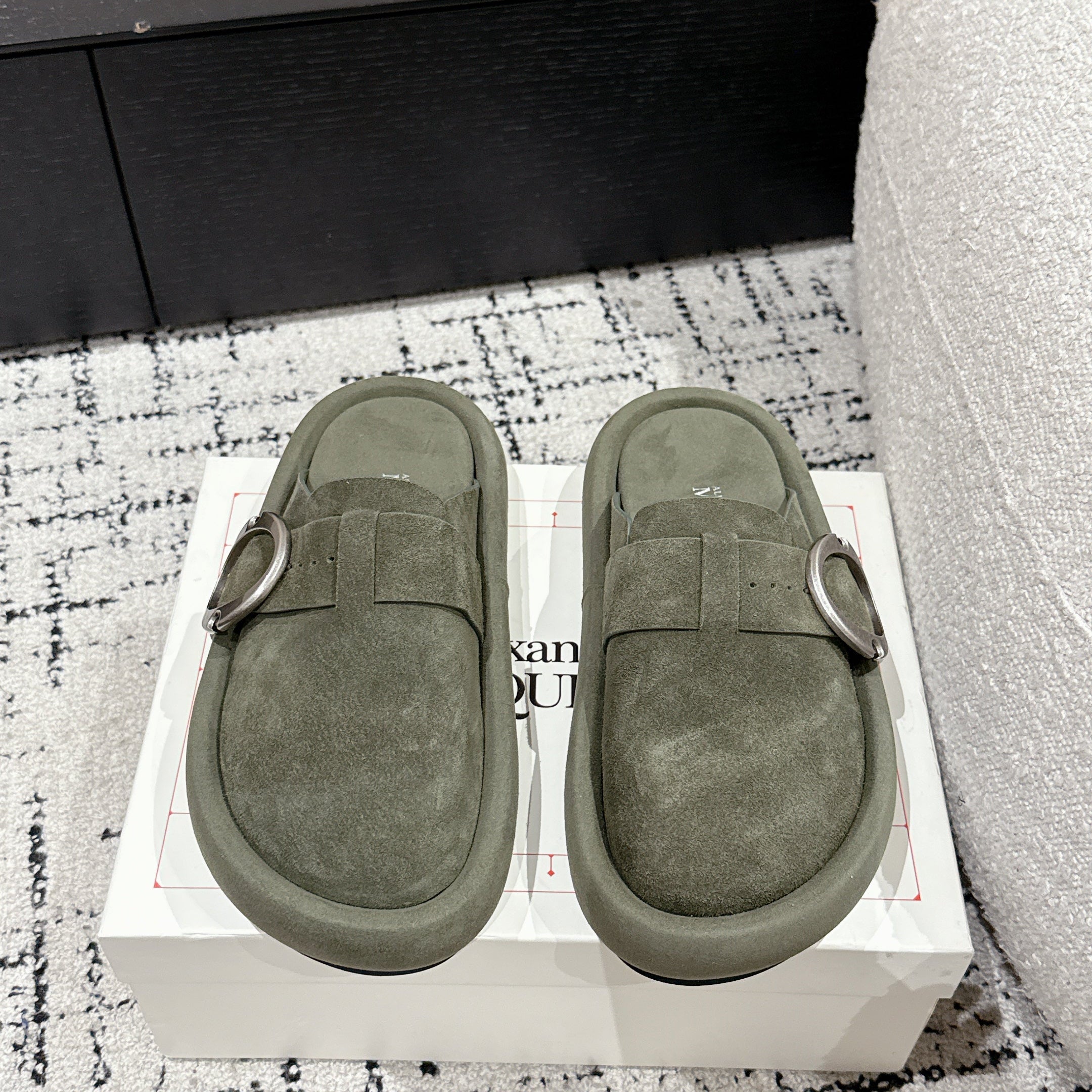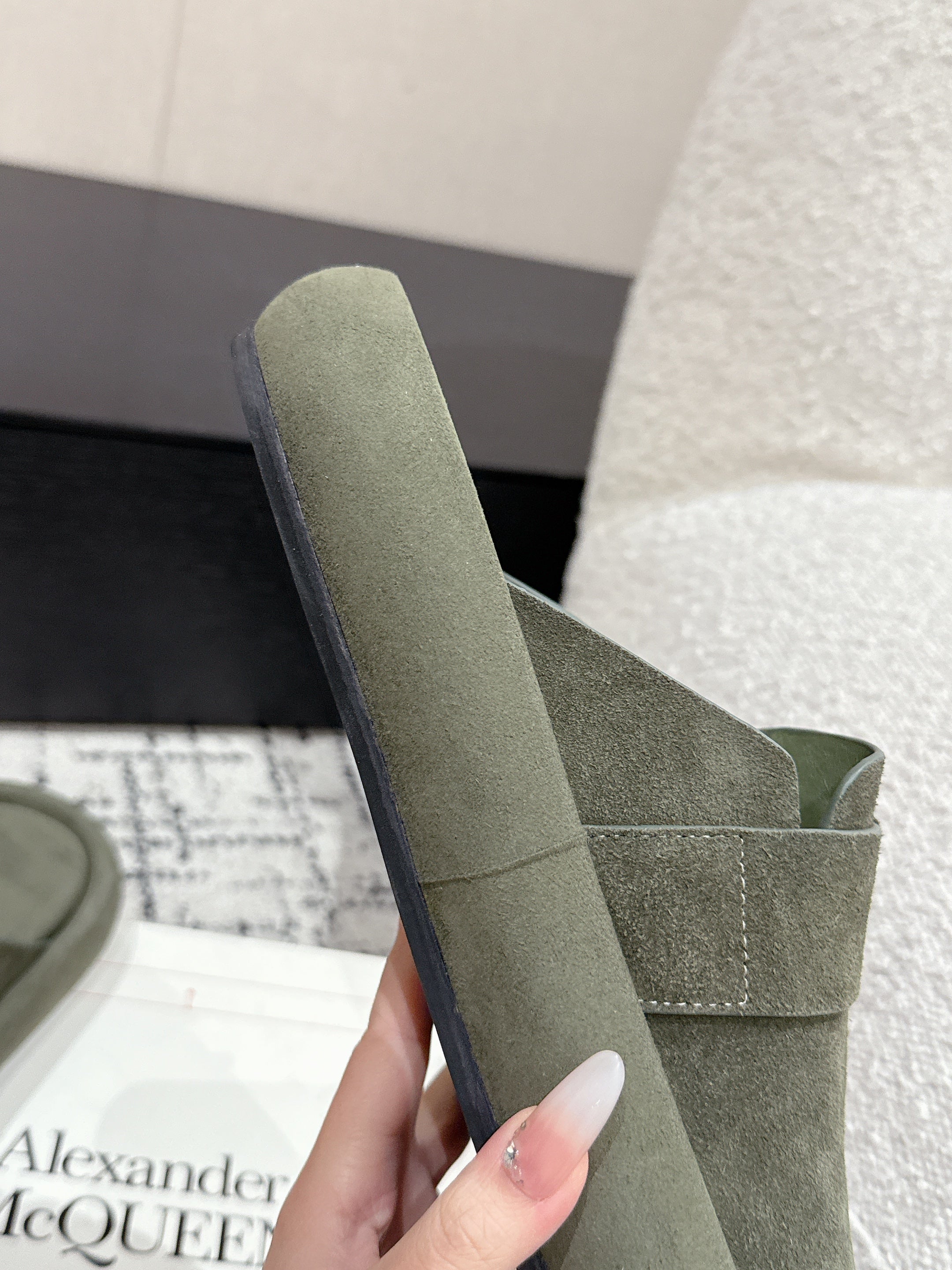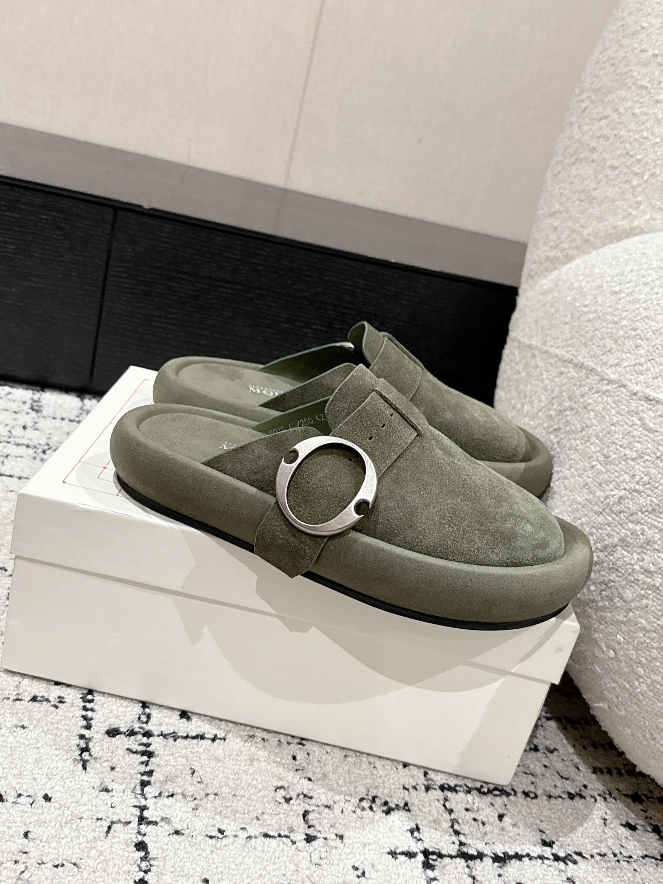 ARC CLOG MULES IN THYME GREEN SUEDE