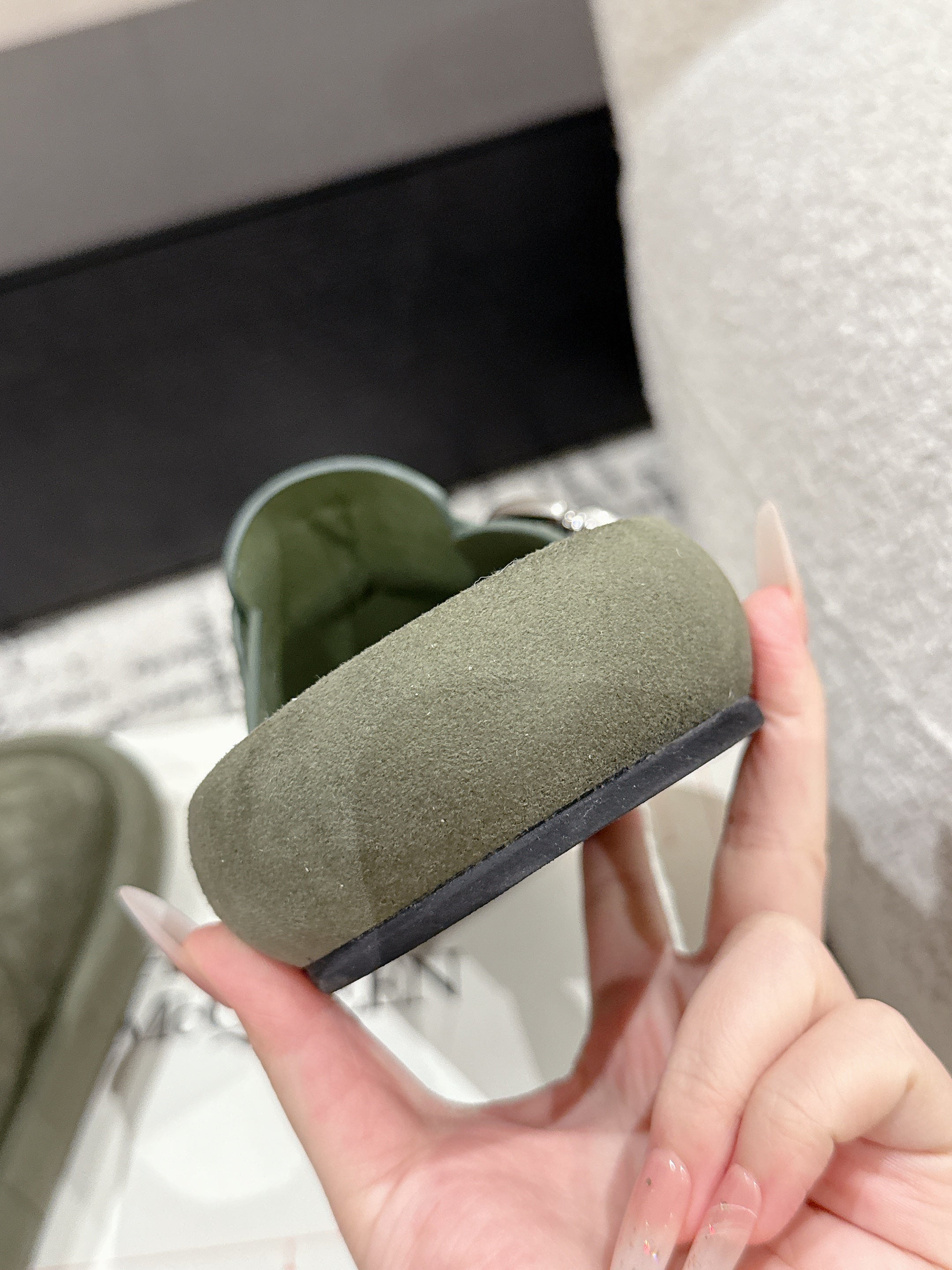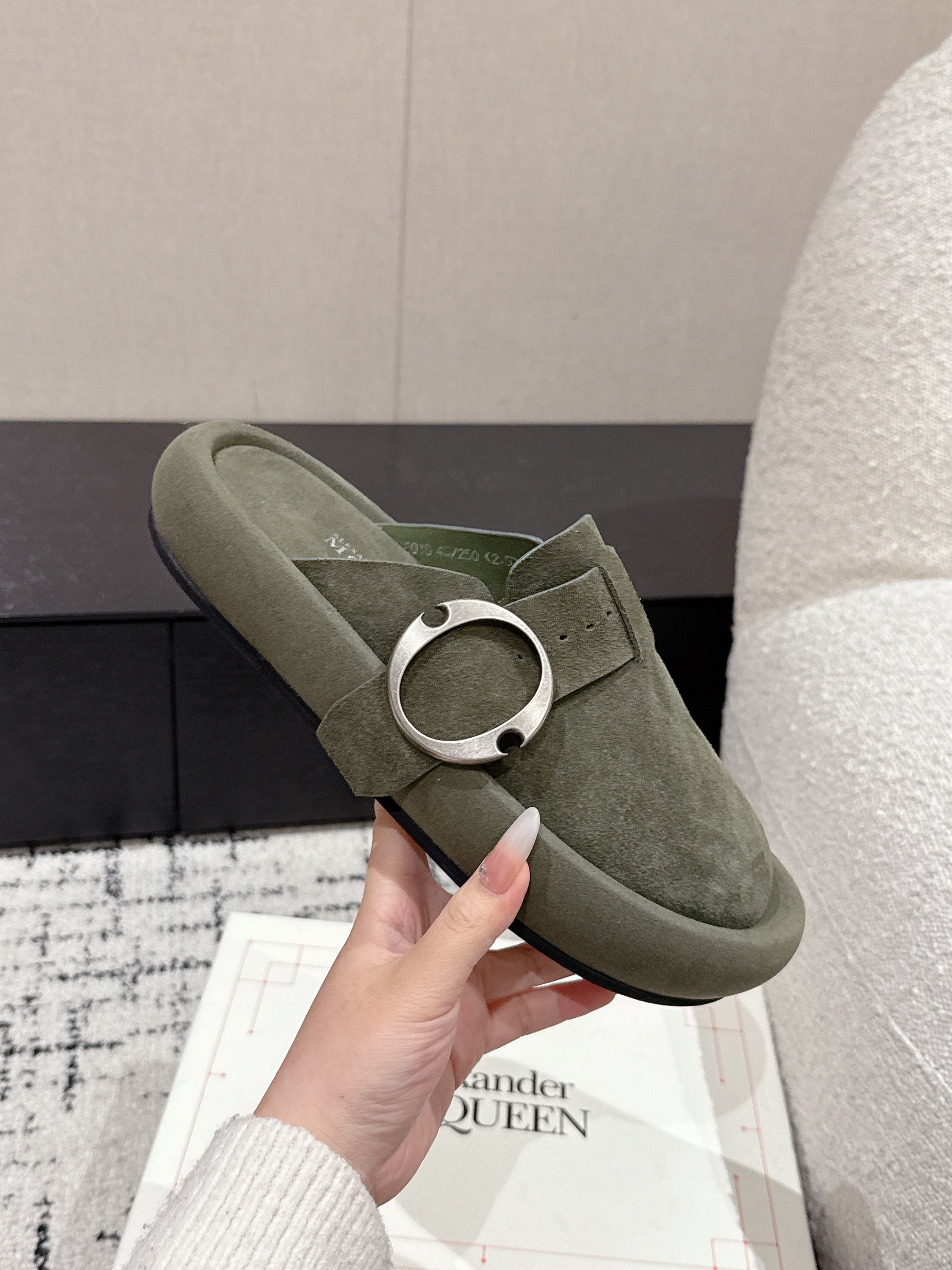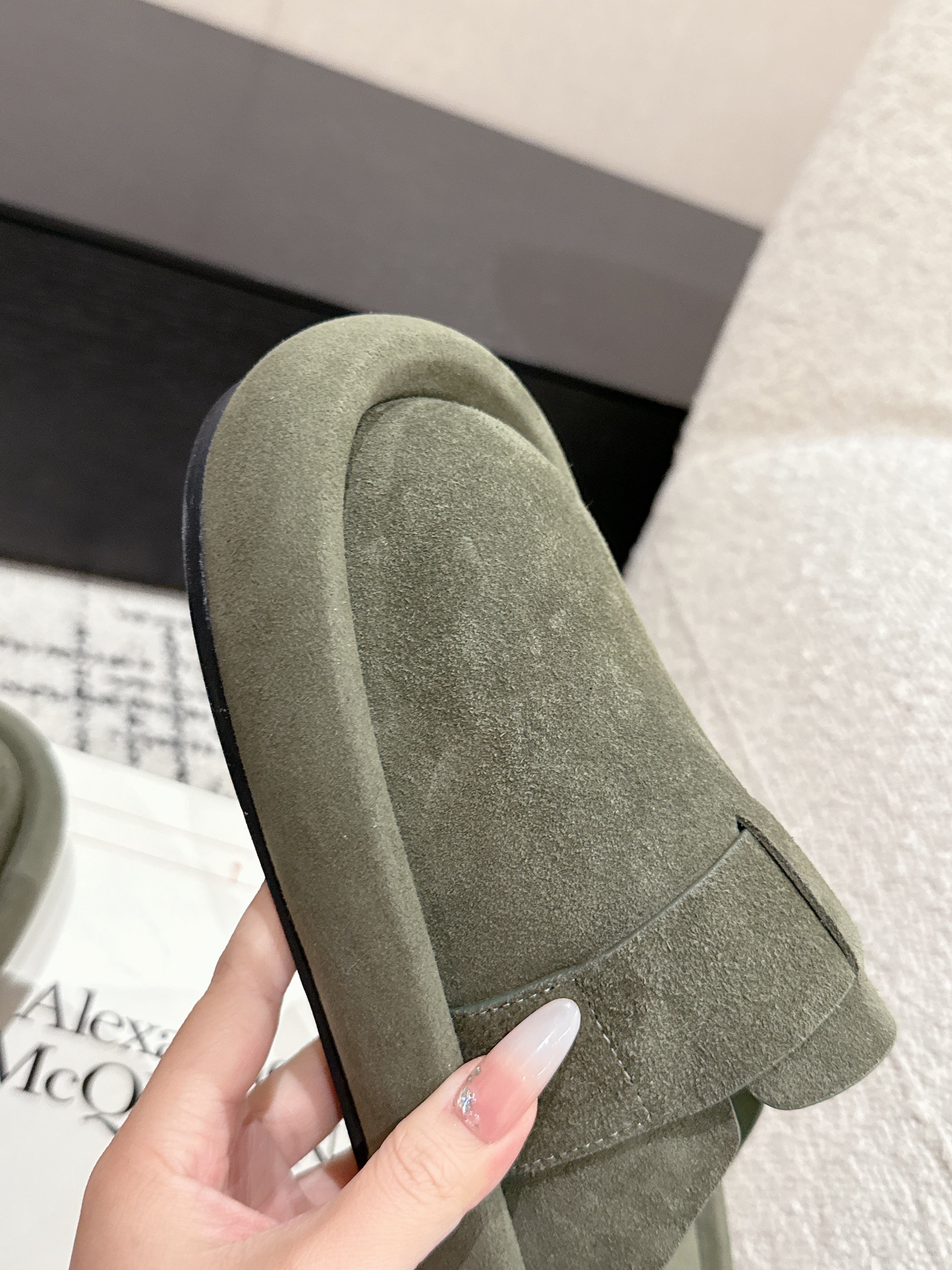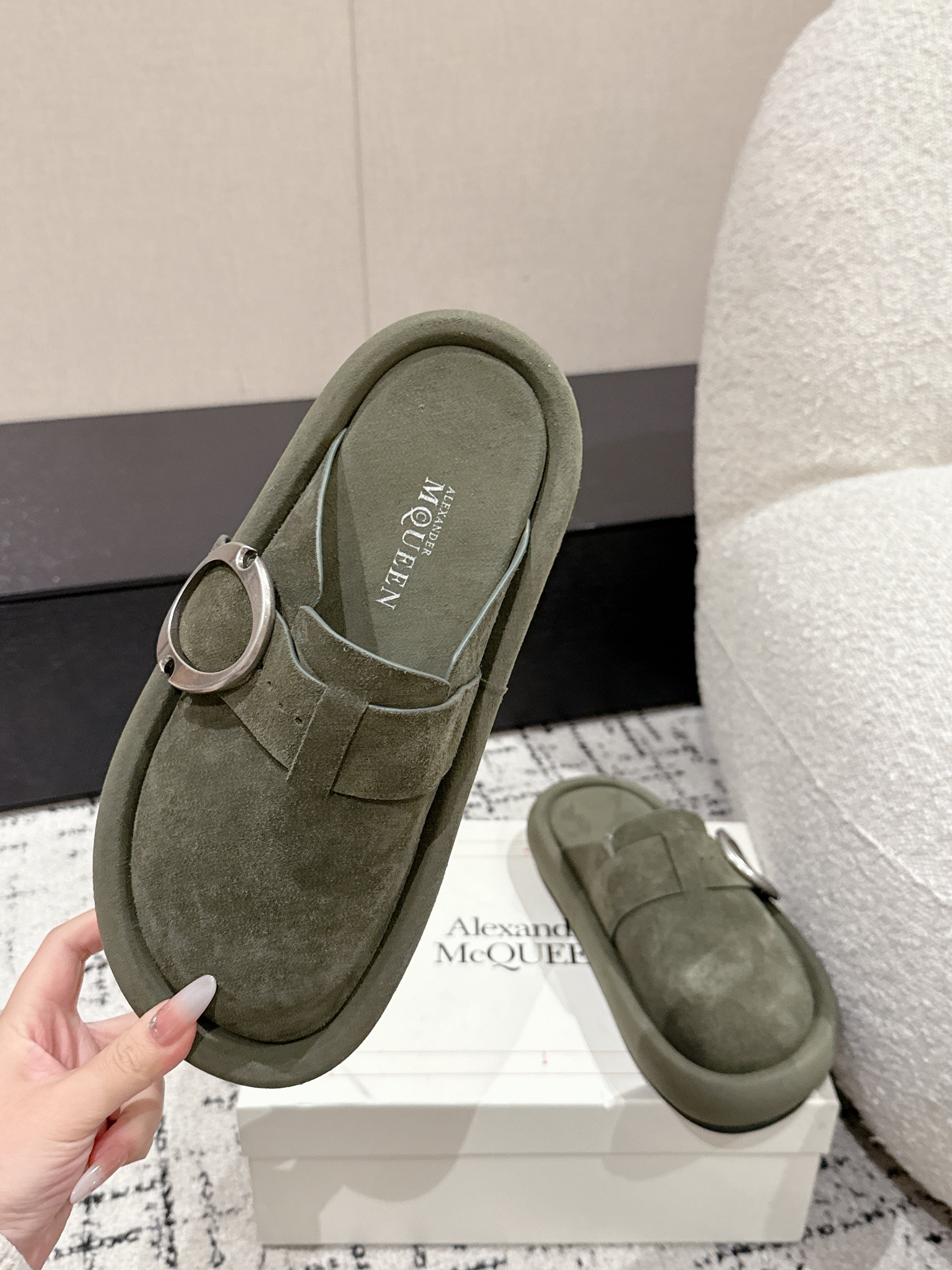 ARC CLOG MULES IN THYME GREEN SUEDE