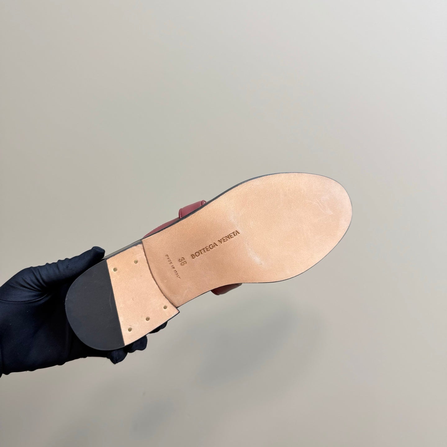 ASTAIRE MULE IN BERRY RED CALFSKIN WITH GOLD HARDWARE