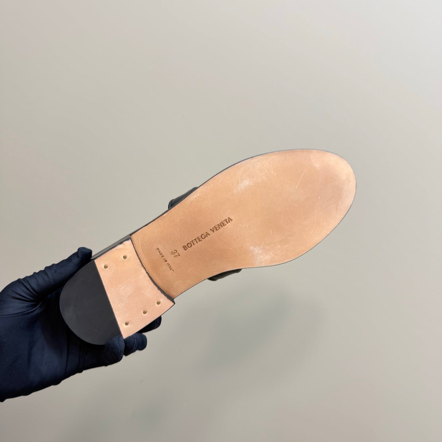 ASTAIRE MULE IN WHITE MIX BLACK CALFSKIN WITH GOLD HARDWARE