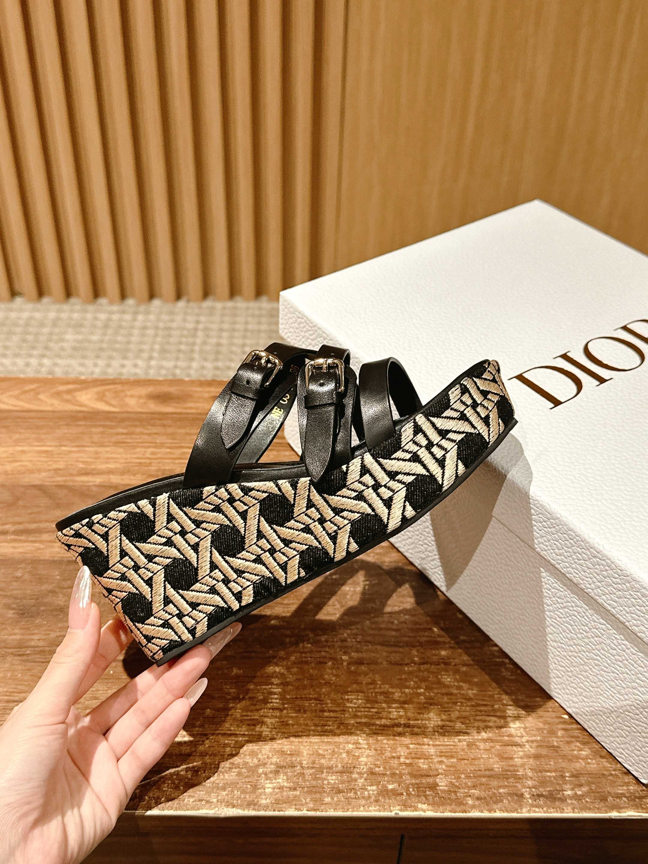 ATTITUDE WEDGE SLIDE 90MM IN BLACK ADJUSTABLE STRAPS CALFSKIN CANVAS SOLE