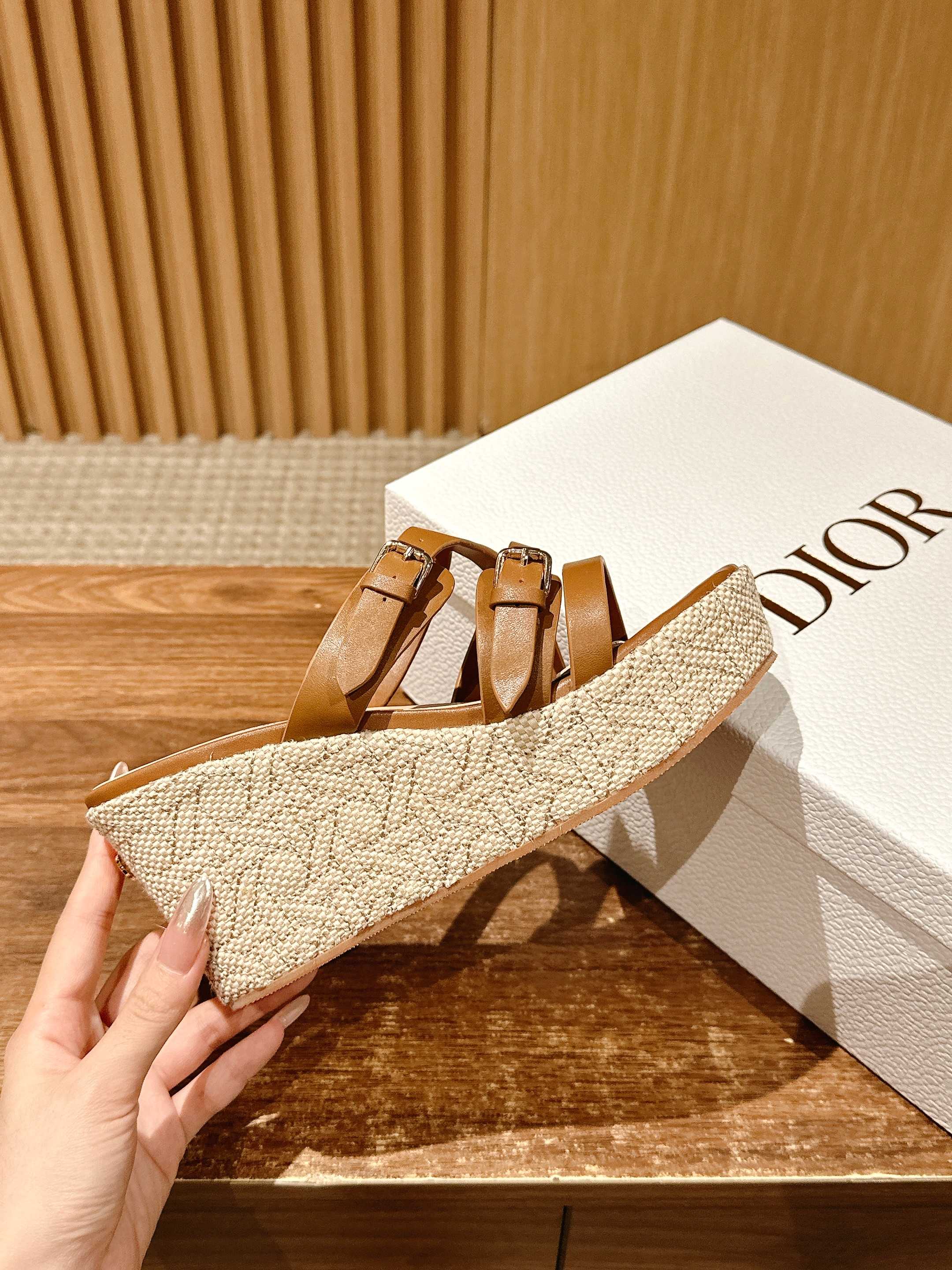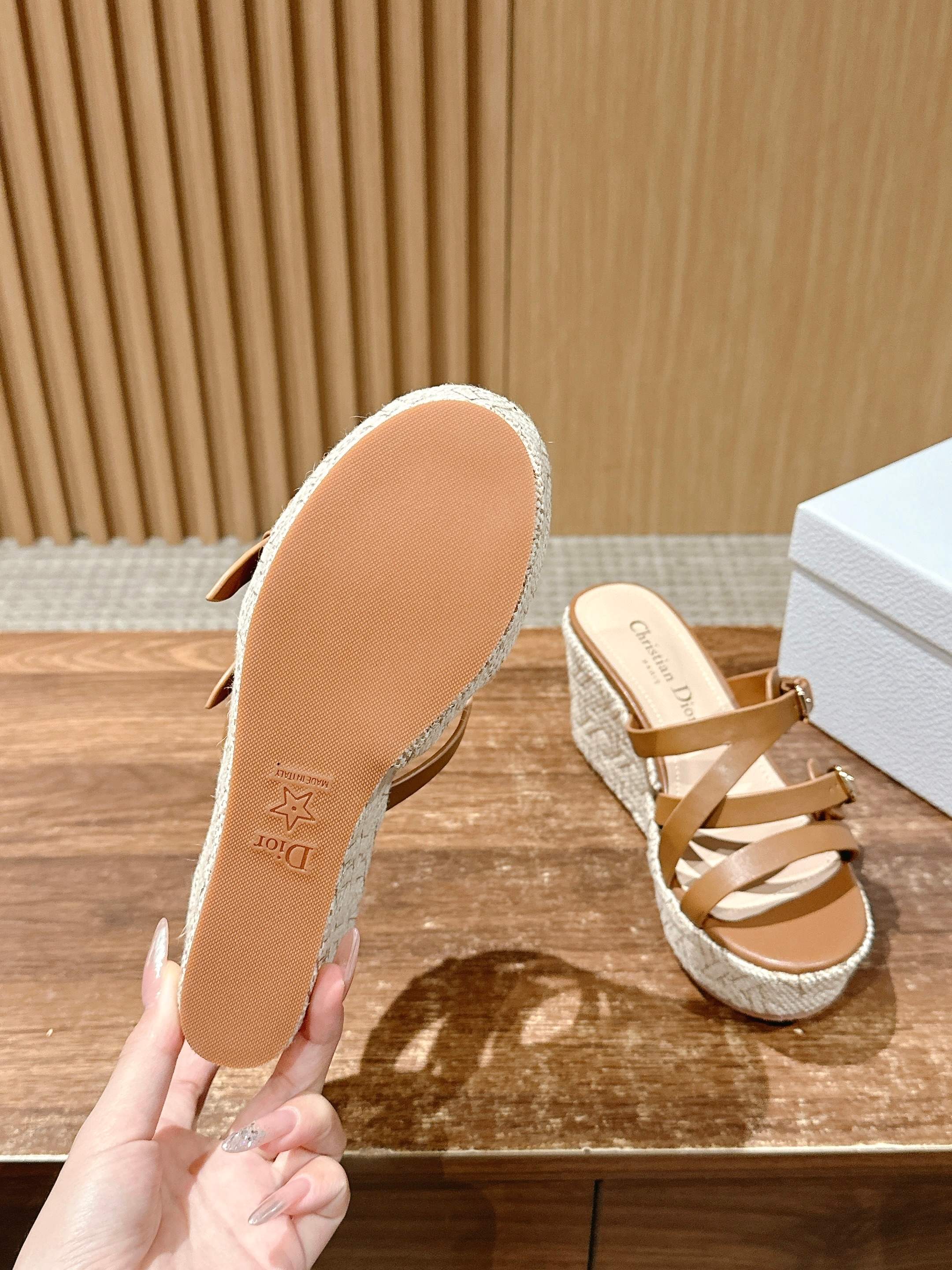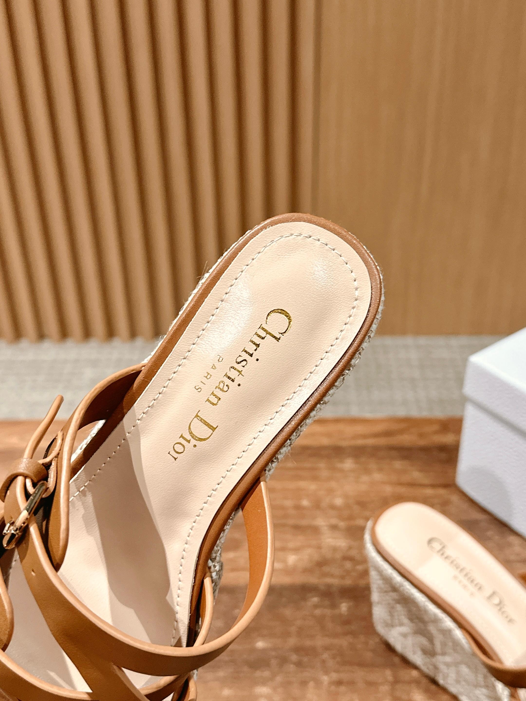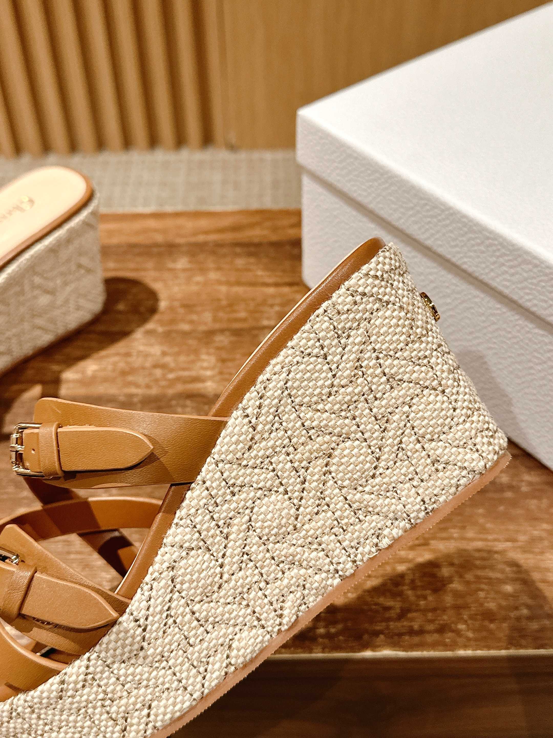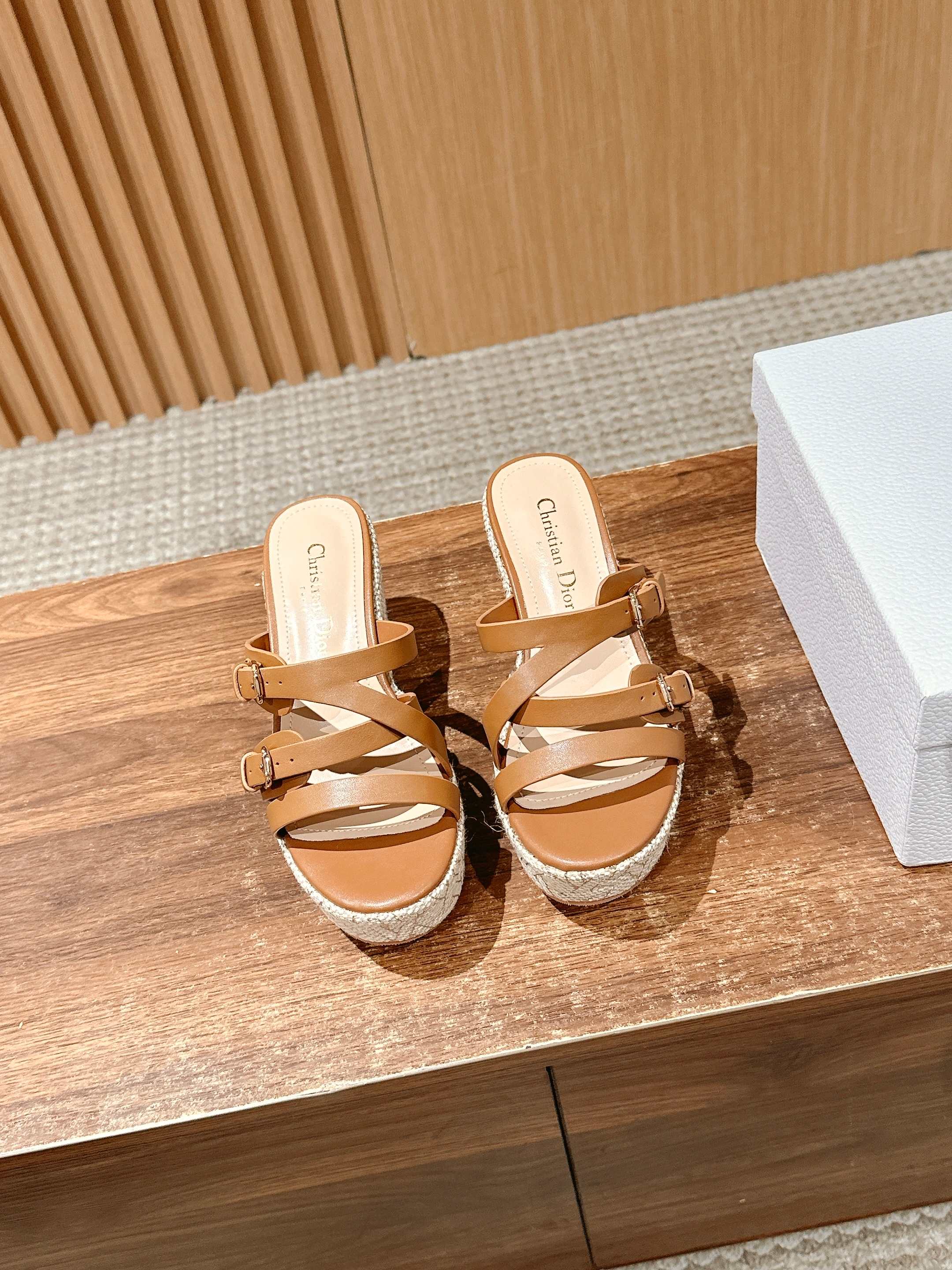 ATTITUDE WEDGE SLIDE 90MM IN BROWN ADJUSTABLE STRAPS CALFSKIN CANVAS SOLE